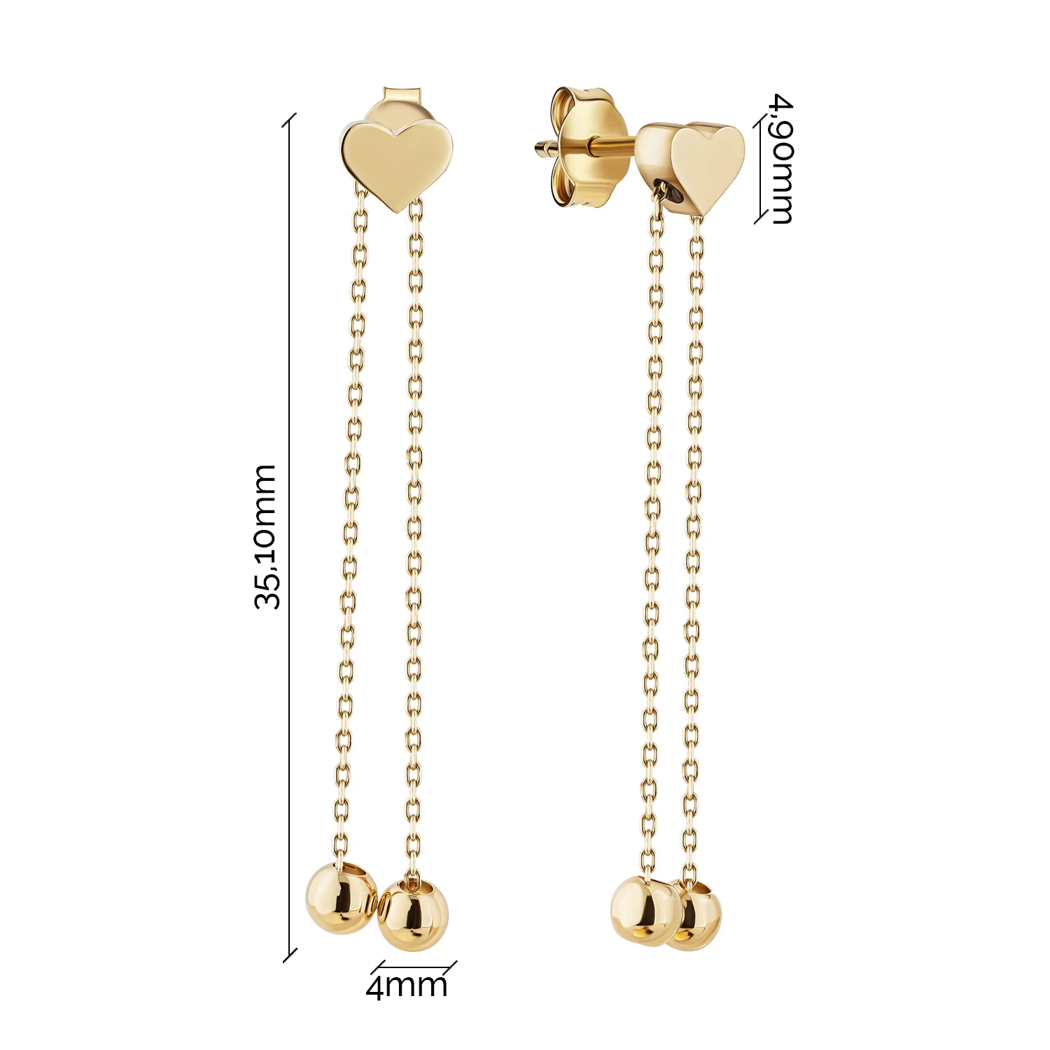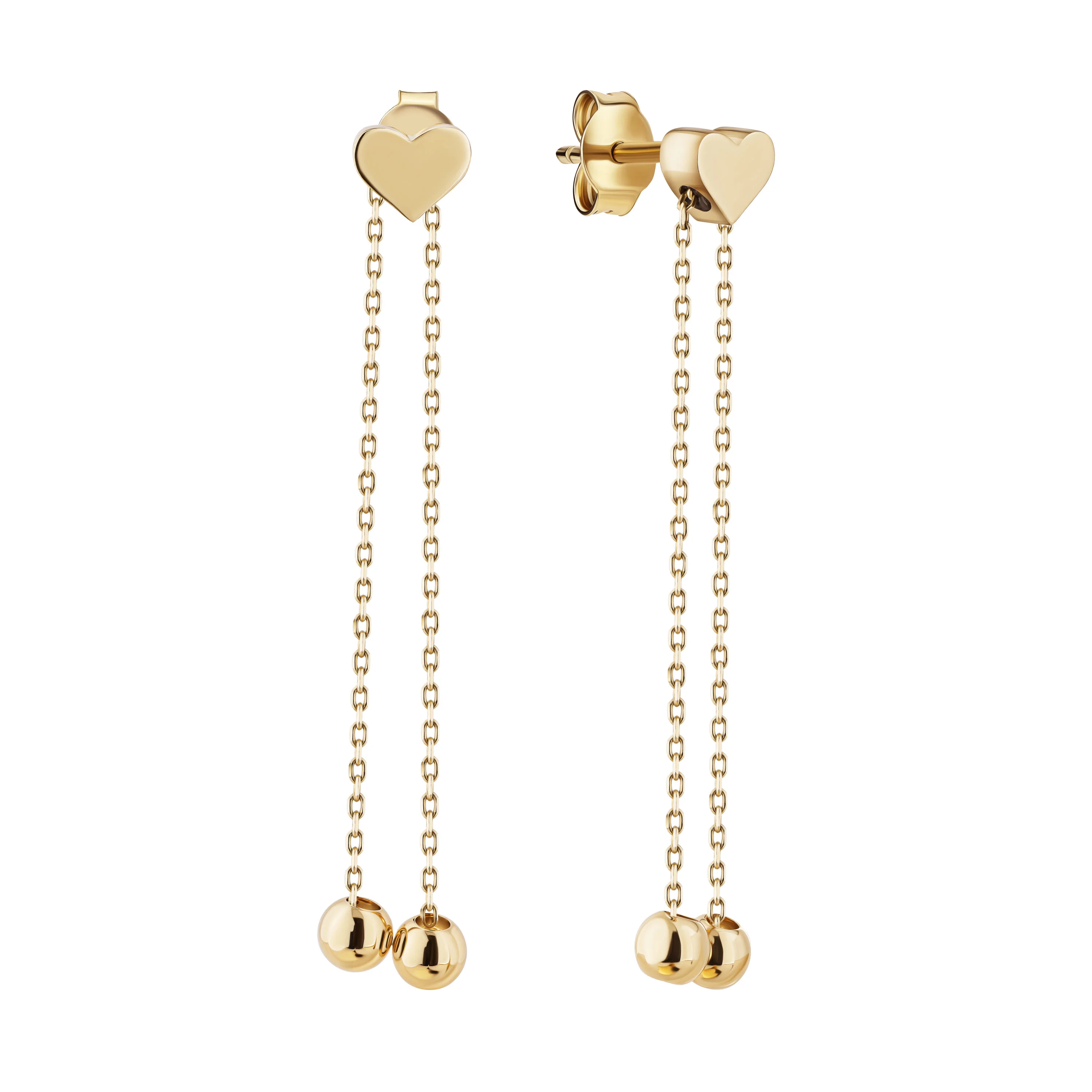 Сережки-пусети у жовтому золоті "Серце" з підвісами - 2178217
