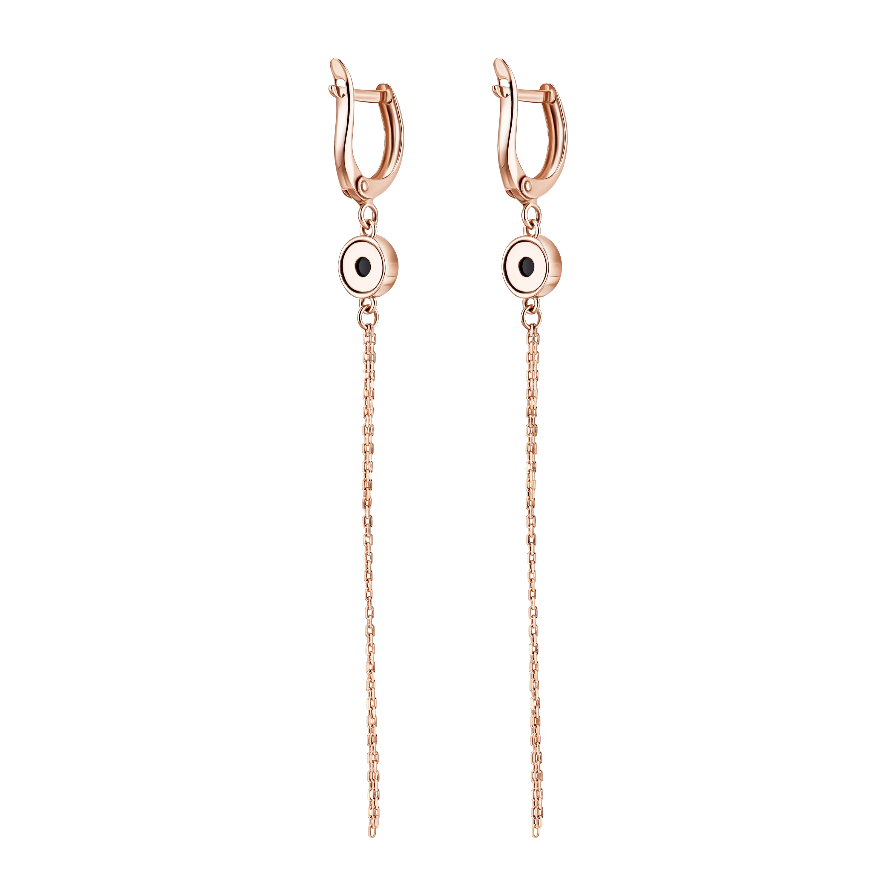 Сережки з агатом і підвісами "Ланцюжки" в червоному золоті - 2051411