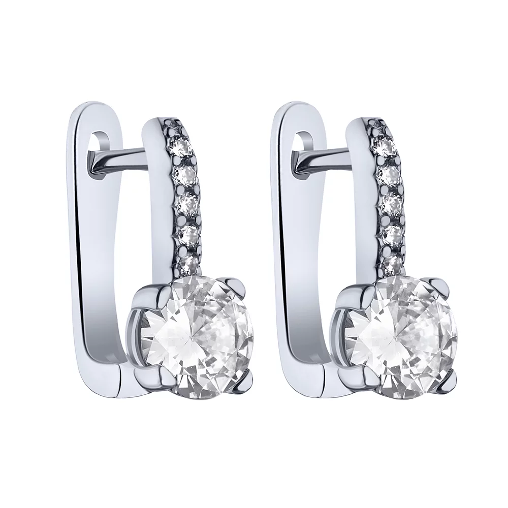 Сережки з доріжкою фіанітів у сріблі - 1809737