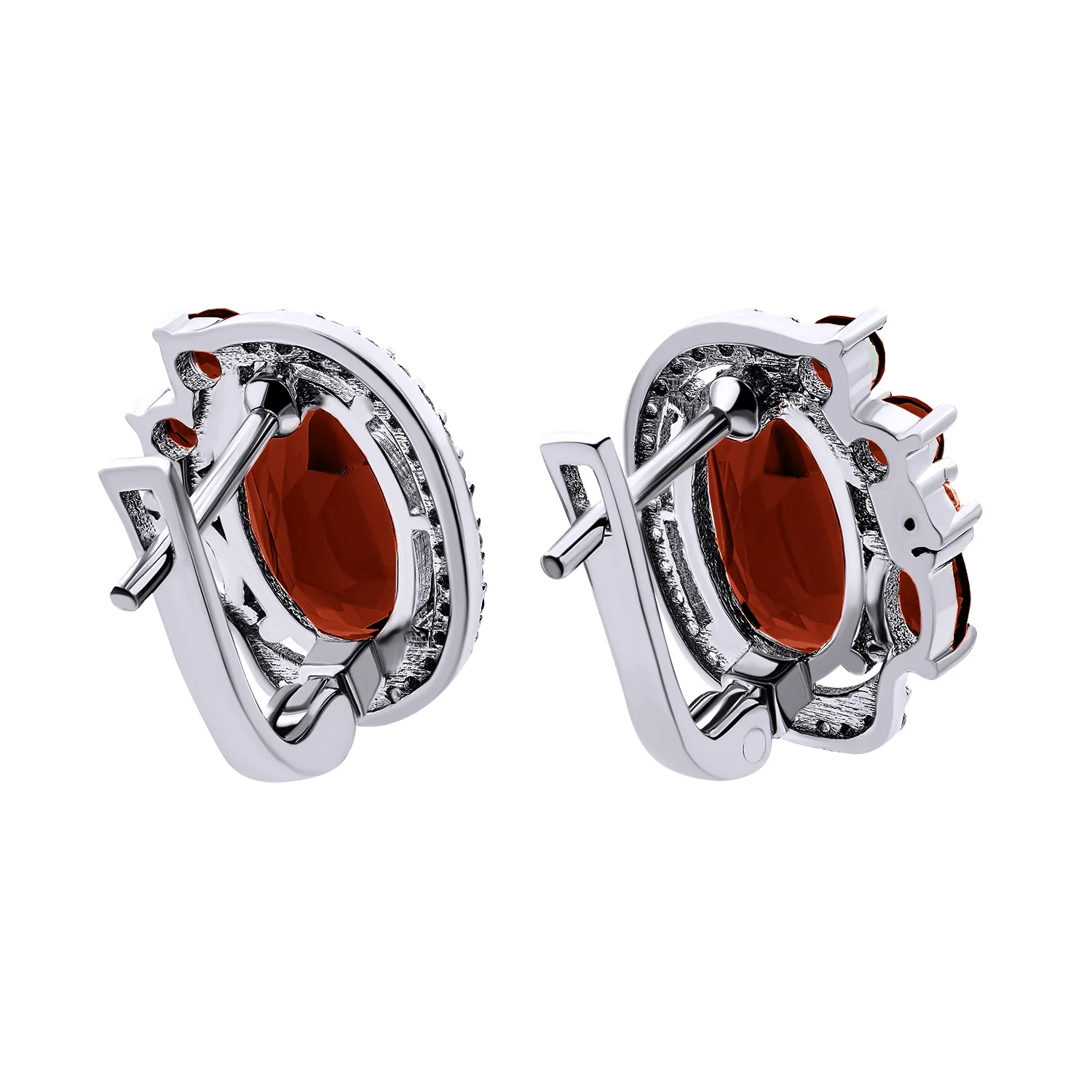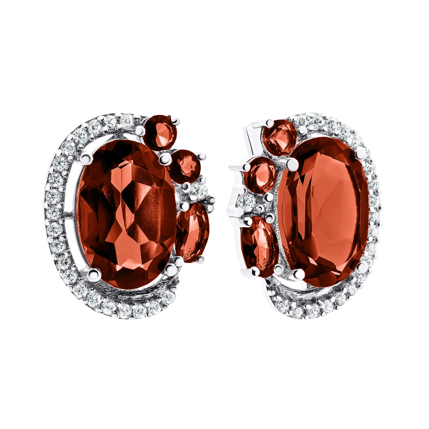 Срібні стильні сережки-пусети "Конюшина" з оніксом та фіанітами - 1940309