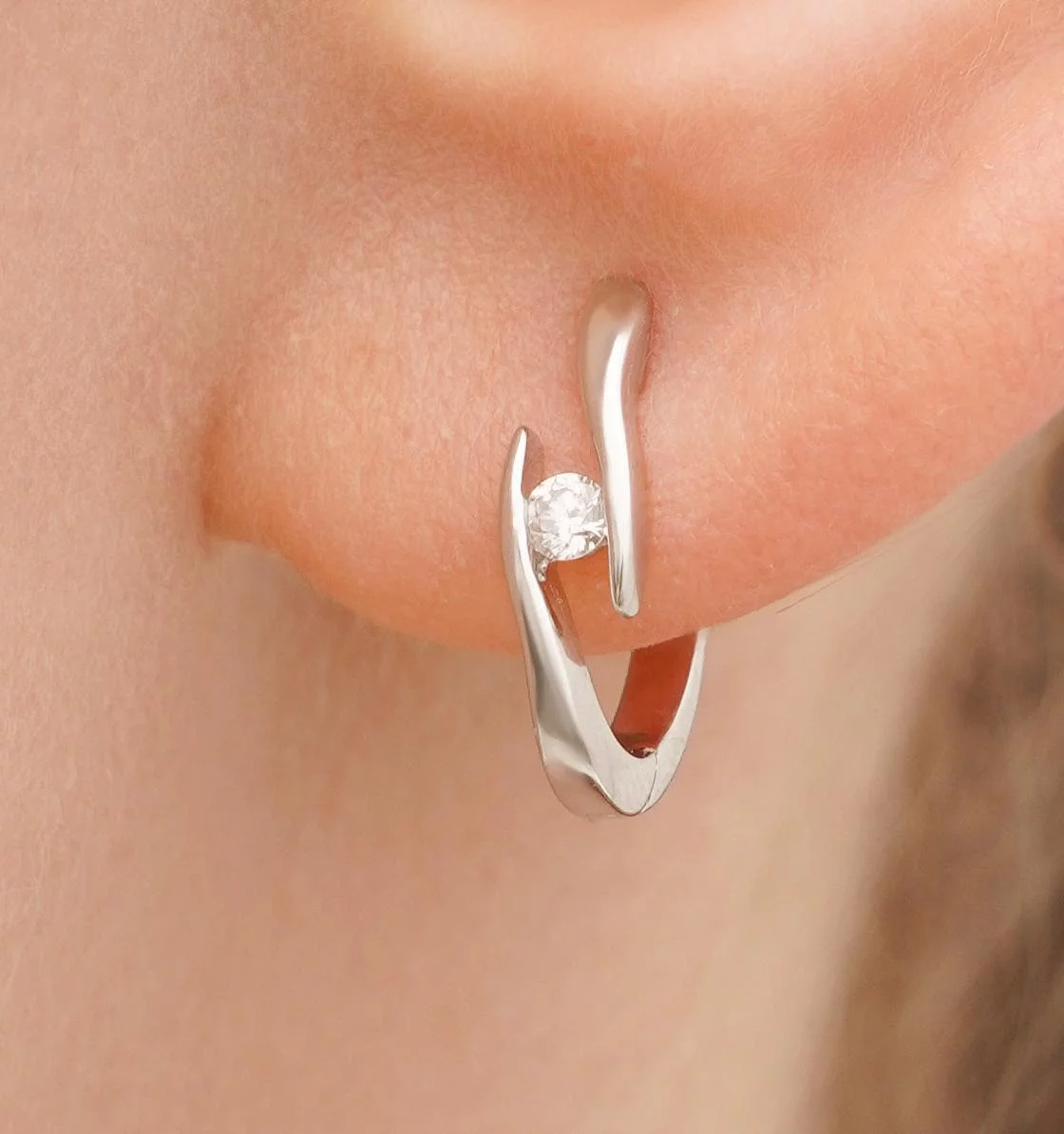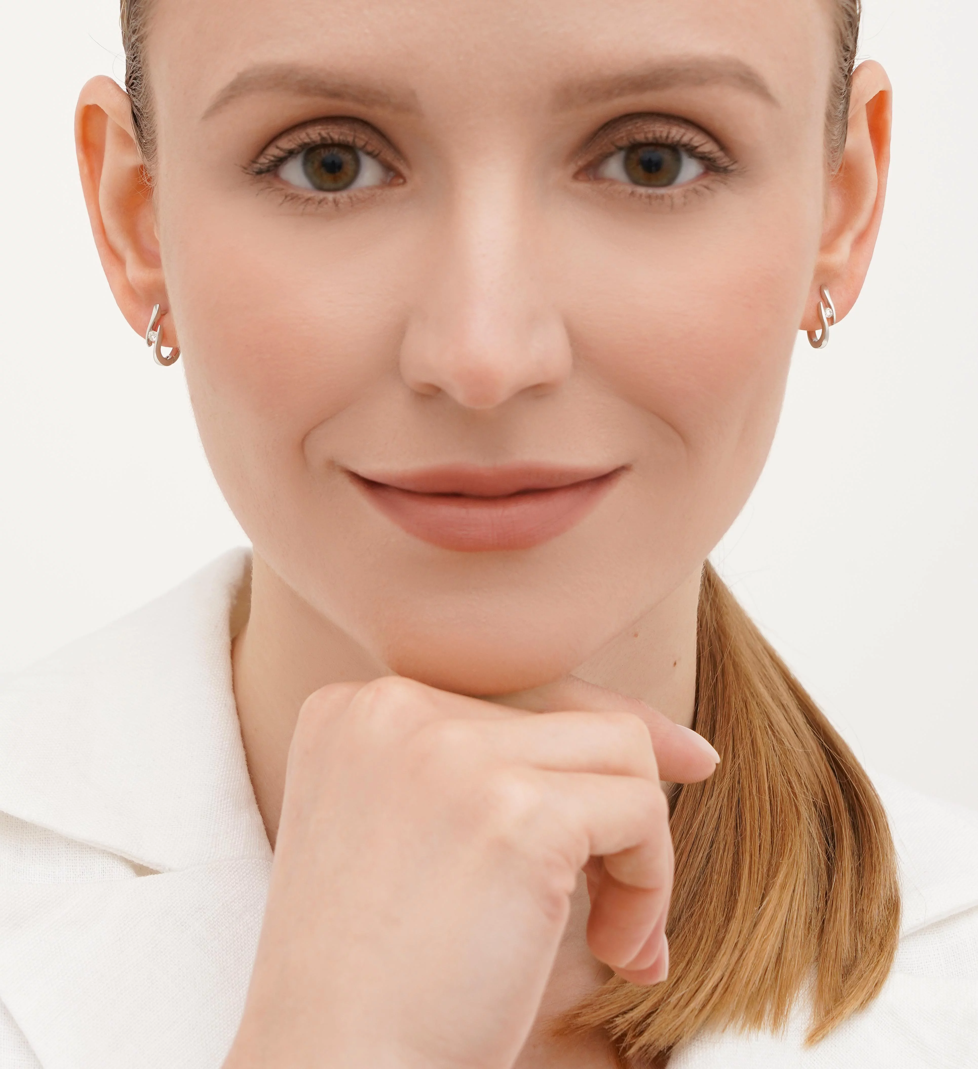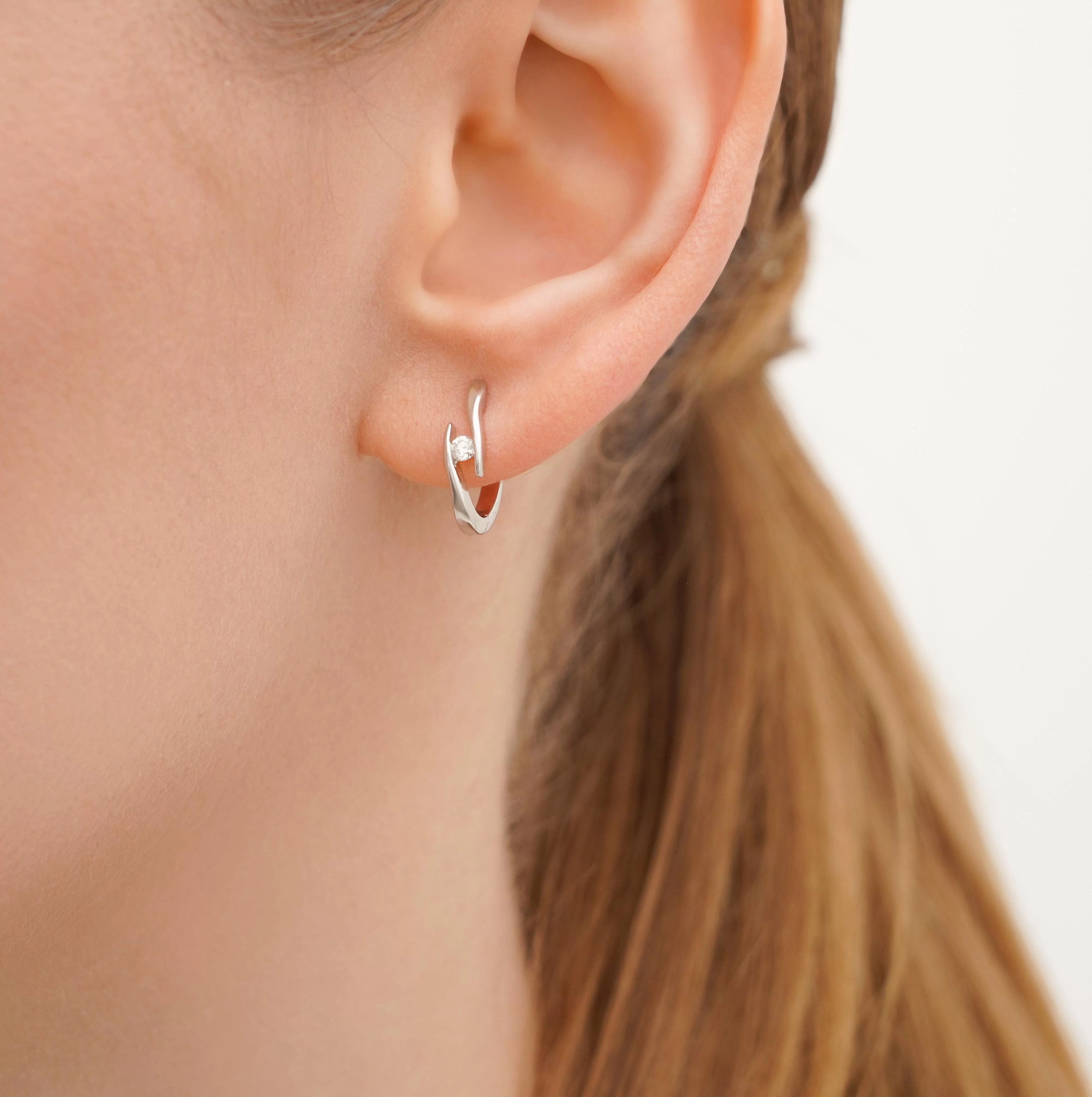 Сережки "Переплетіння" з білого золота з діамантами та смарагдами - 1821256
