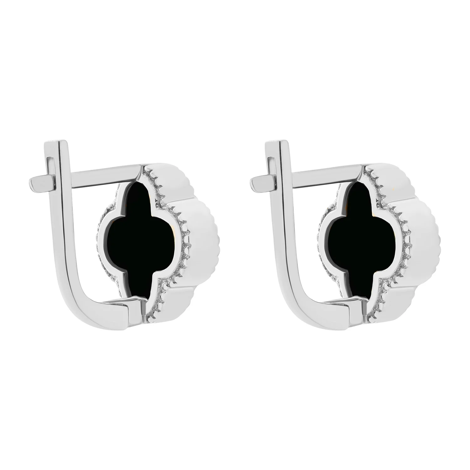 Сережки з підвісками з оніксом з червоного золота "Конюшина" - 1747532