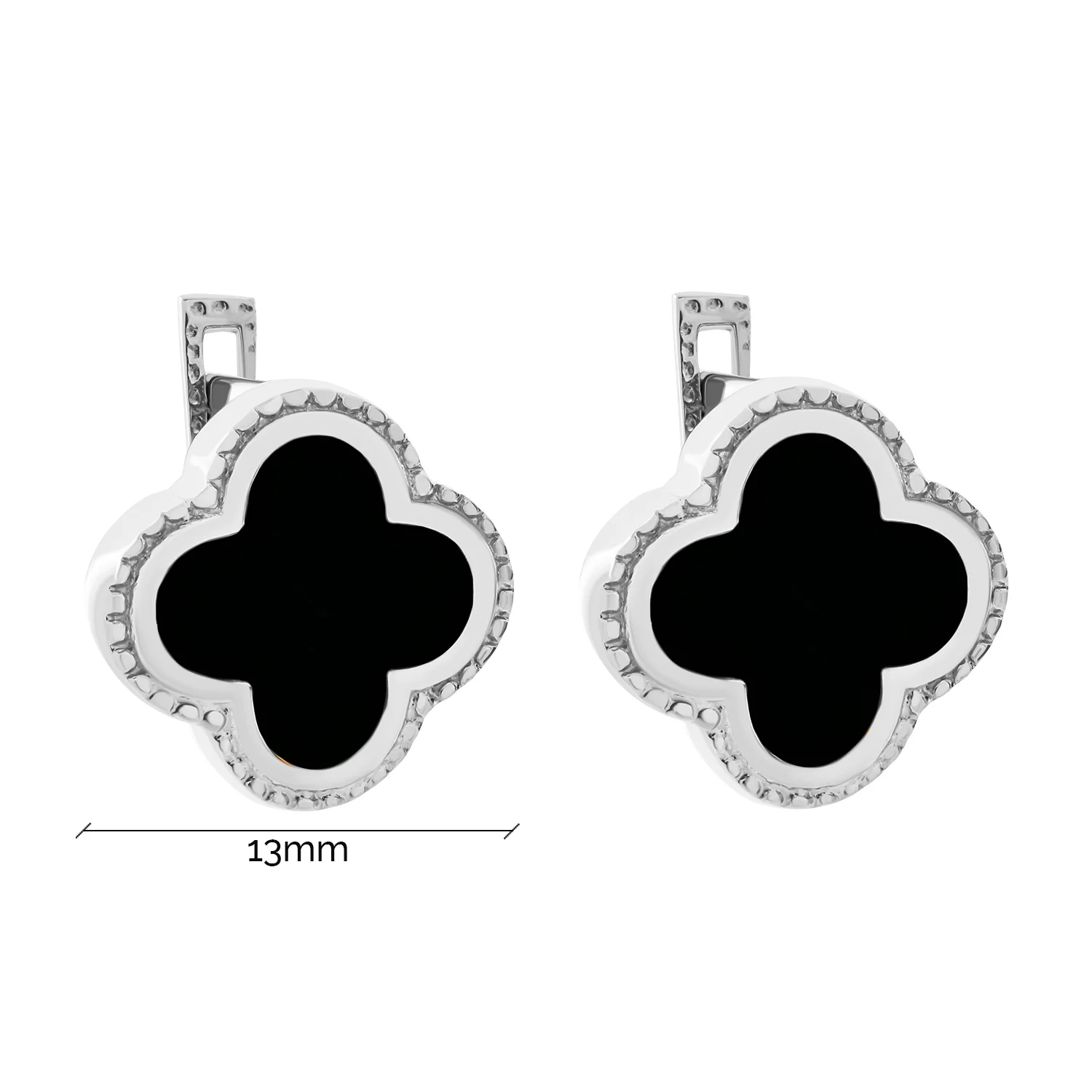 Стильні сережки-гвоздики "Конюшина" з червоного золота з оніксом - 1878296