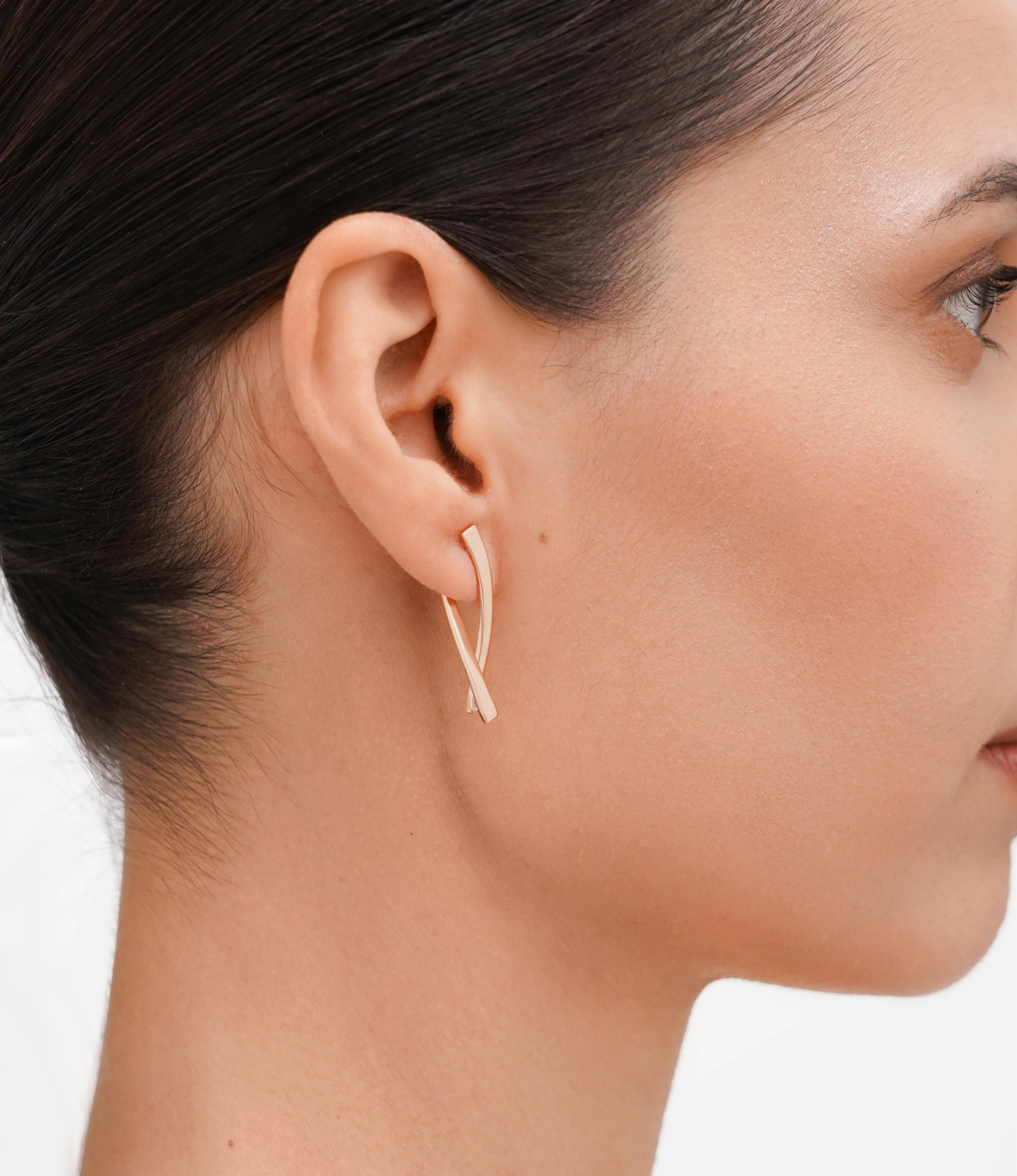 Елегантні сережки-кільця у червоному золоті з алмазною гранню - 1924911