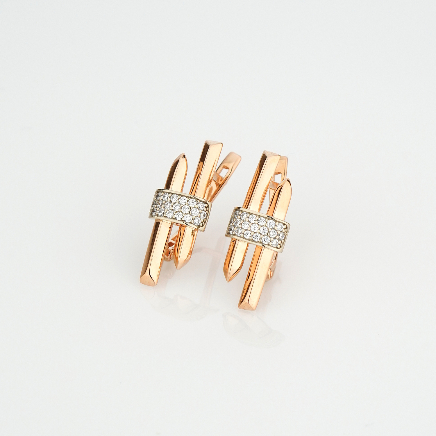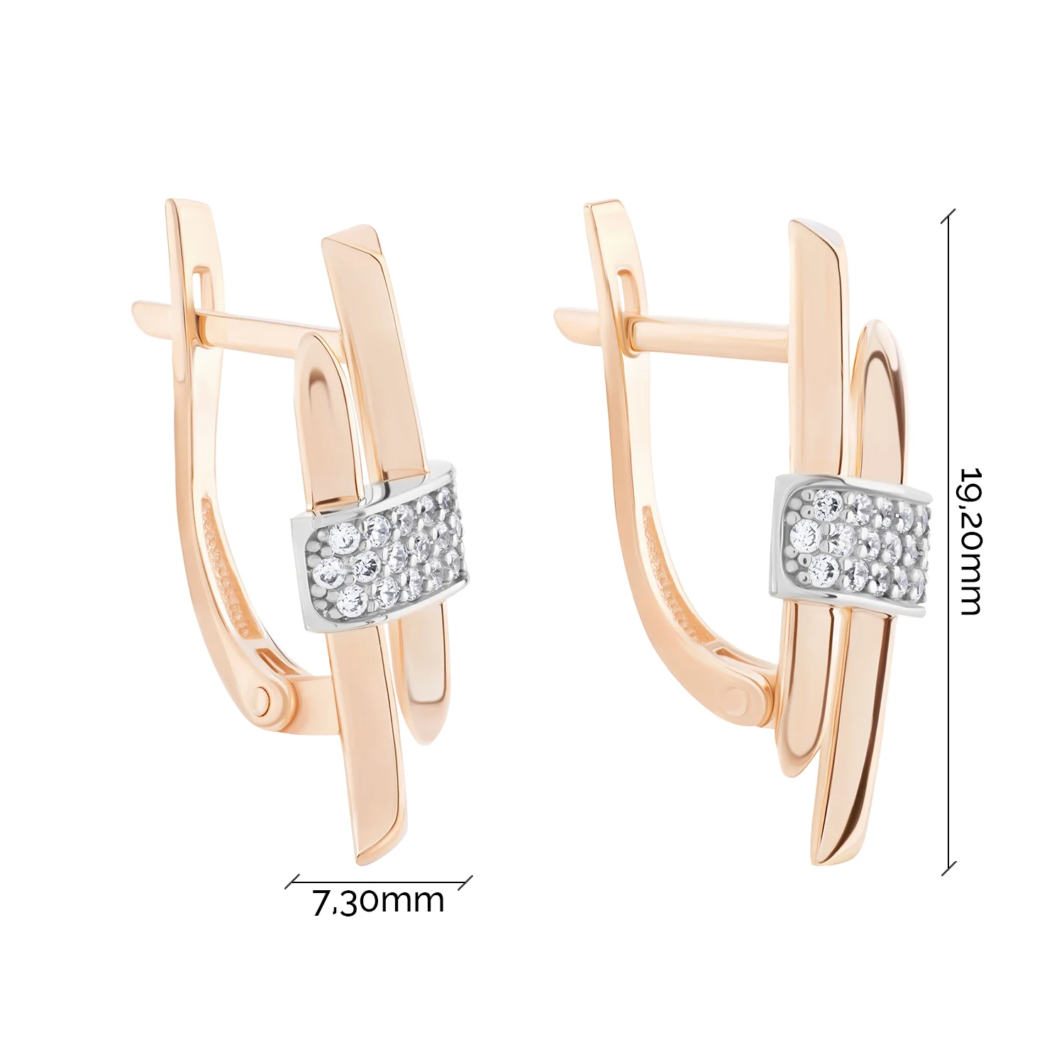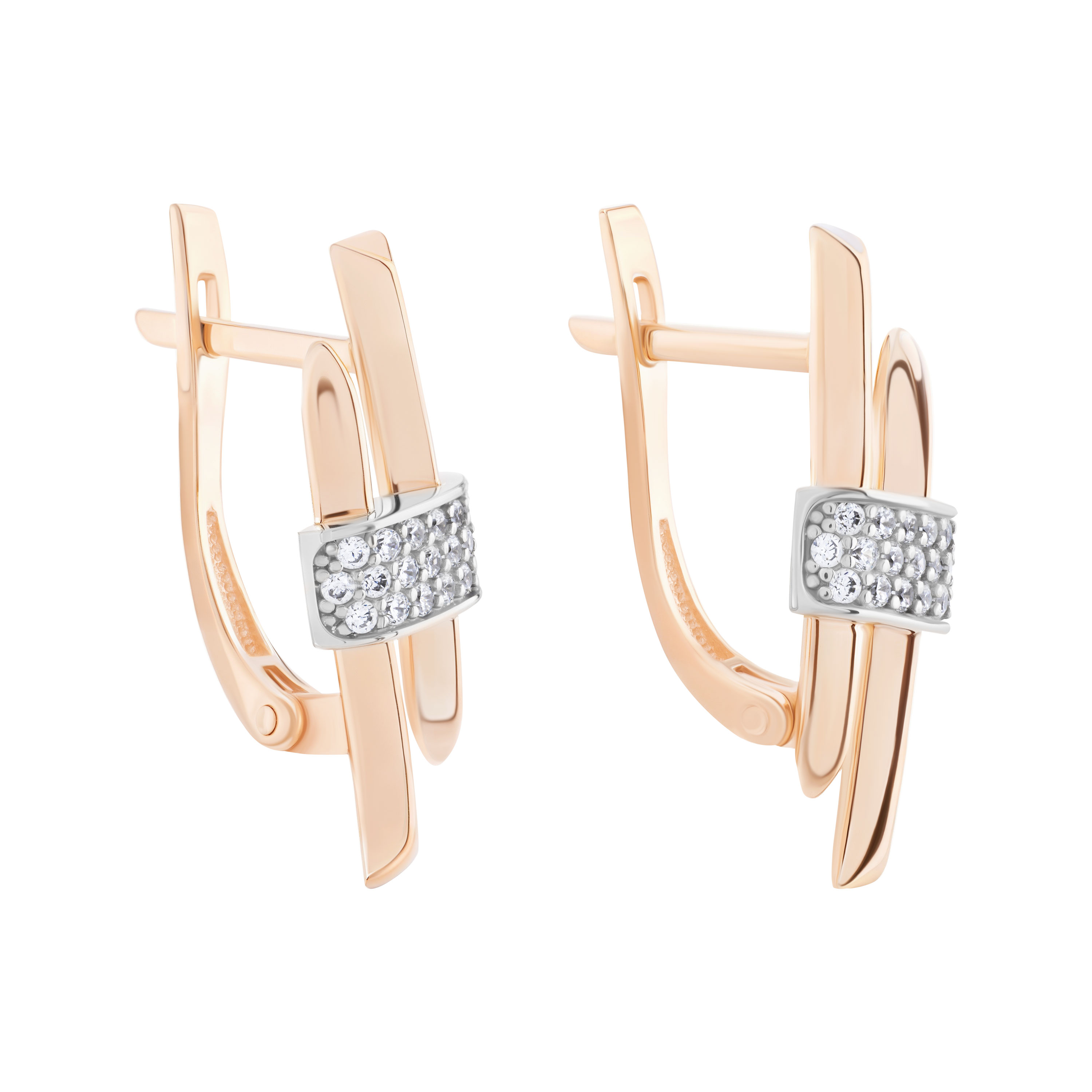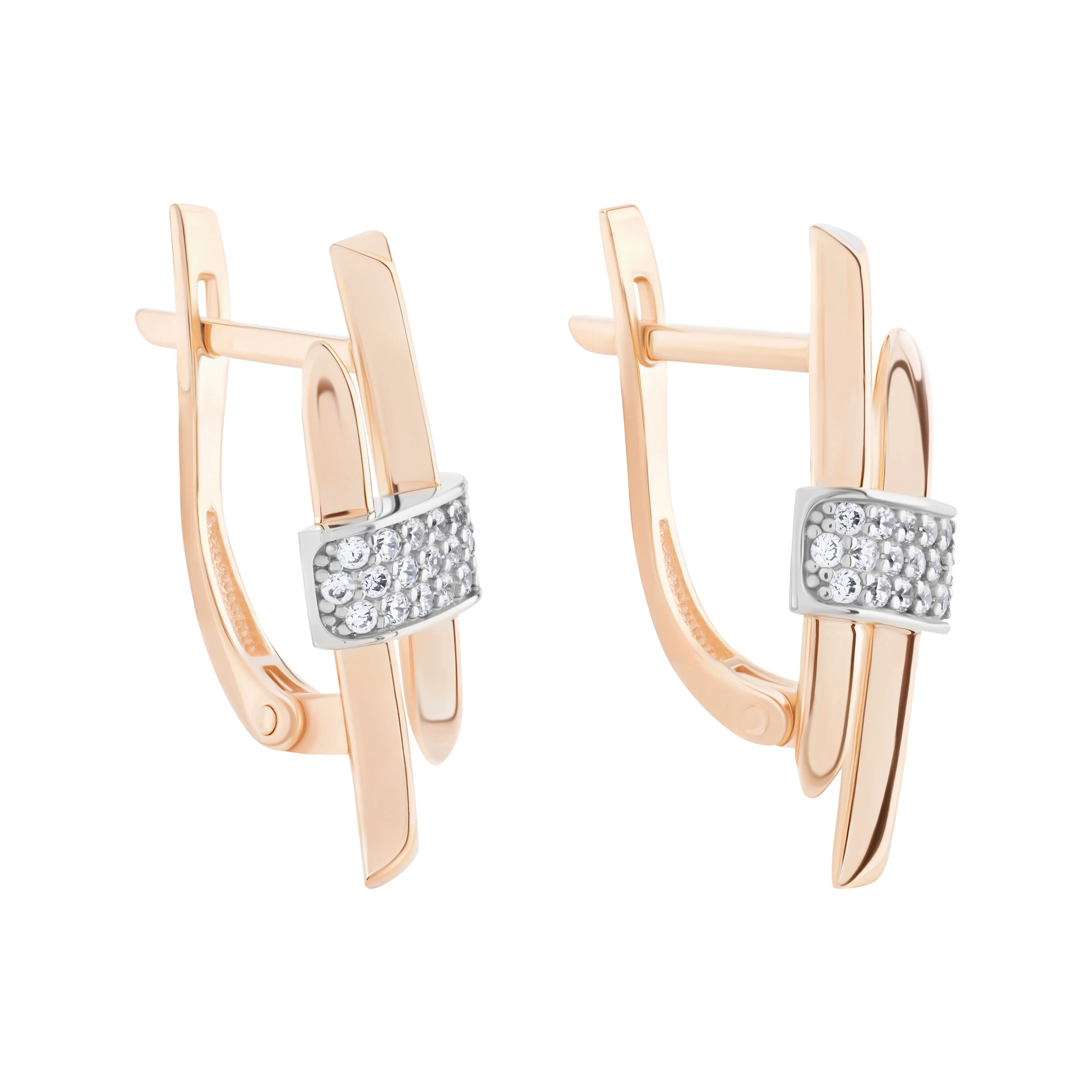 Сережки у комбінованому золоті з розсипом фіанітів - 2142864