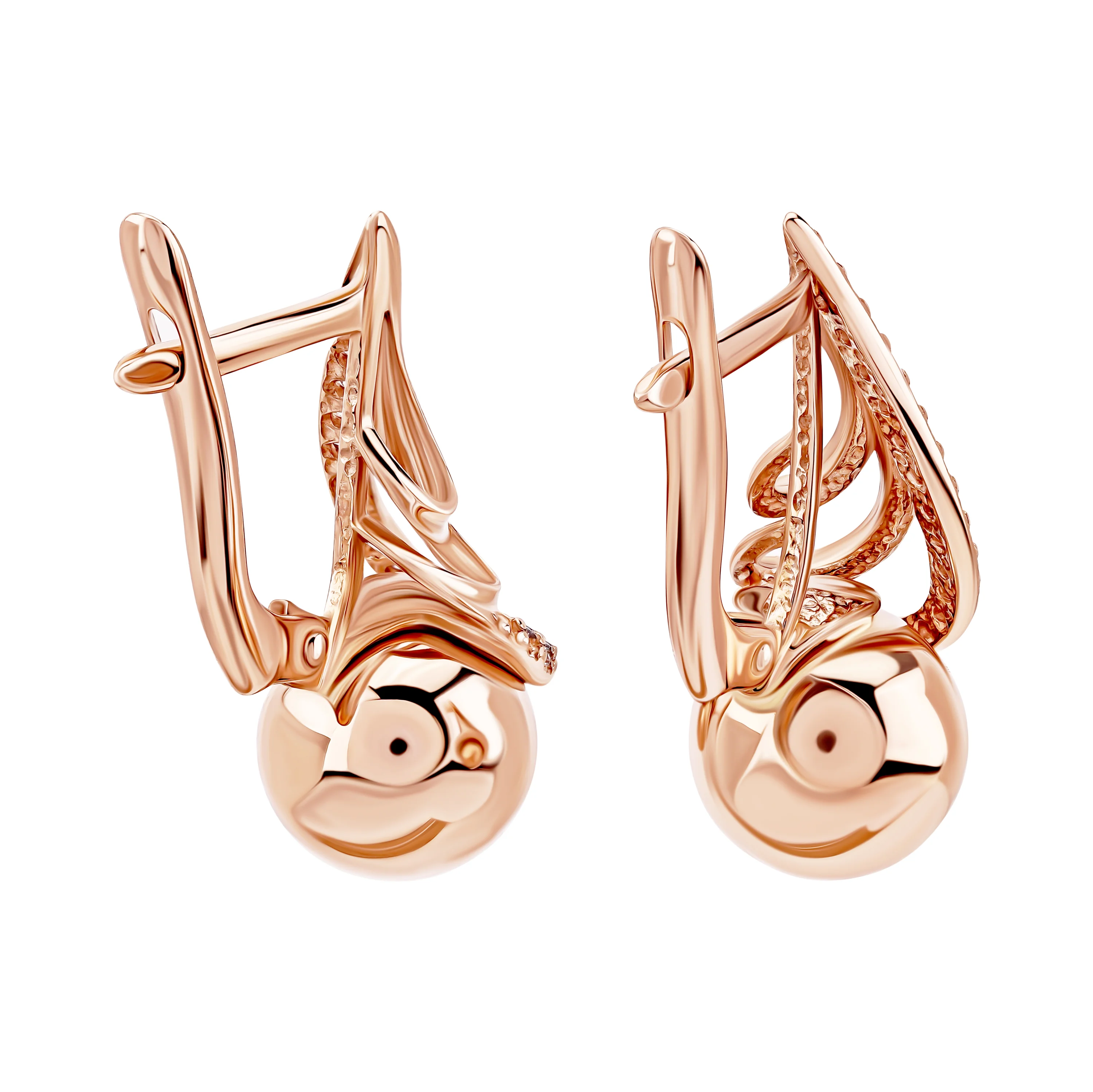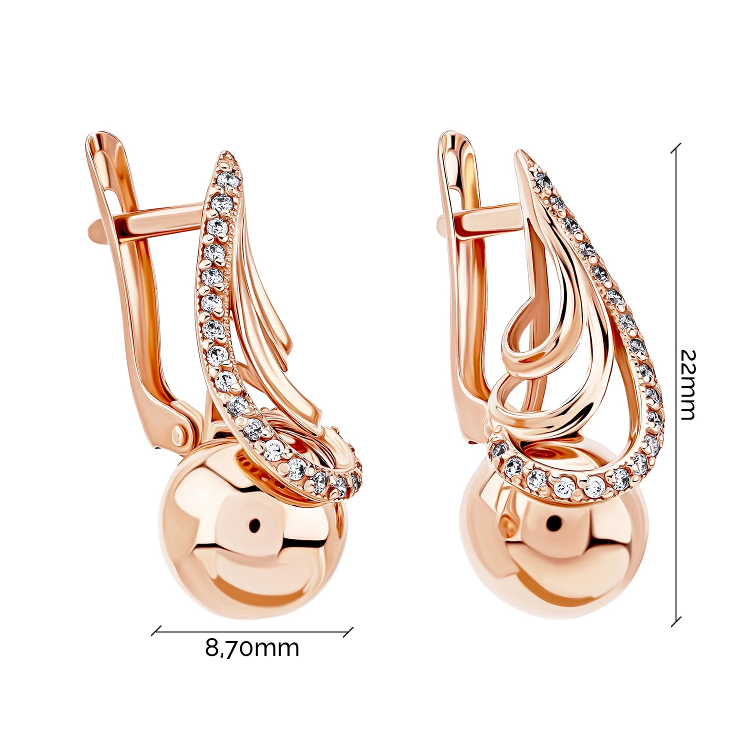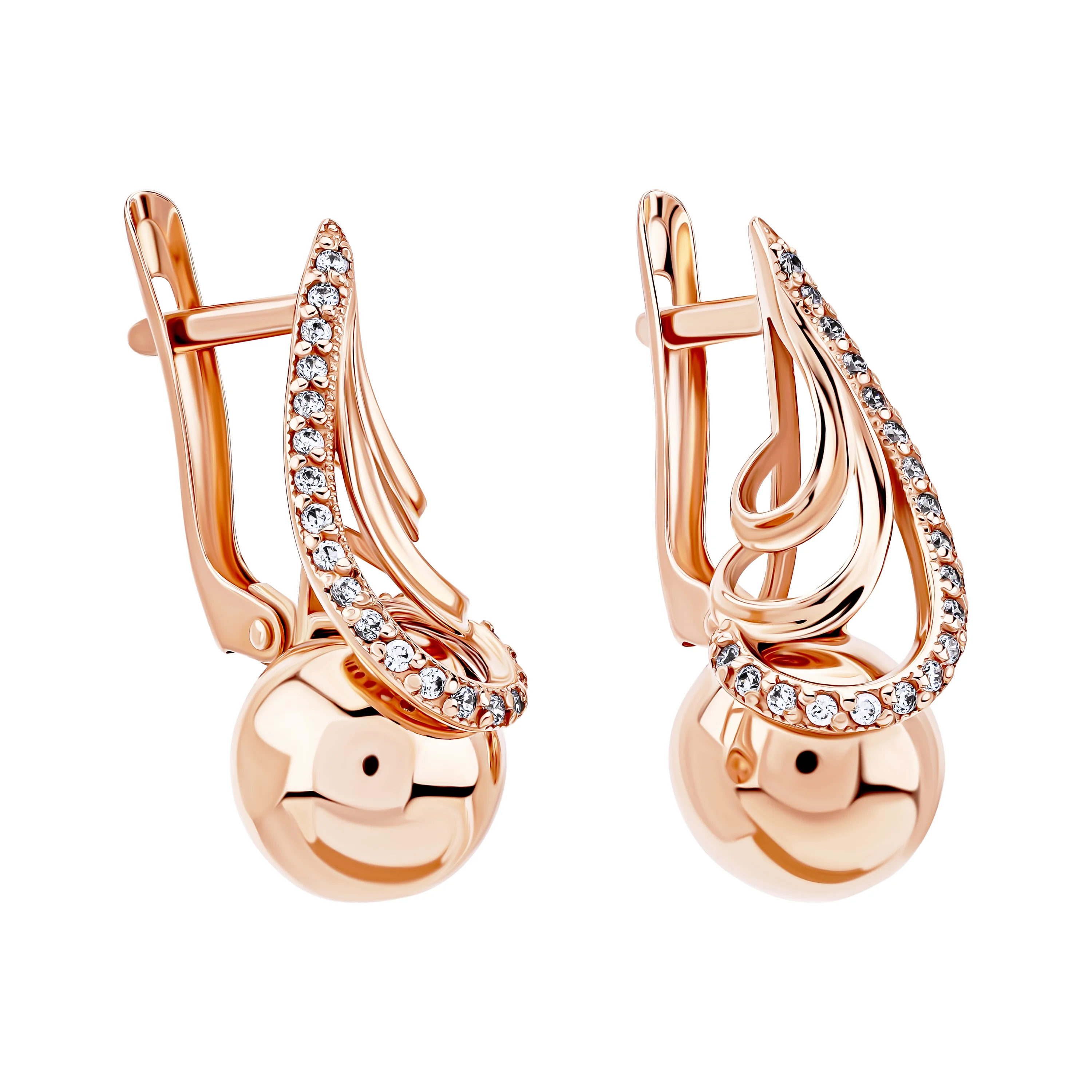 Сережки з червоного золота з фіанітами у стилі fashion - 1992548