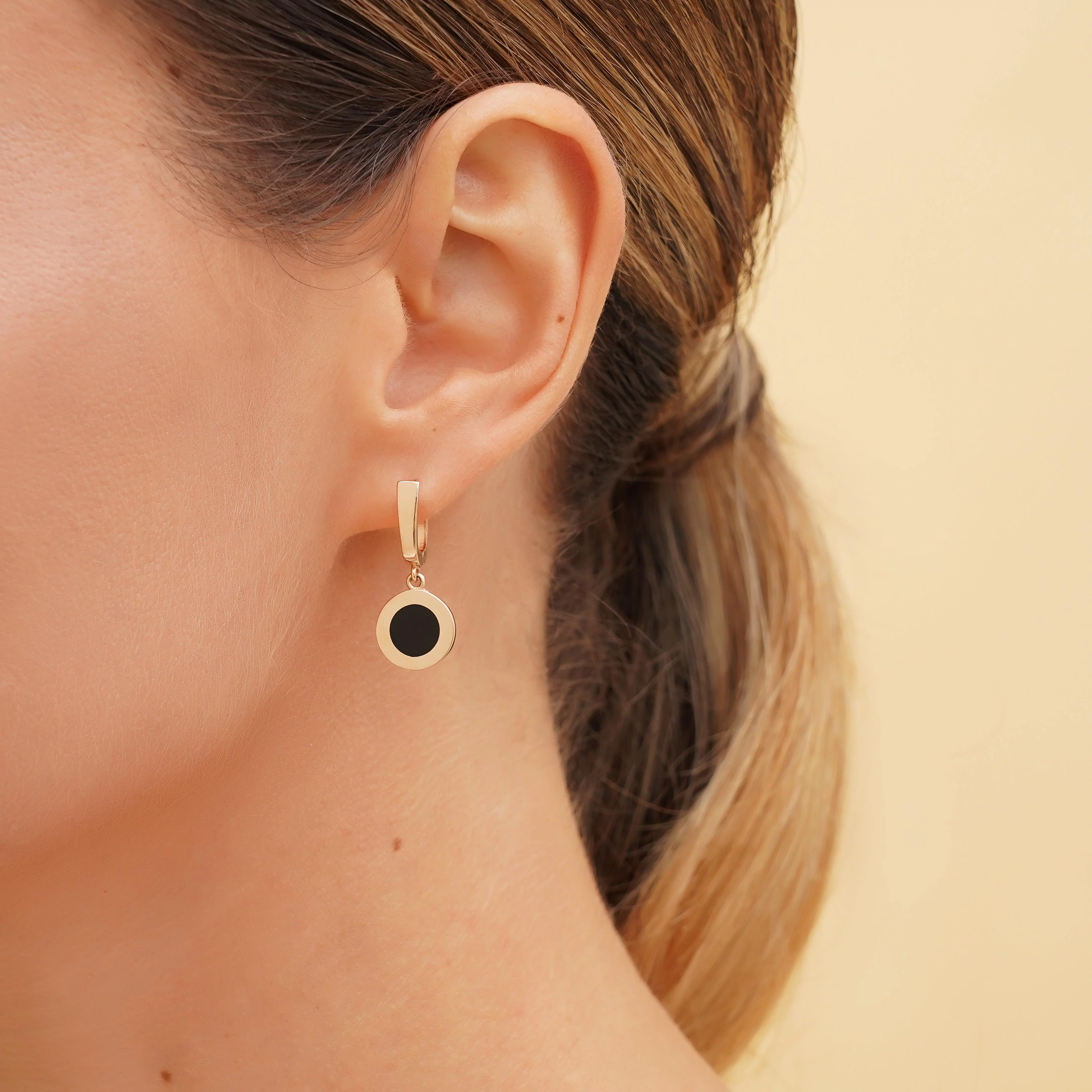 Класичні сережки-гвоздики з підвісами з білого золота з емаллю - 1949910