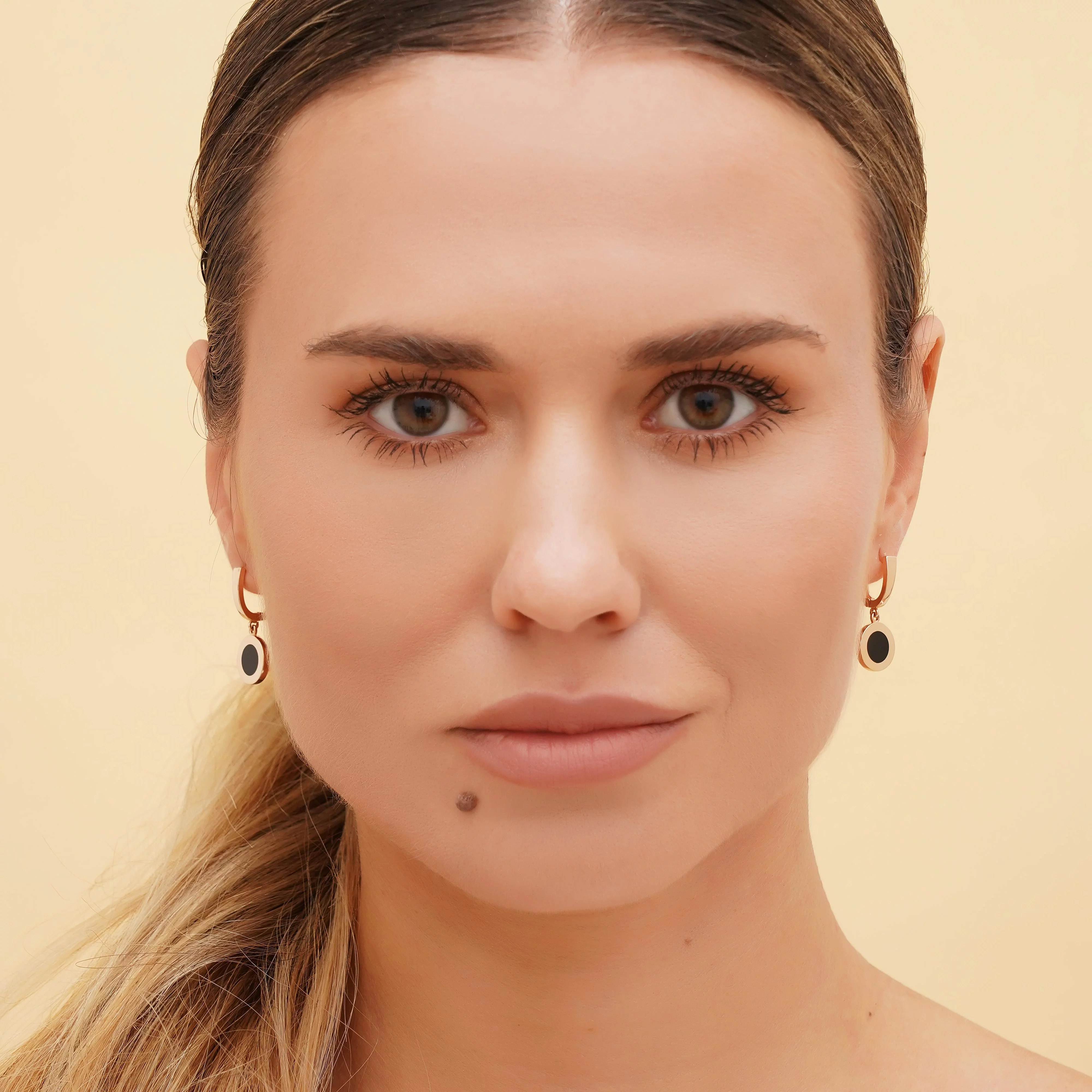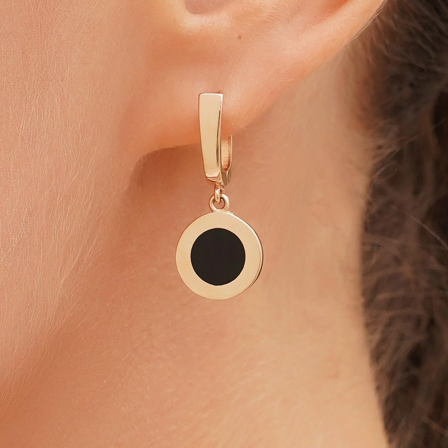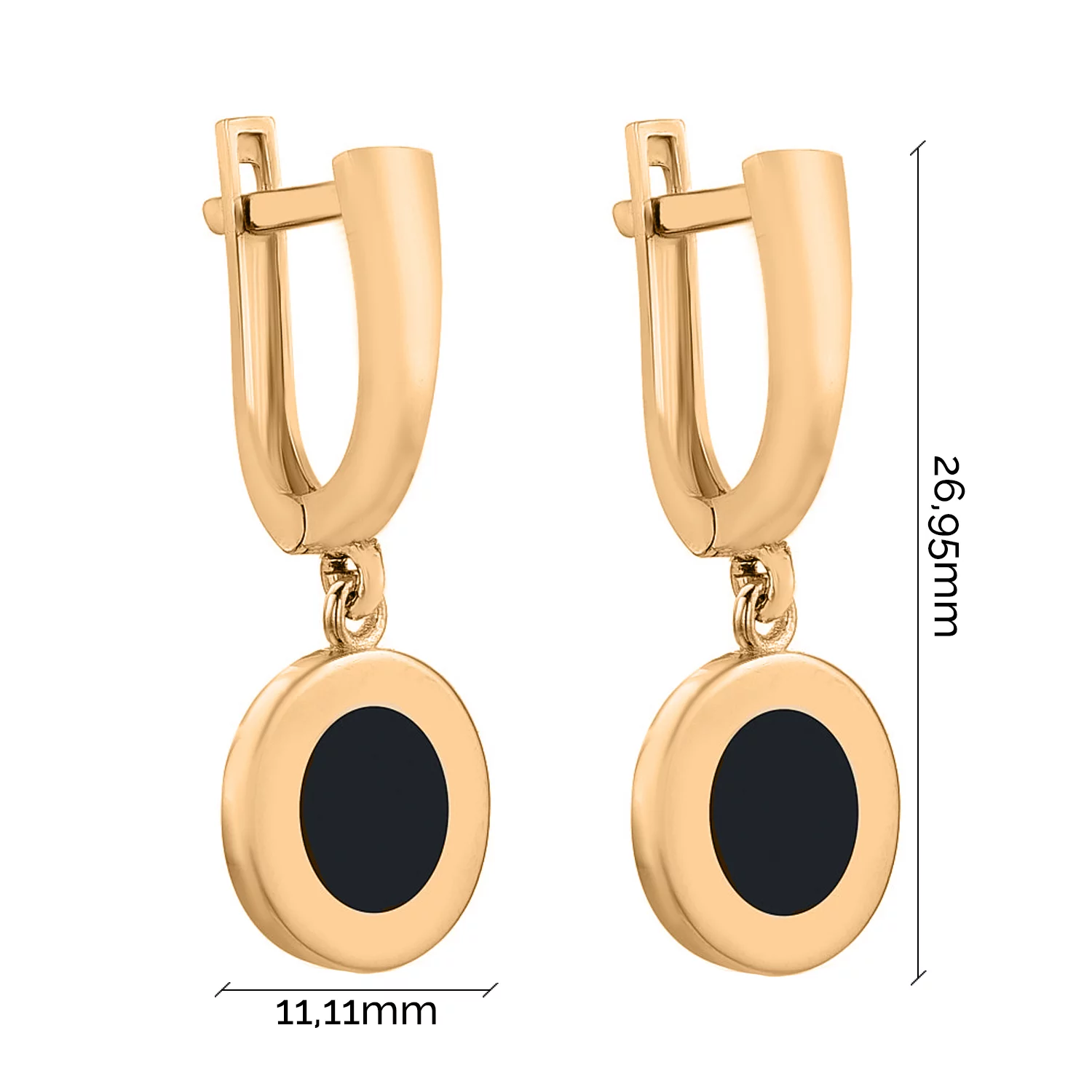 Стильні сережки з підвісами у червоному золоті з емаллю та фіанітом - 1928138