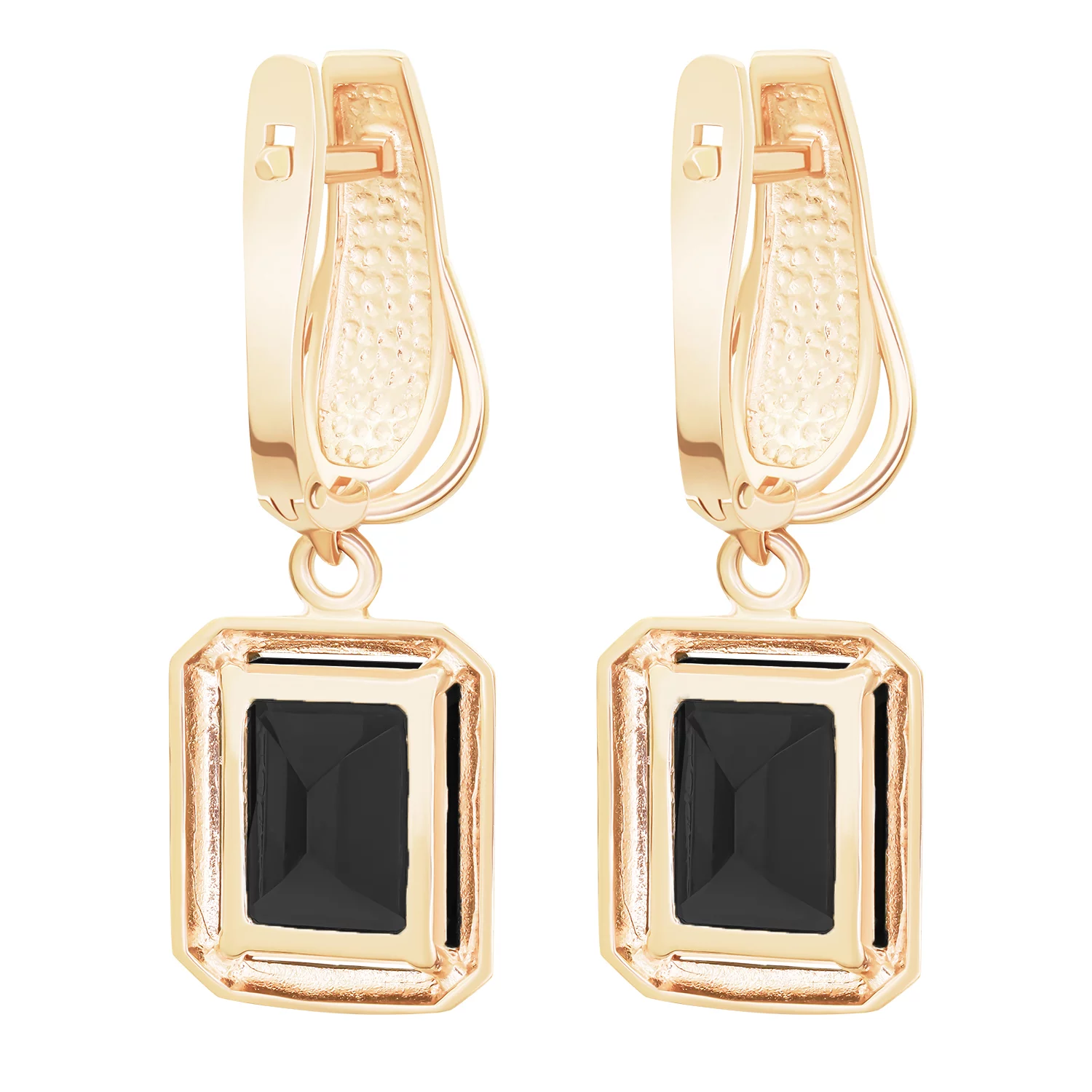 Сережки з підвісками з оніксом з червоного золота "Конюшина" - 1747532