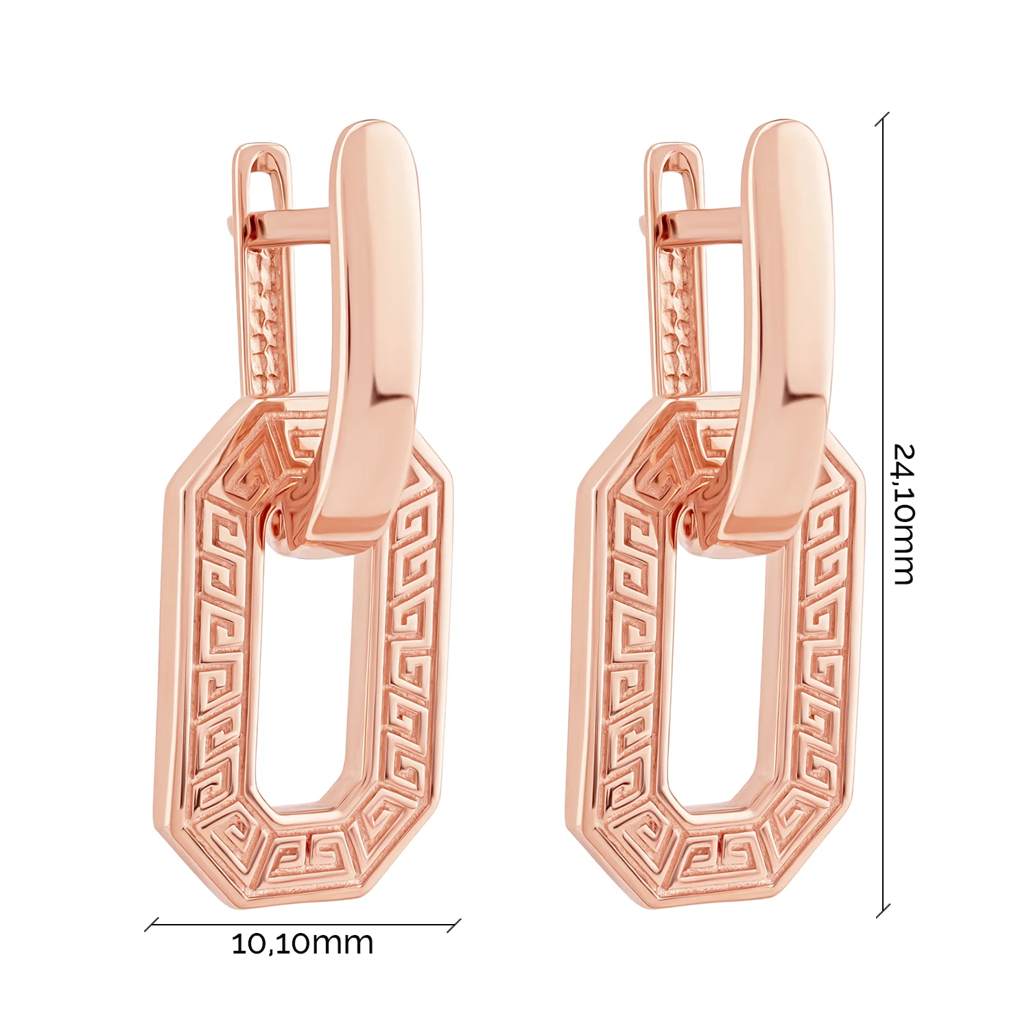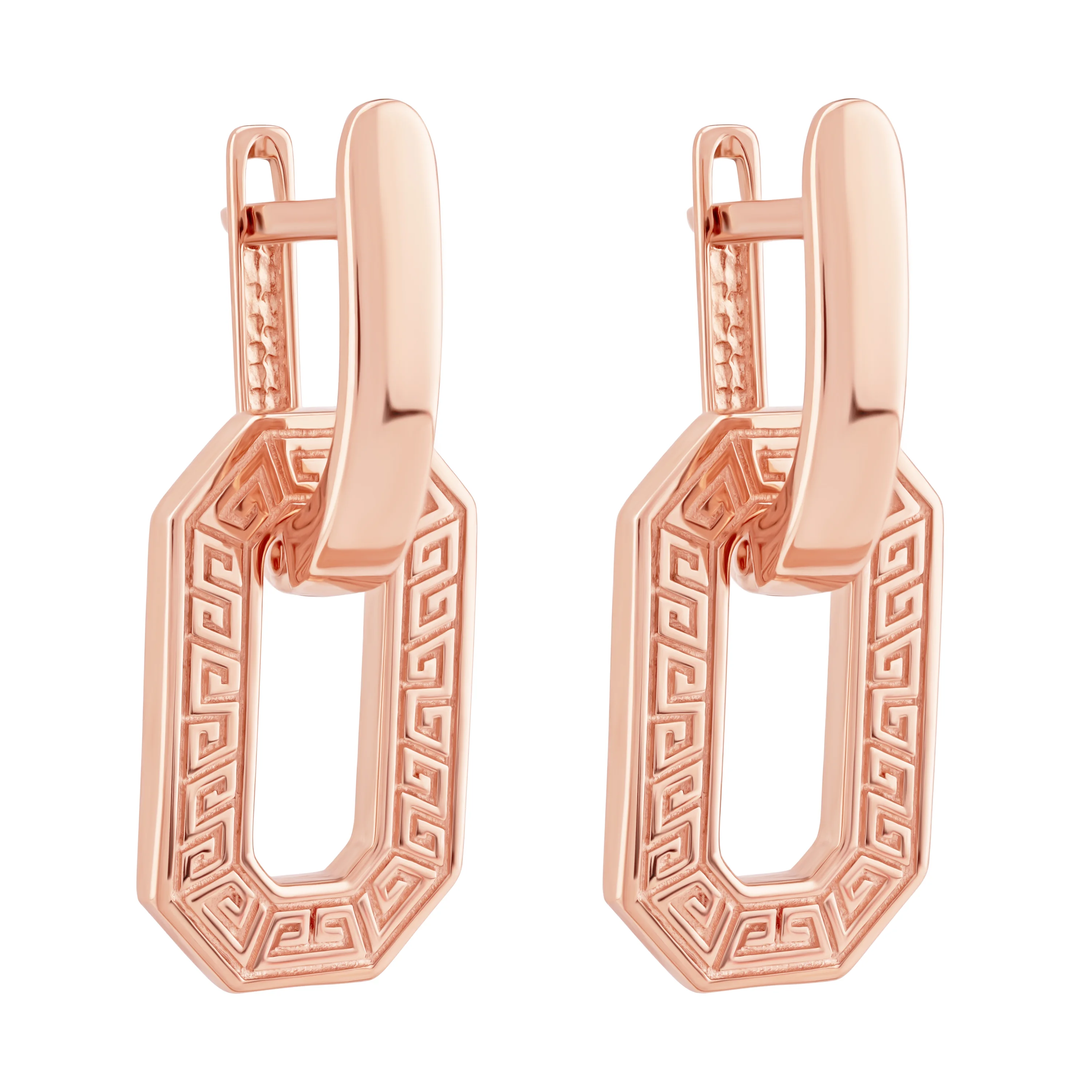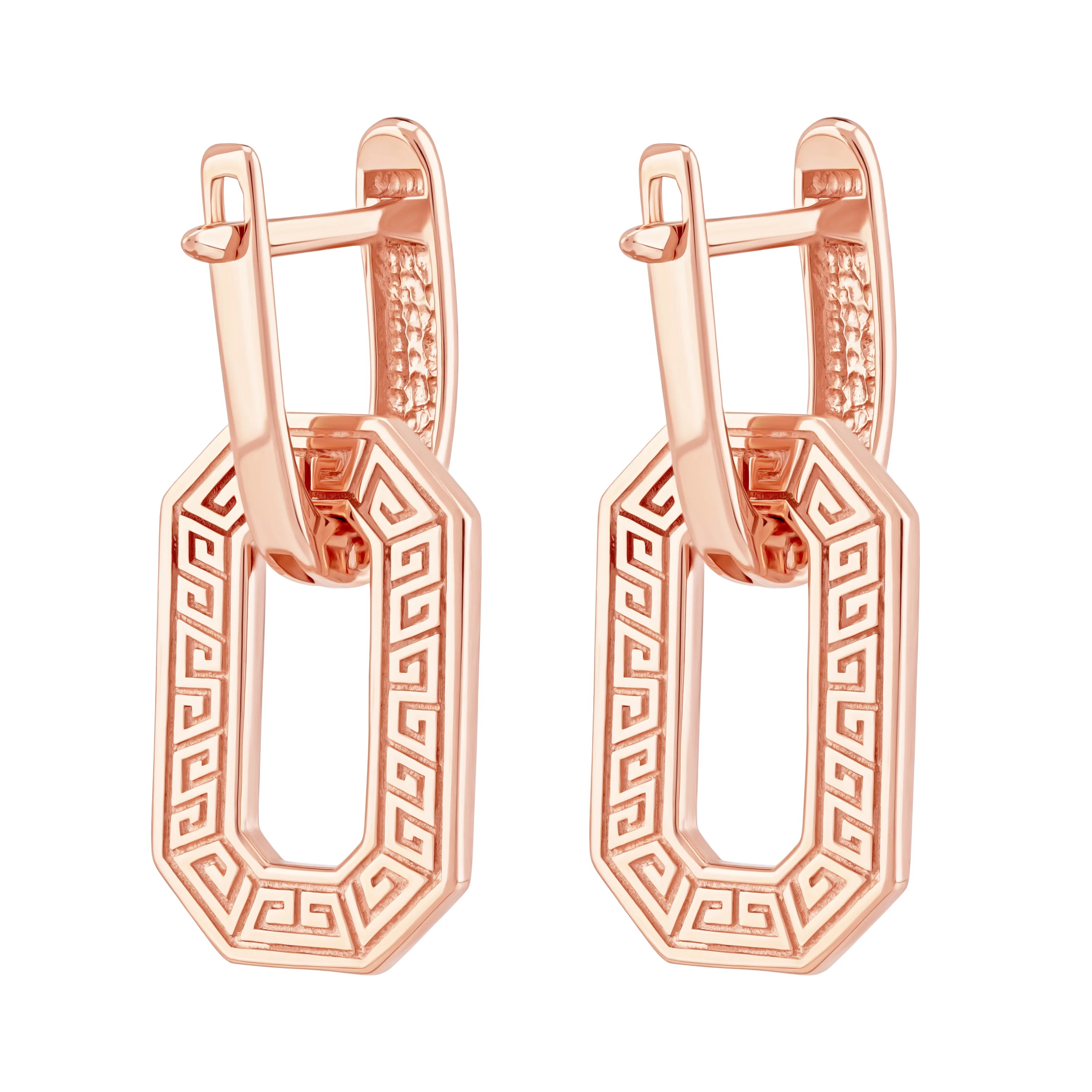Сережки в червоному золоті з підвісом та орнаментом - 2093927