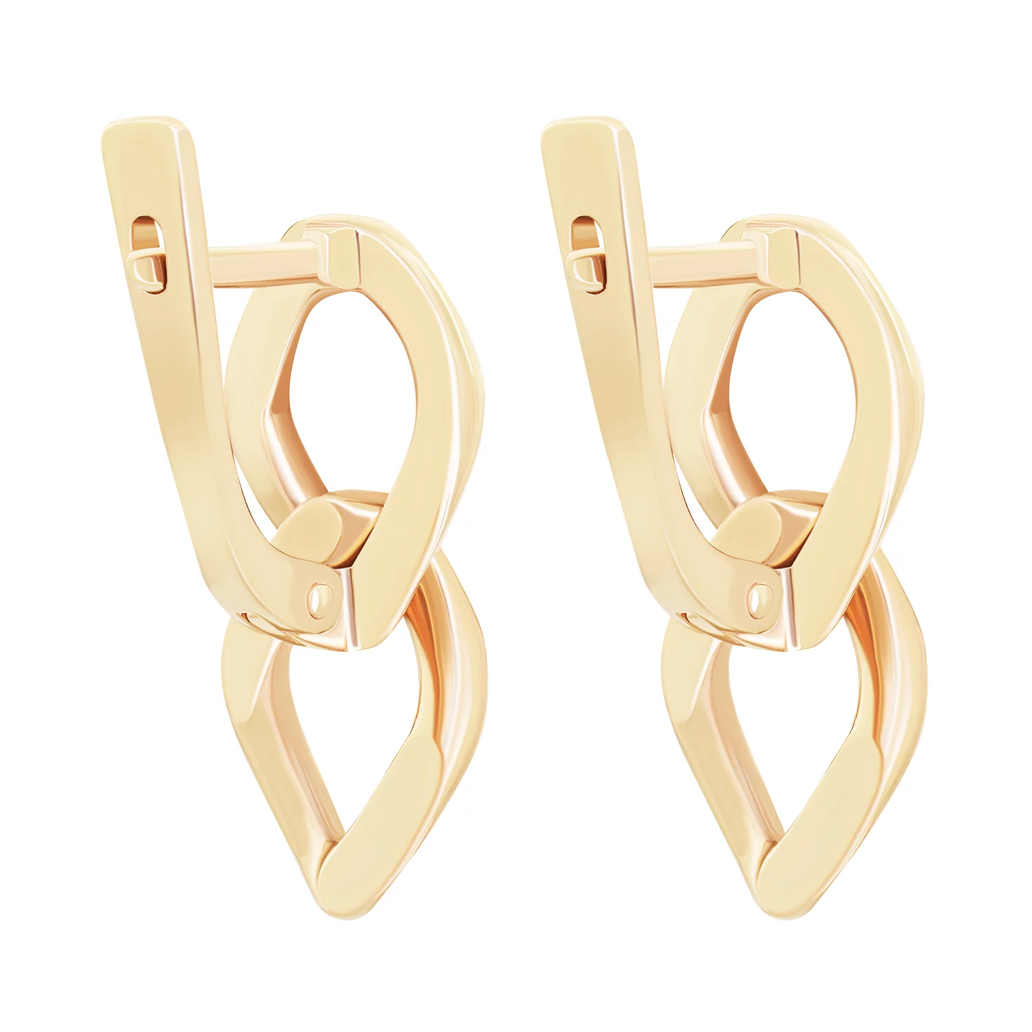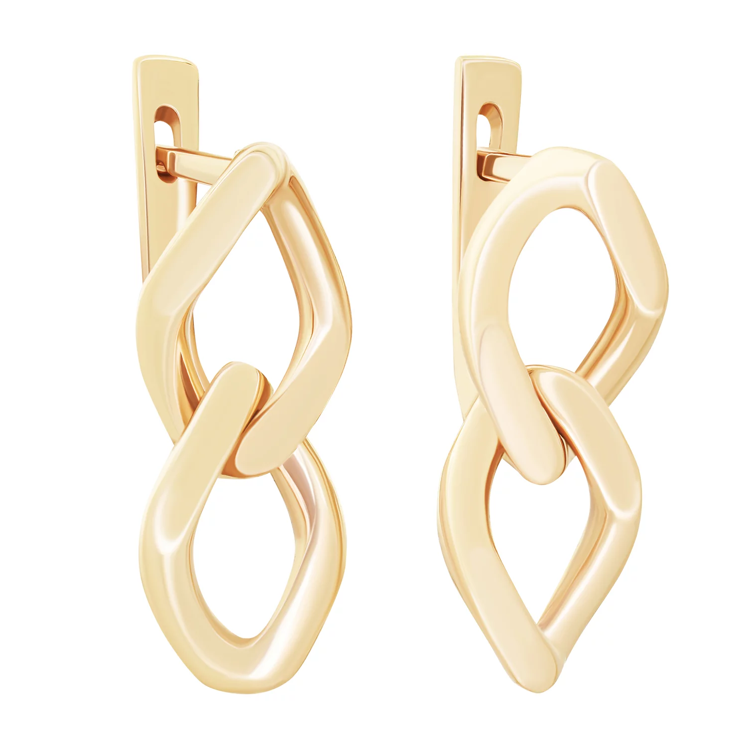 Елегантні сережки-гвоздики з підвісом в геометричному стилі з комбінованого золота - 1918777