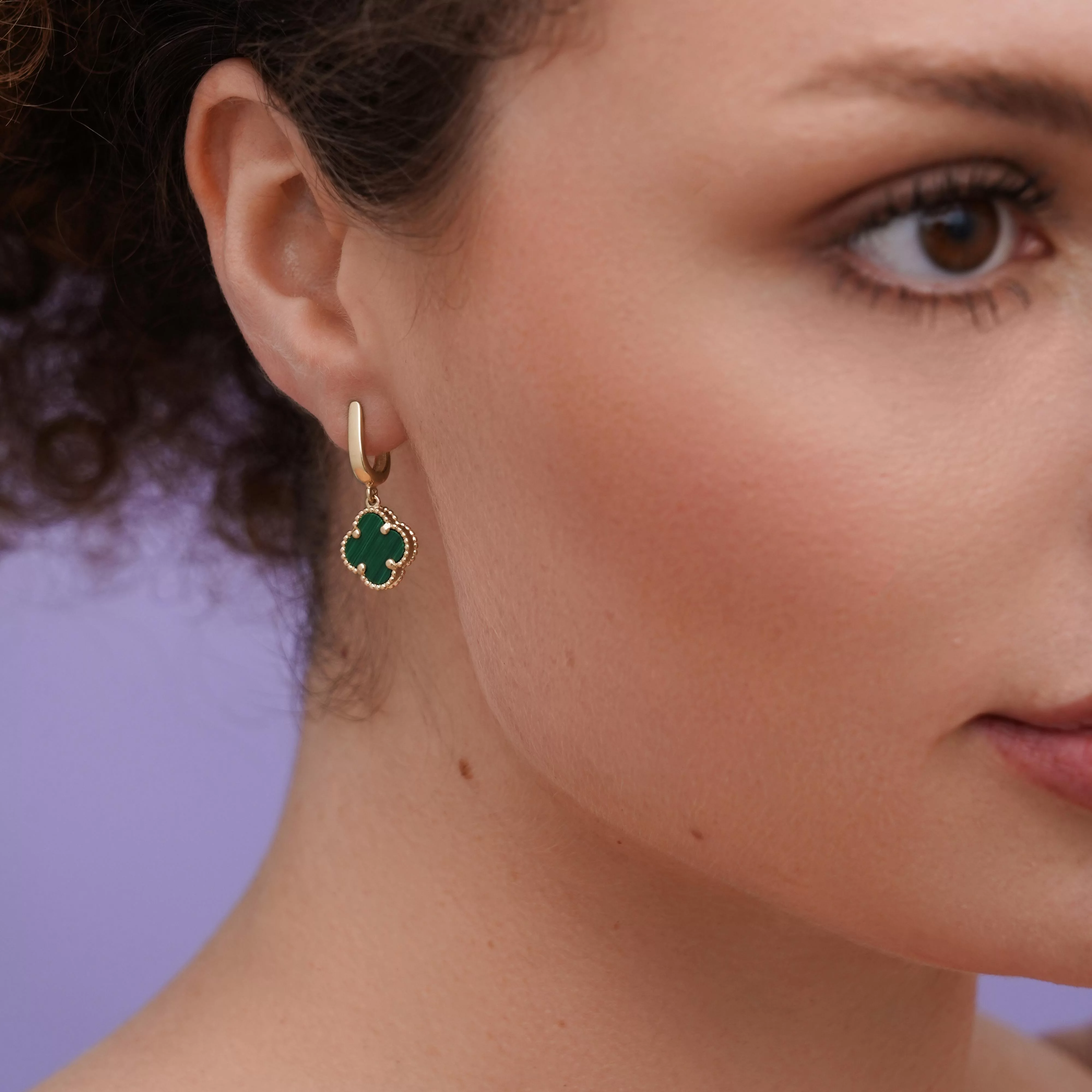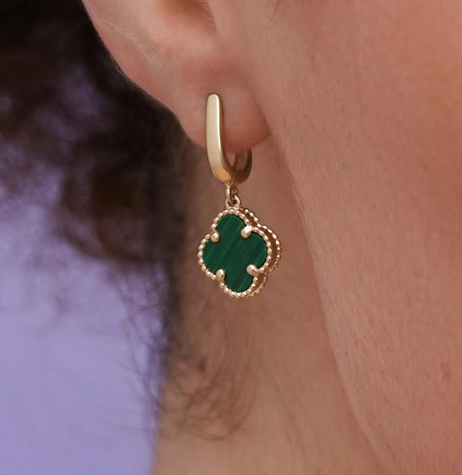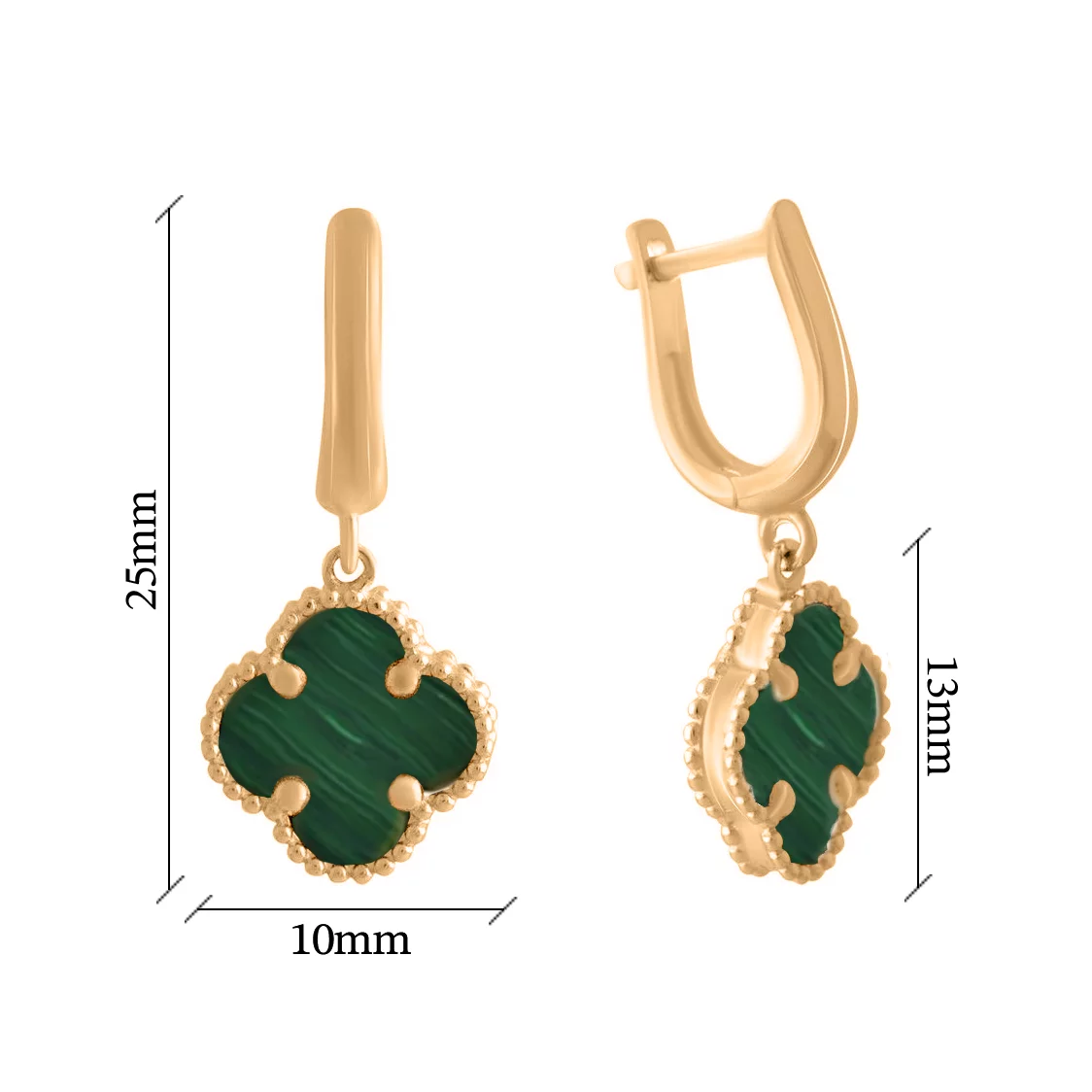 Сережки з червоного золота з підвіскою "Конюшина" з малахітом - 1747534
