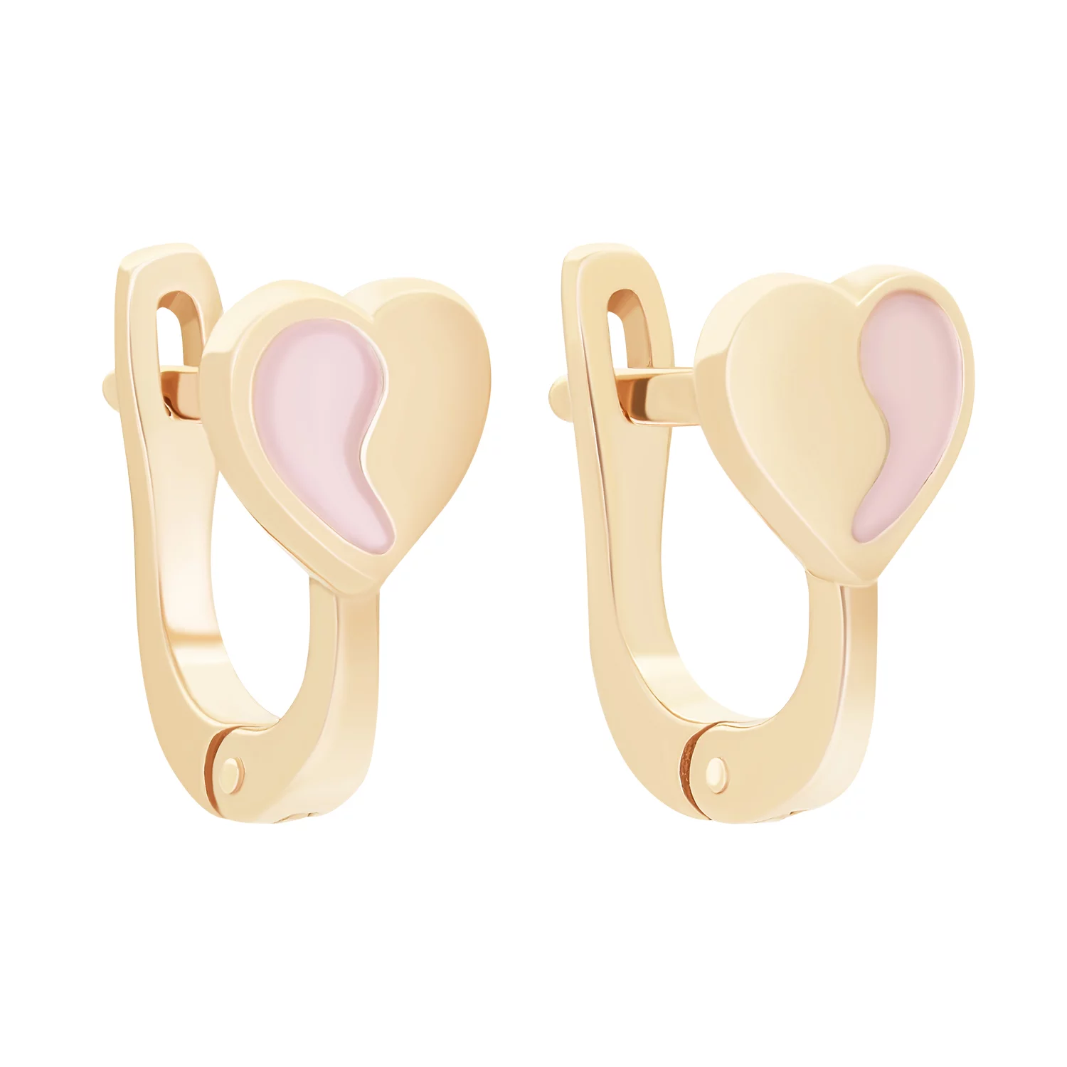 Елегантні сережки-гвоздики "Кулі" у червоному золоті з емаллю - 1926551