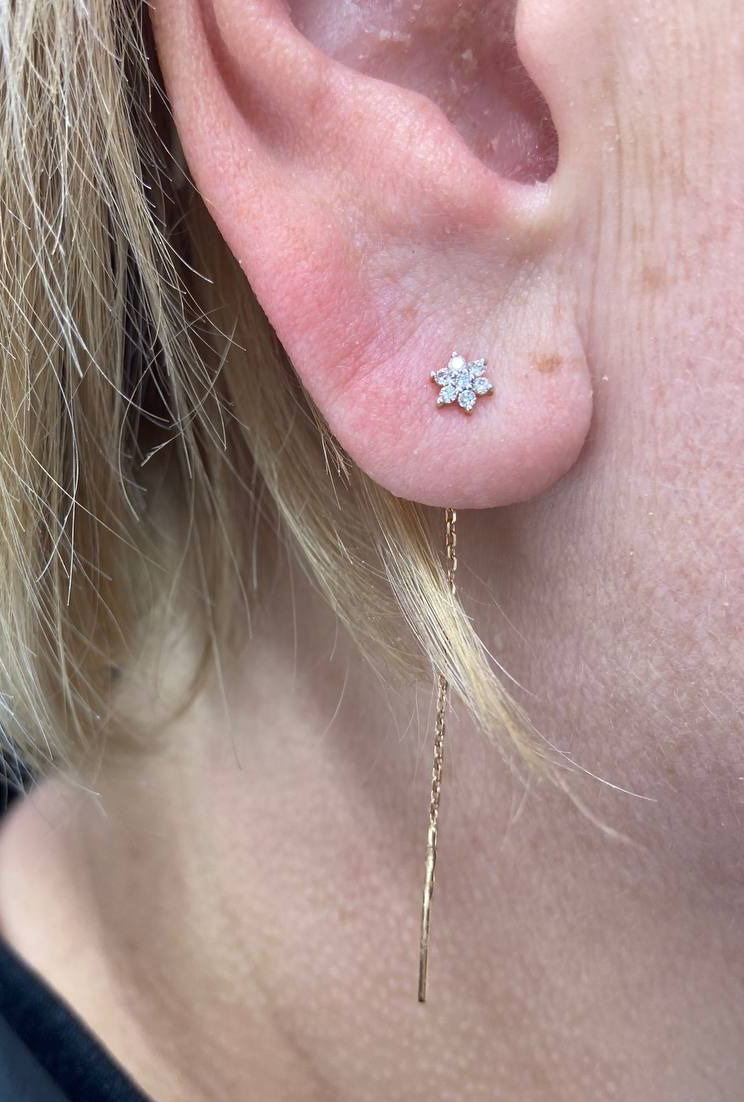 Стильні сережки-протяжки "Квіти" у білом золоті з діамантами - 1960415