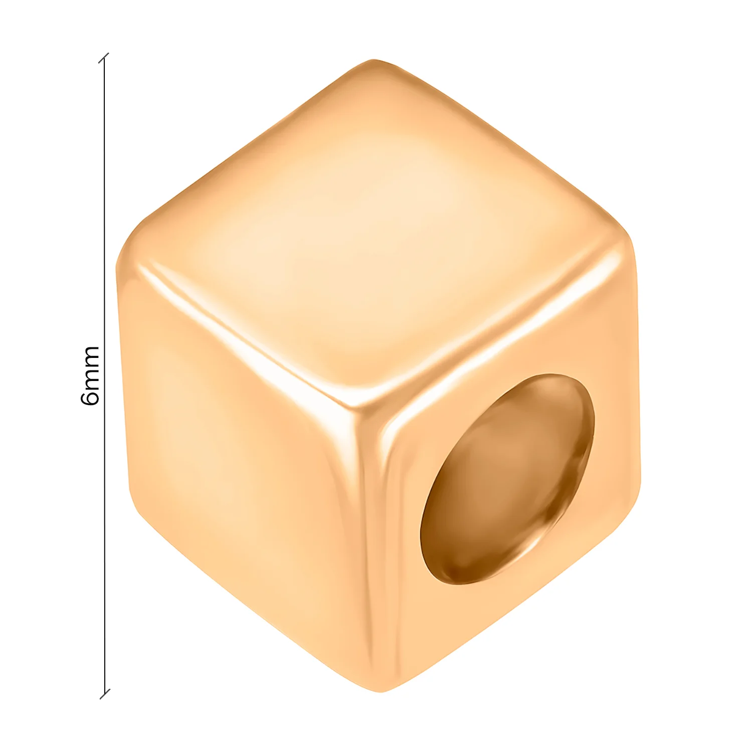 Шарм «Куб» із червоного золота — ювелірний виріб у мінімалістичному виконанні, який можна носити як кулон або доповнити ним браслет. Геометрична форма та прямі лінії привертають увагу, а закруглені кути пом'якшують строгий образ. Виріб виконаний із дорогоцінного металу 585 проби, червоний відтінок якому надає мідь, додана в лігатуру сплаву в кількості 9,5% від загального складу. Завдяки насиченому кольору золота прикраса має яскравий вигляд. Такий шарм може стати приємним подарунком на честь свята чи просто так.