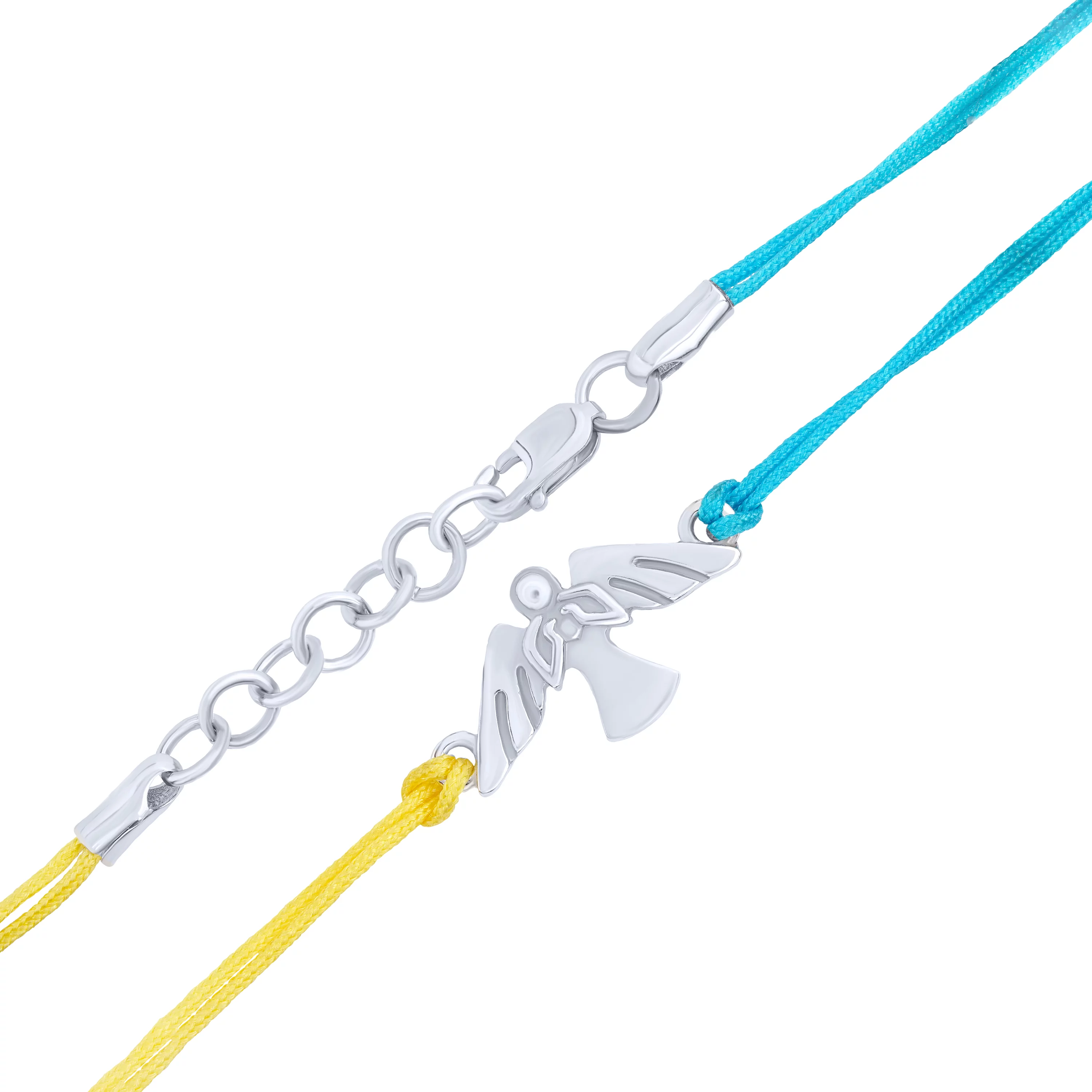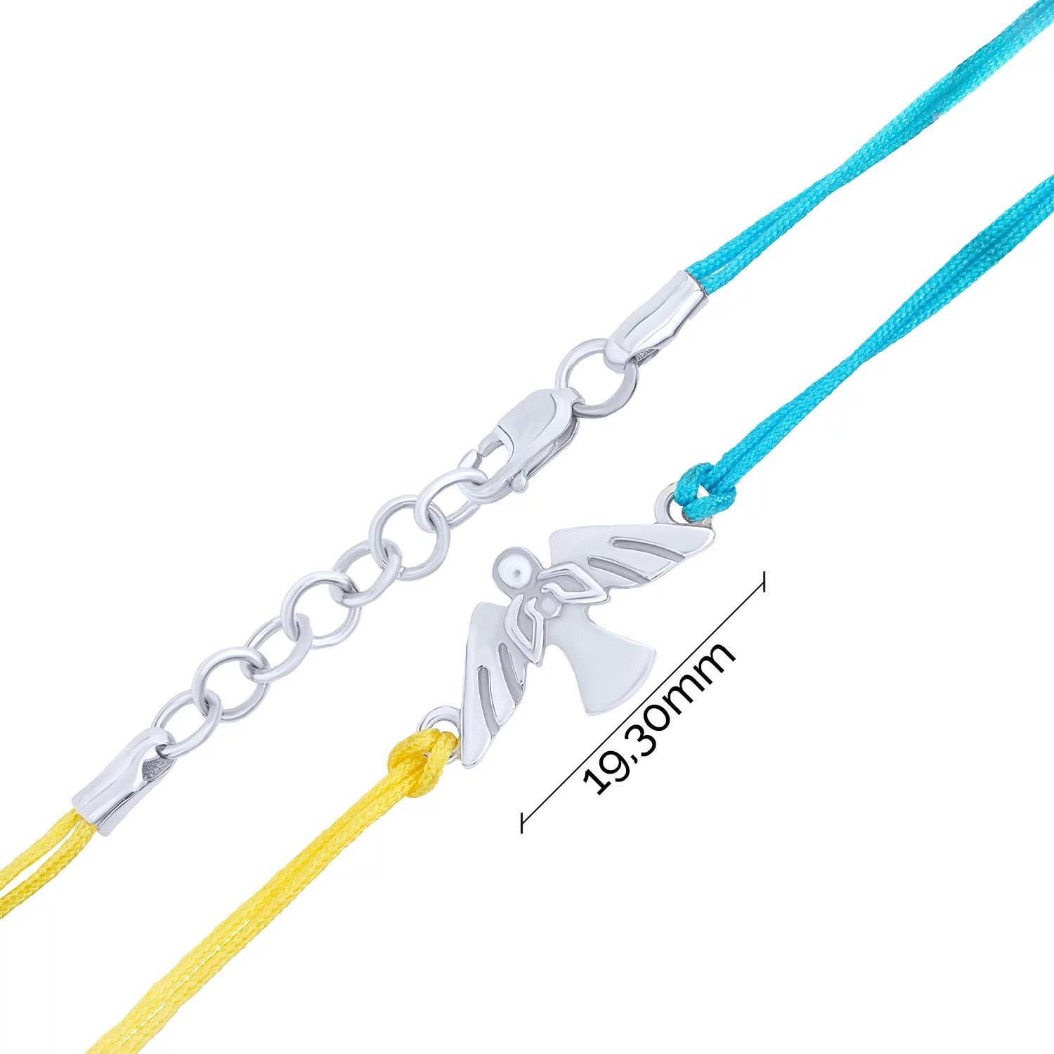Шовковий браслет зі вставкою зі срібла "Янгол з серцем" з фіанітами - 1822264
