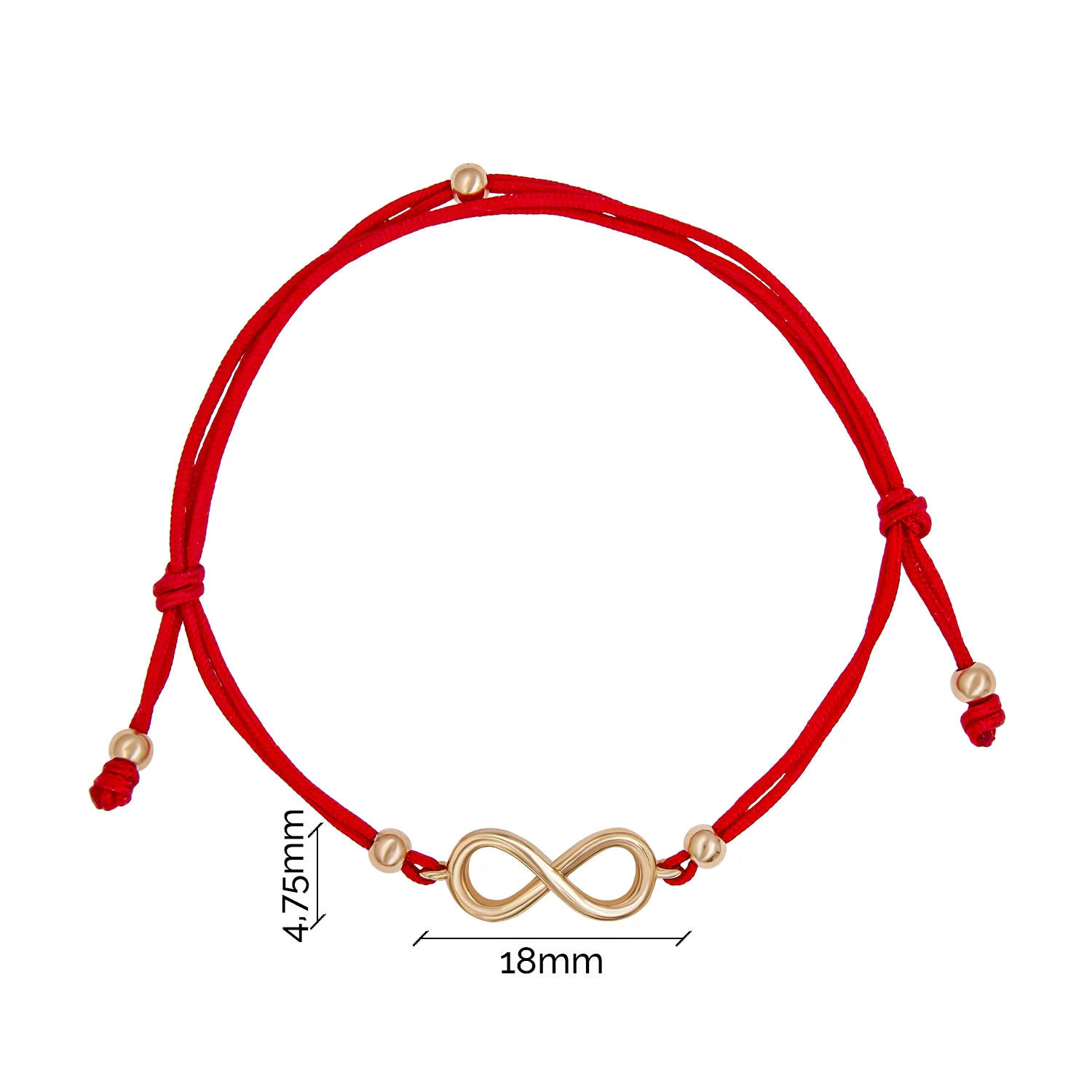 Браслет червона нитка "Нескінченність" зі вставками з червоного золота з фіанітами - 1562141