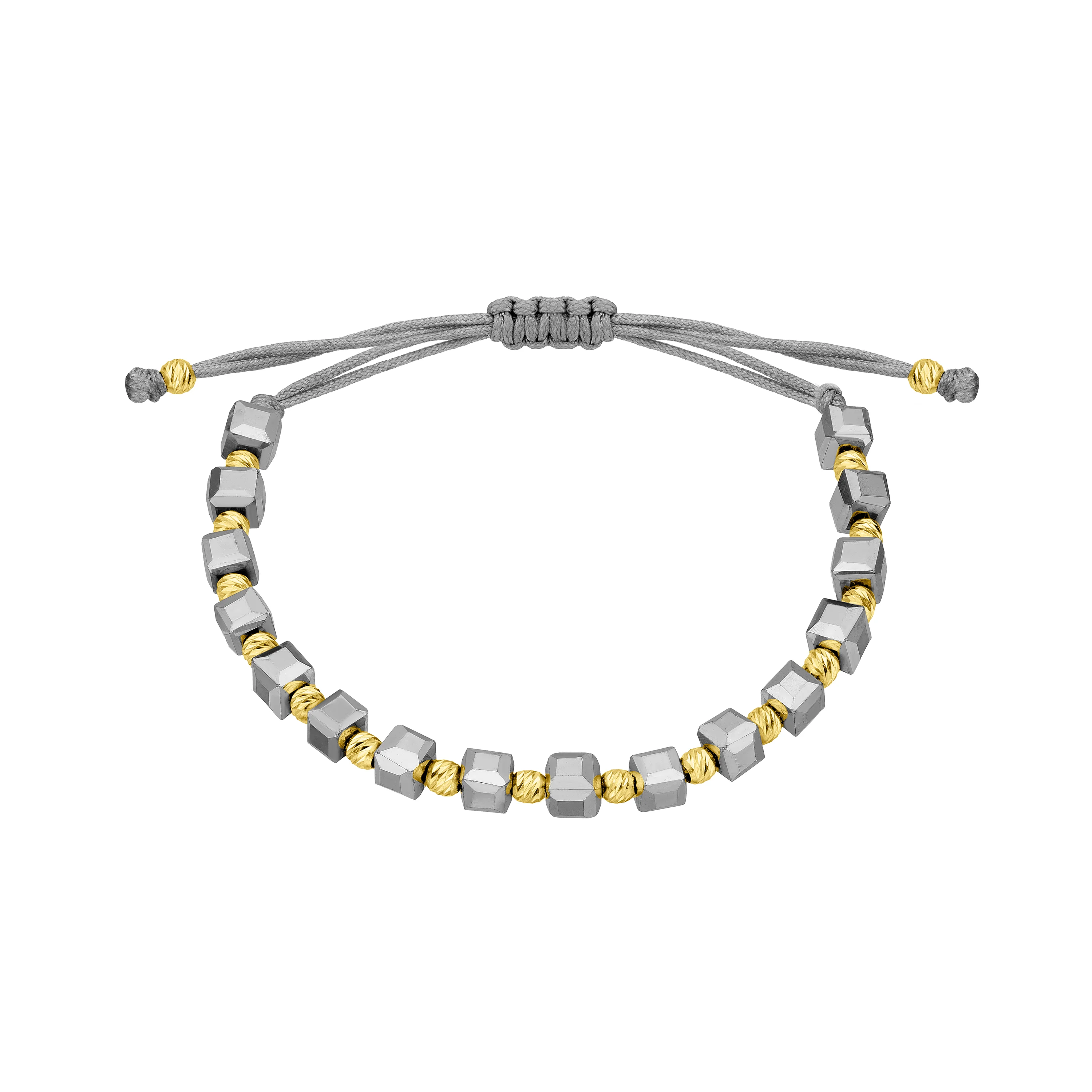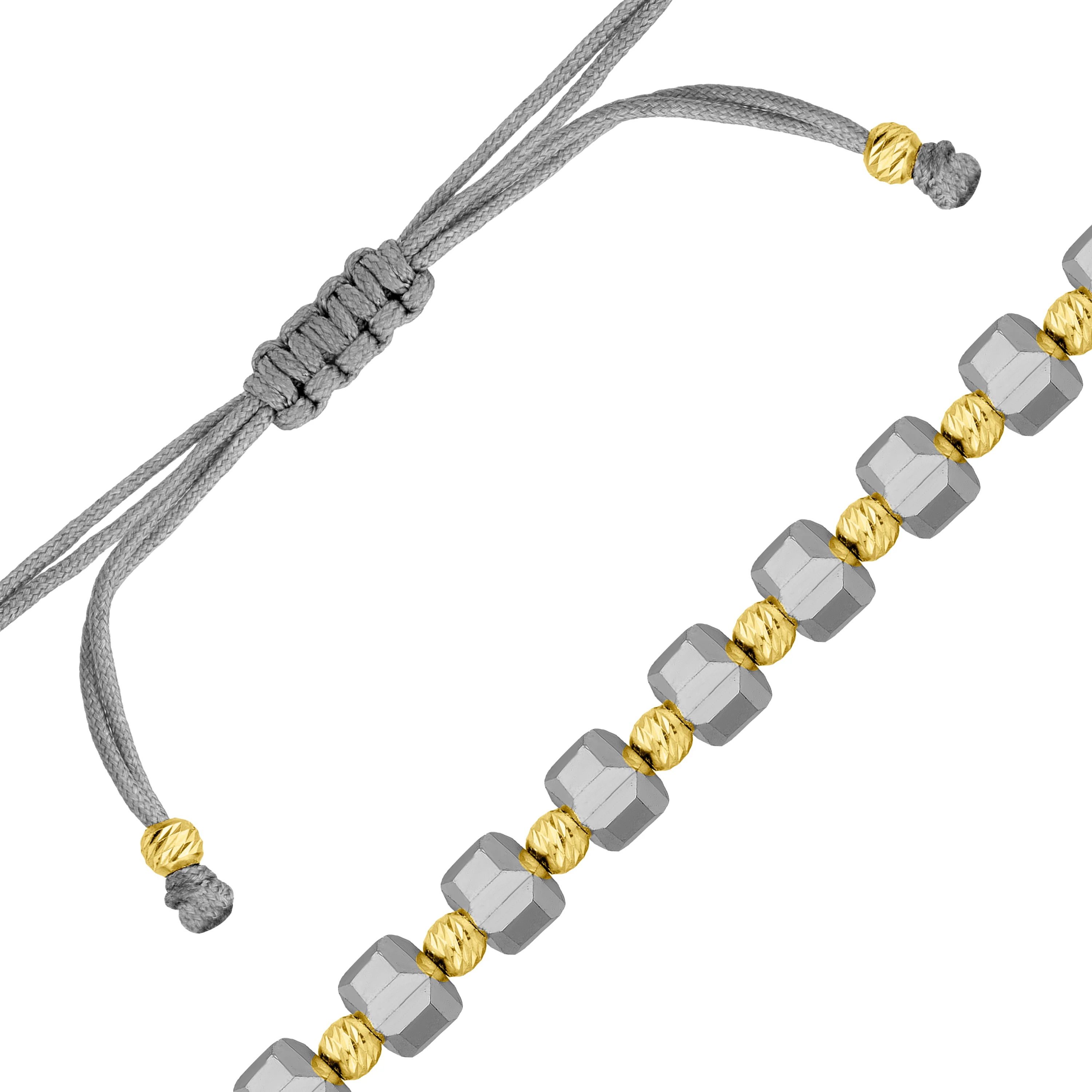 Шовковий браслет з оніксом і вставками зі срібла в жовтому родіюванні - 2087885