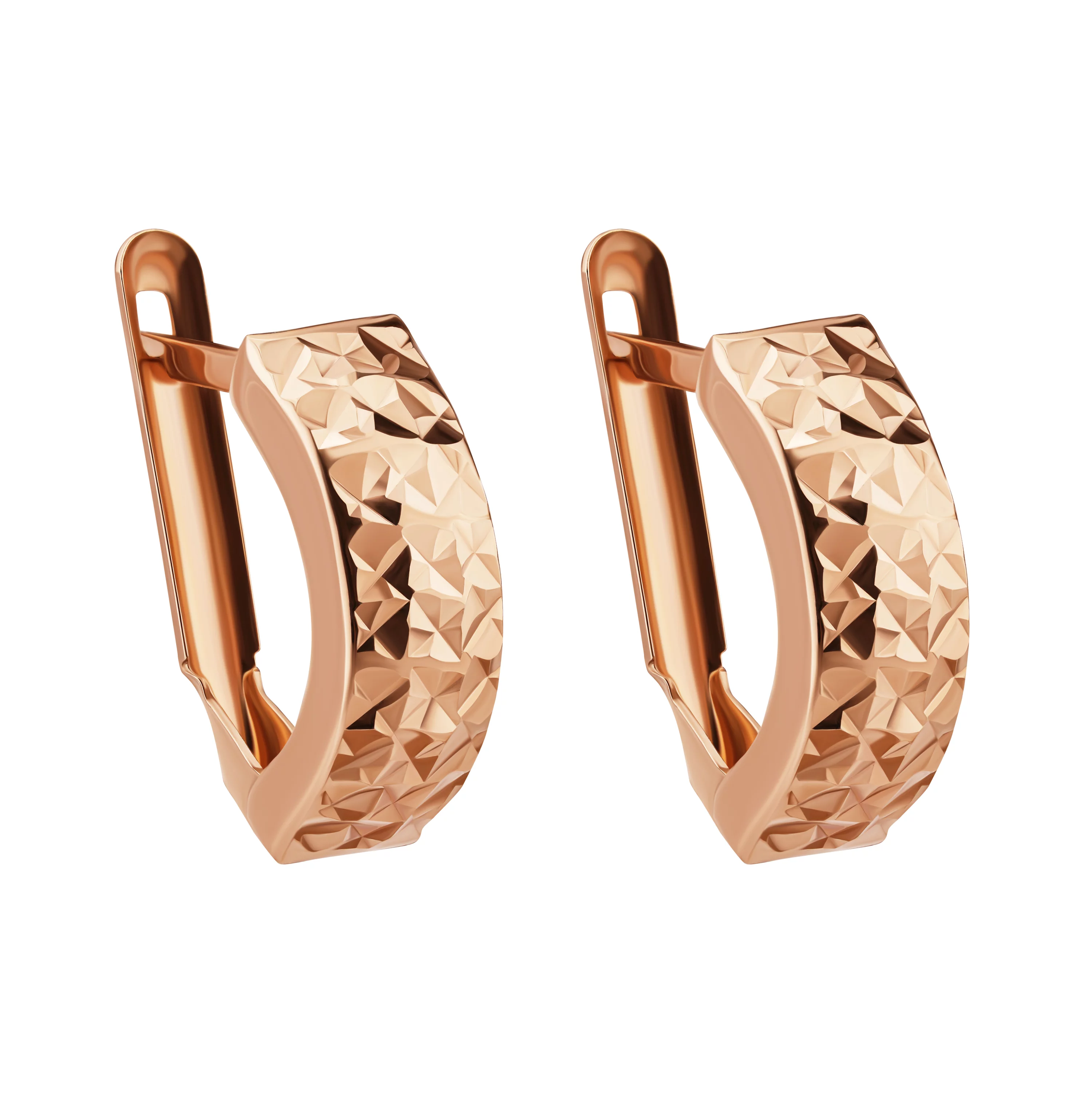 Елегантні сережки-конго з червоного золота з алмазною гранню - 1877738