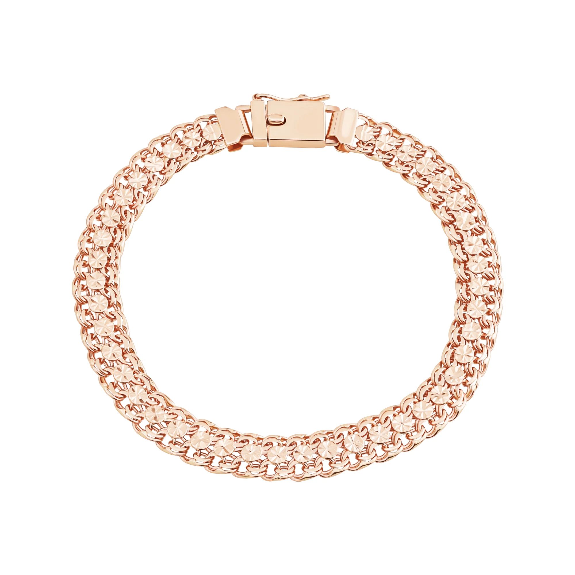 Широкий браслет з червоного золота у плетінні подвійний бісмарк - 2107944