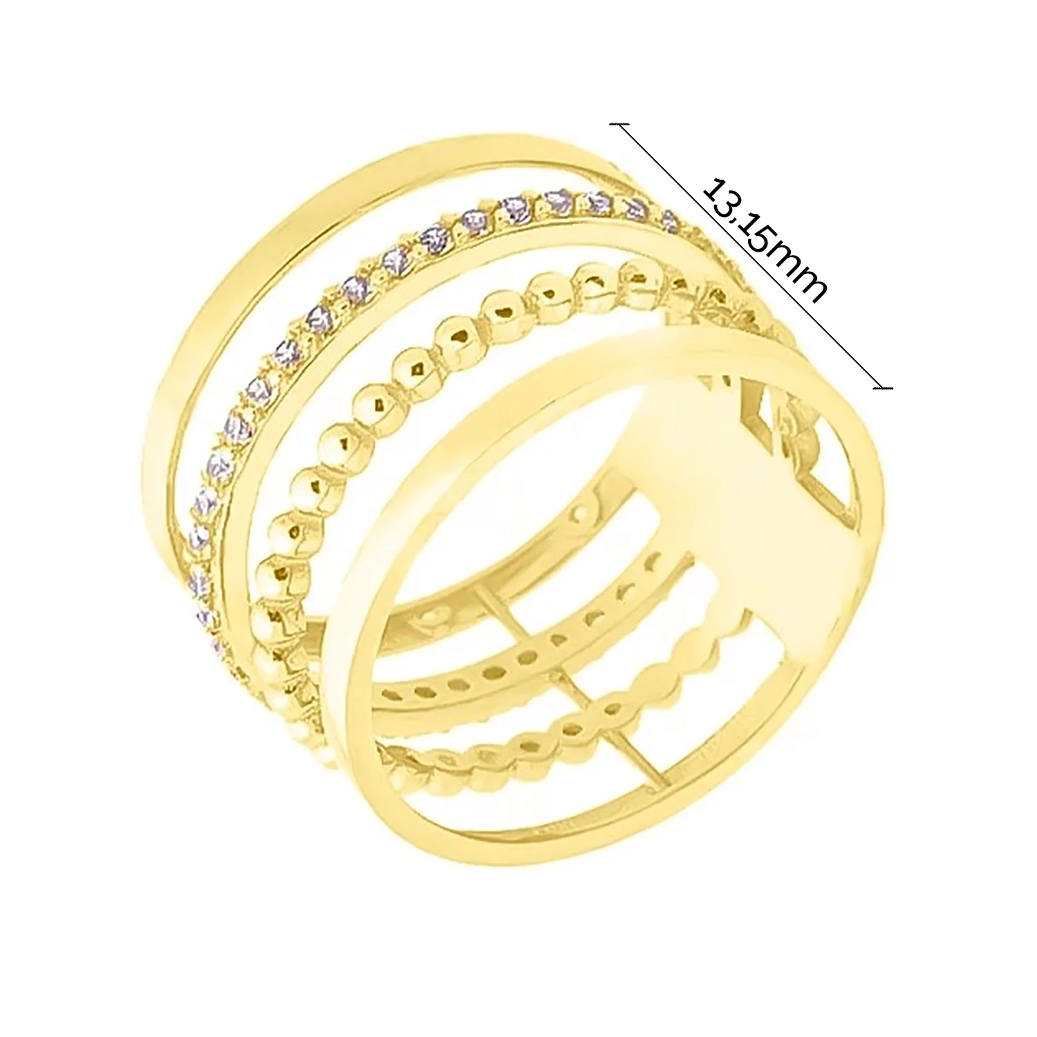 Широка каблучка з лимонного золота з фіанітами - 1819082