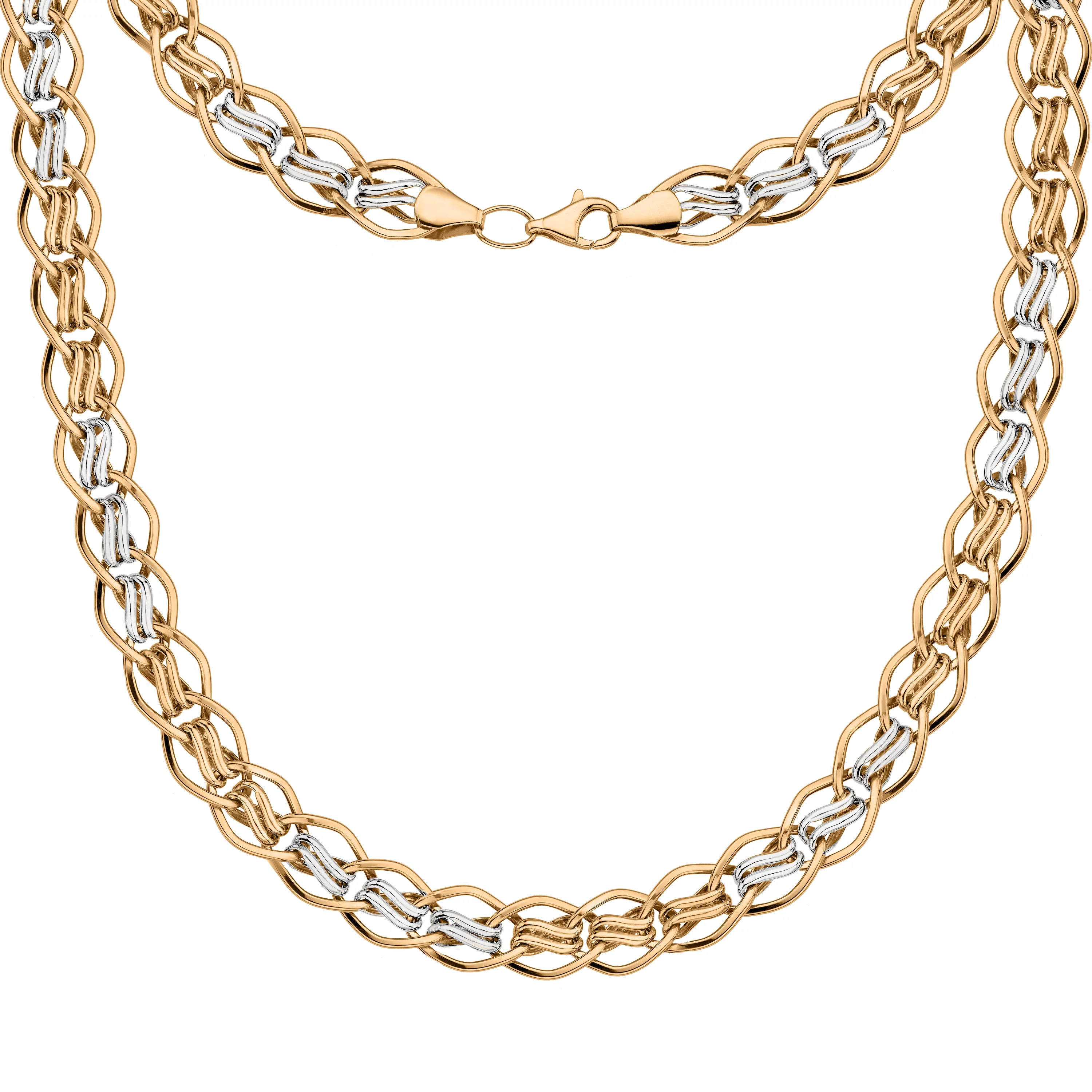 Подвійне кольє в комбінованому золоті з кульками якірне плетіння - 1823890