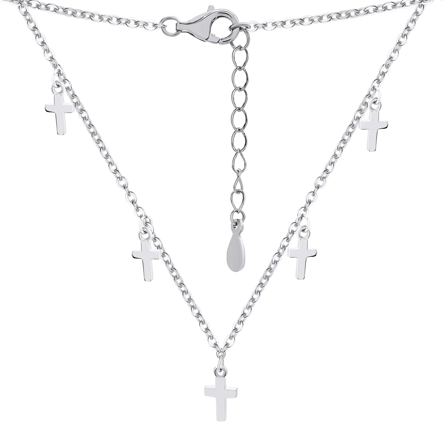 Елегантний ланцюжок з підвісом "Хрестик" у сріблі з якорним плетінням - 1933419