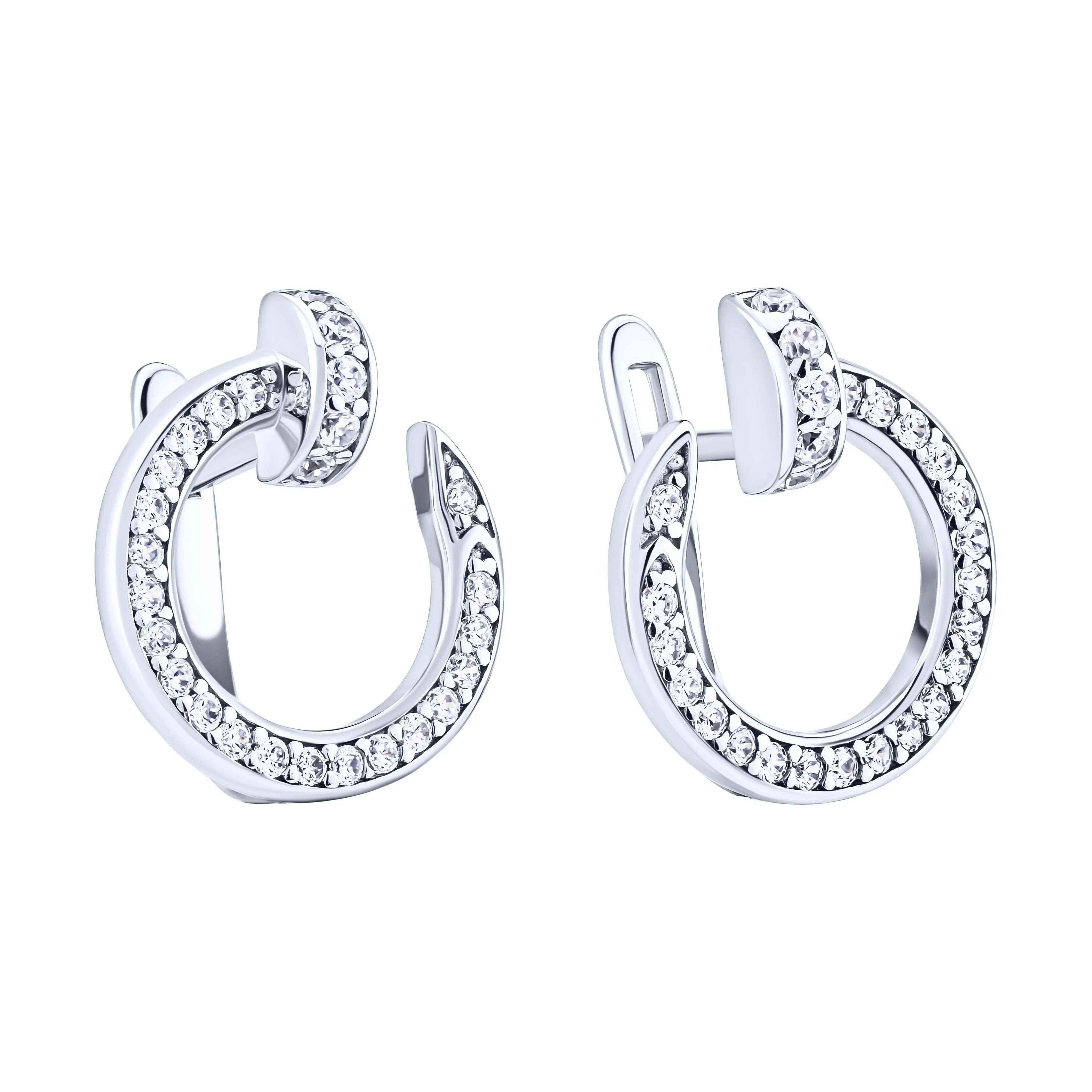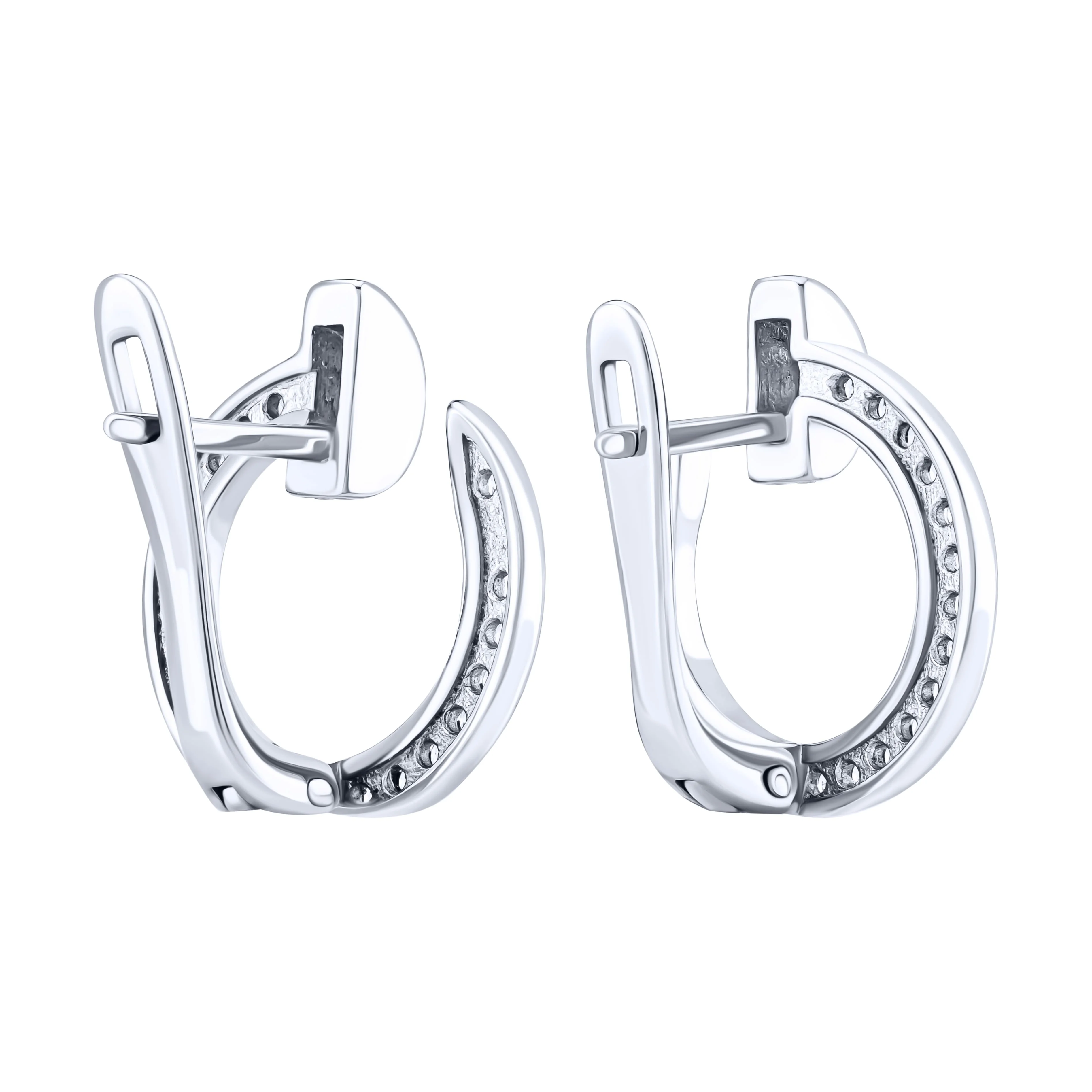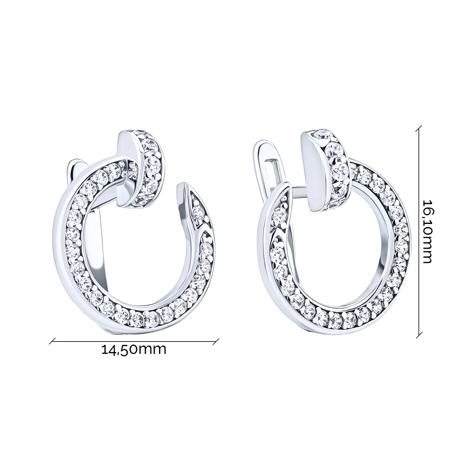 Срібні сережки "Цвях" з фіанітами - 2091717