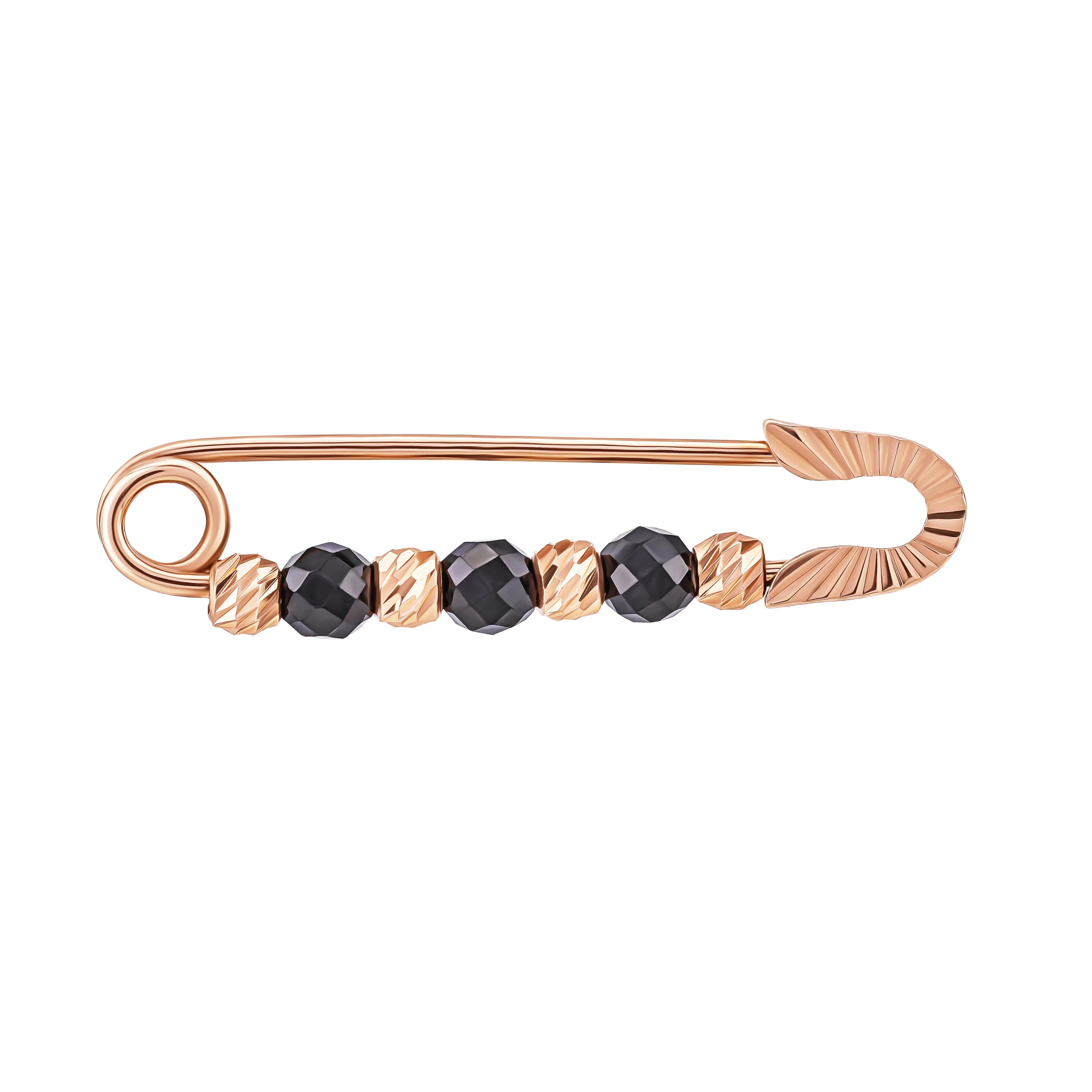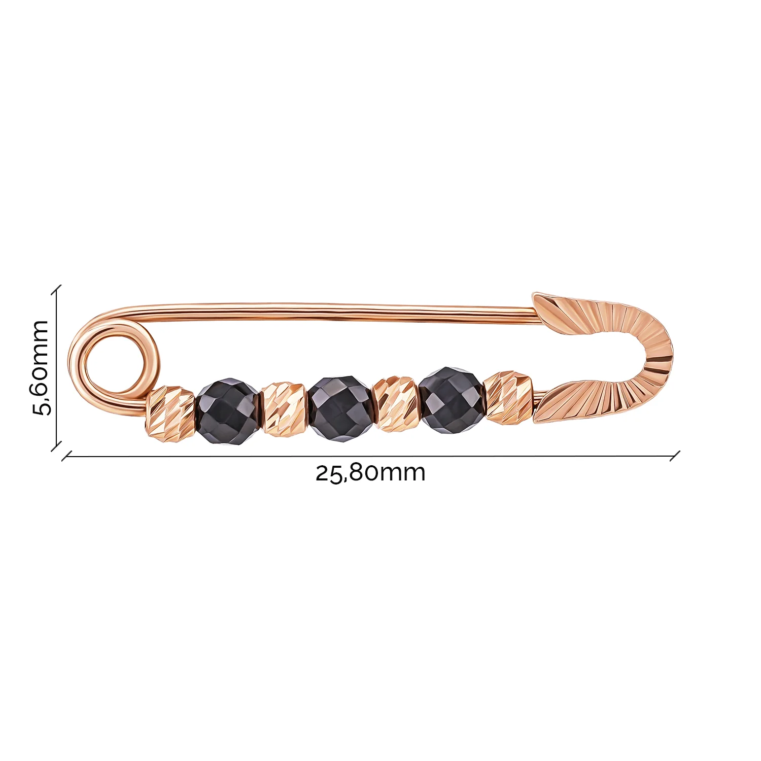 Стильна шпилька "Кулі" з червоного золота з алмазною гранню та шпінеллю - 1876287