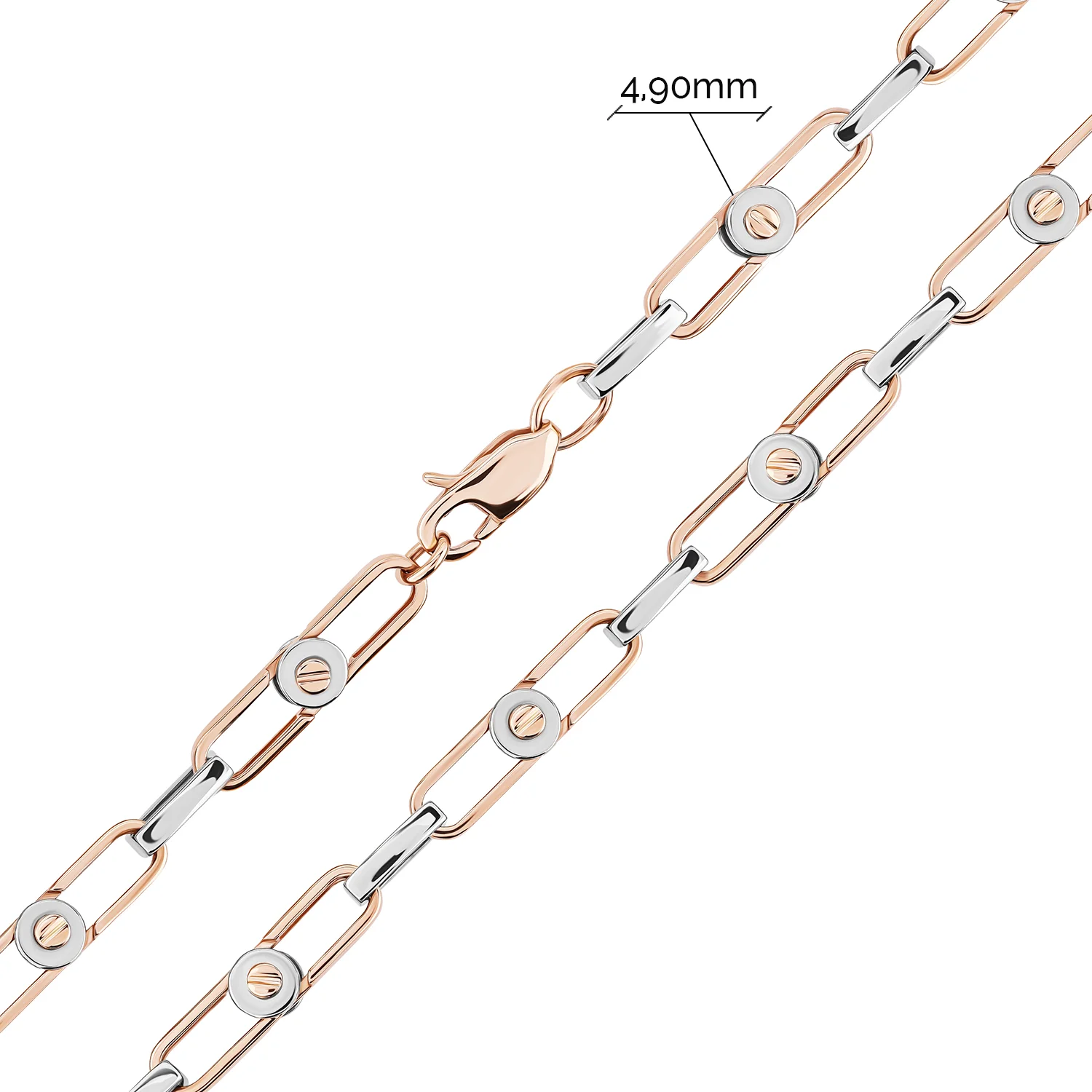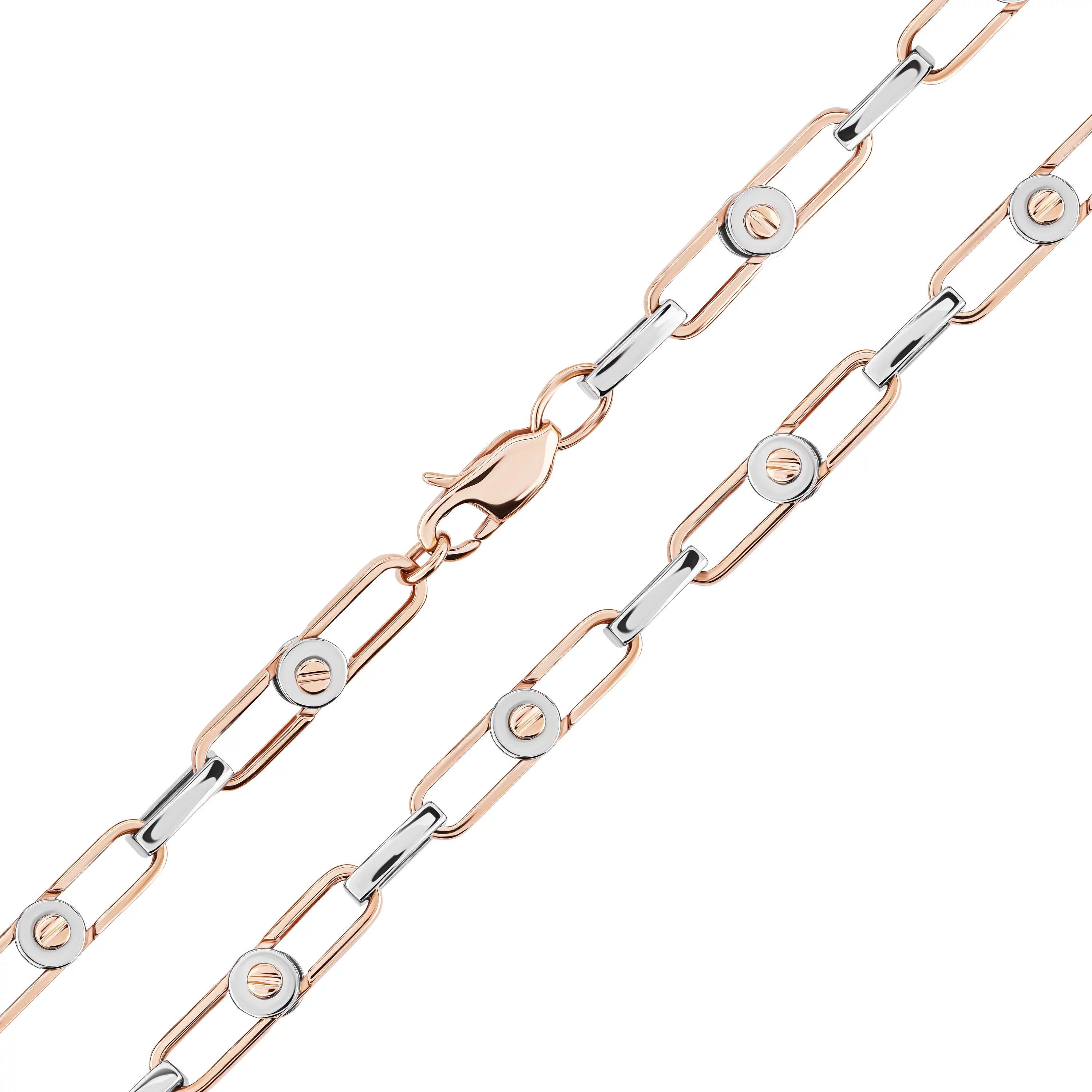 Ланцюжок з підвісом "Квітка" з комбінованого золота з алмазною гранню та якірним плетінням - 1870021