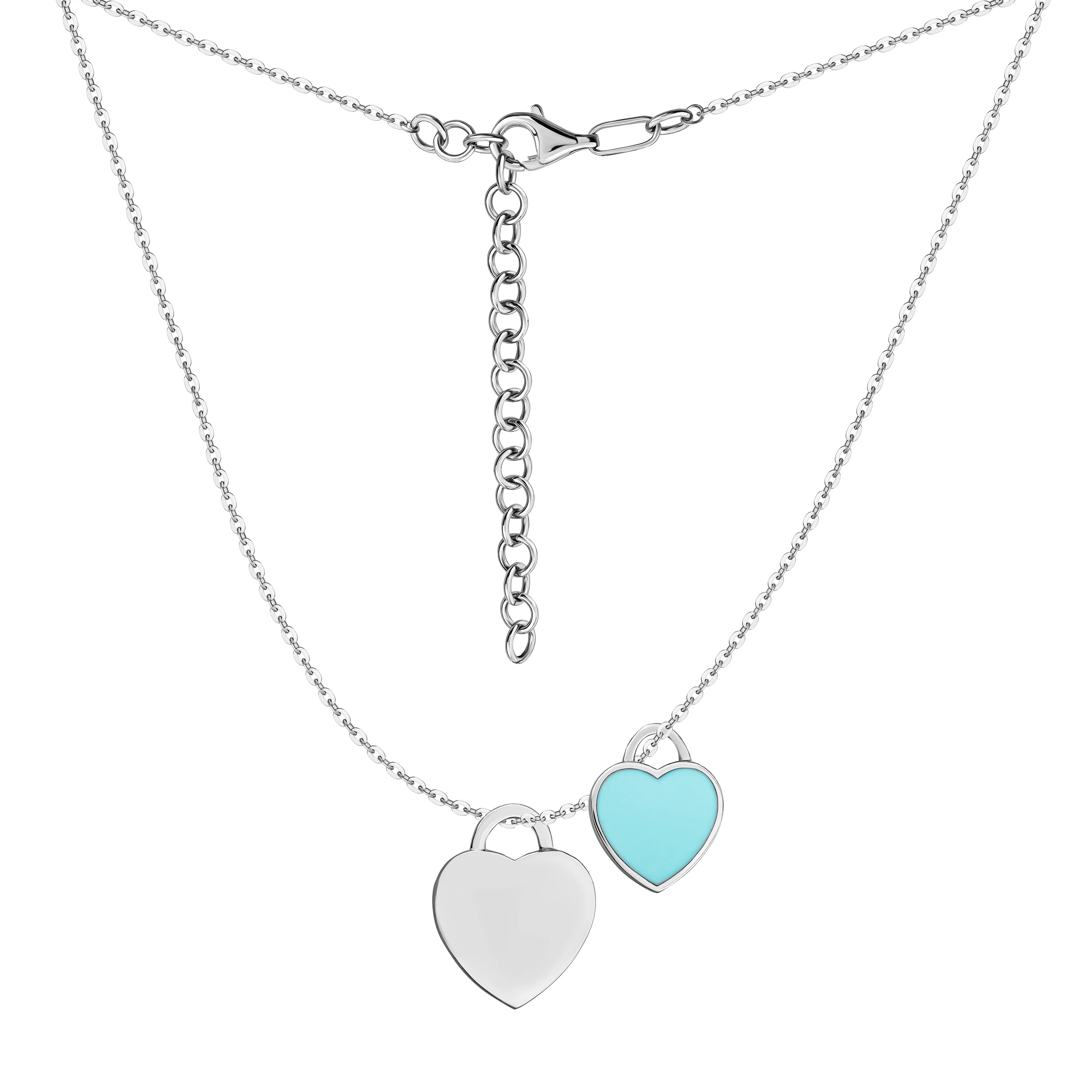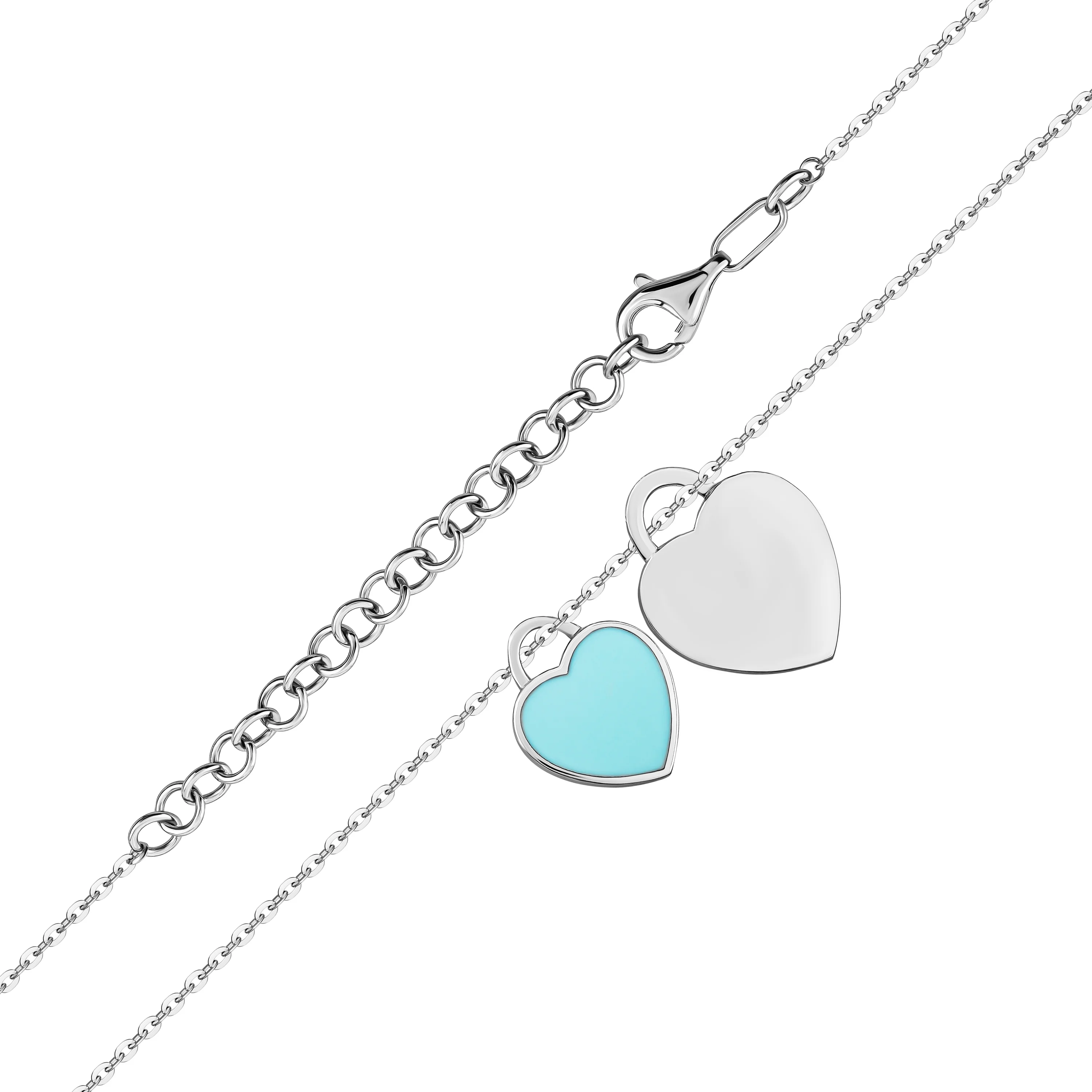 Стильний ланцюжок з підвісами "Серце" в білому золоті з емаллю і плетінням якір - 1974431