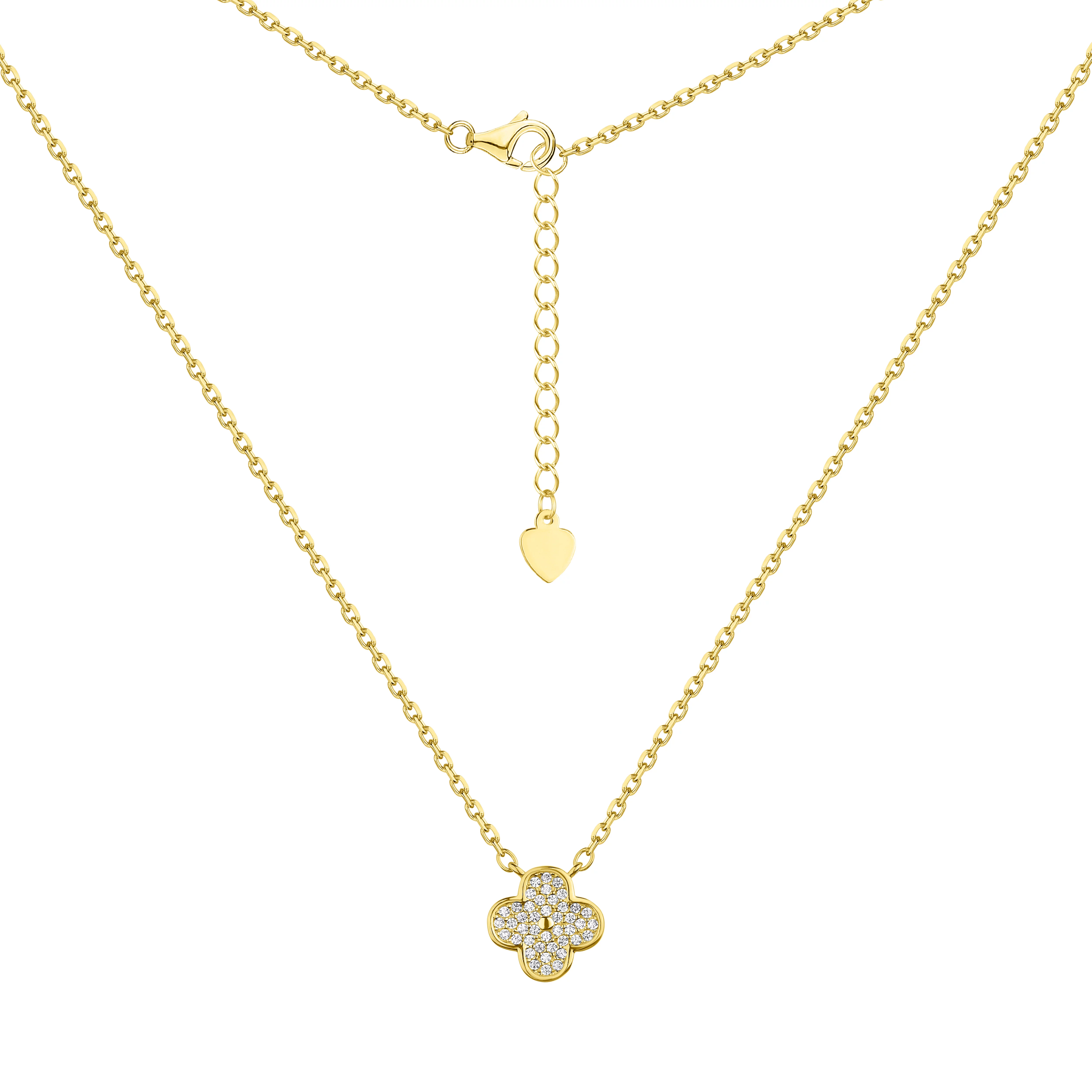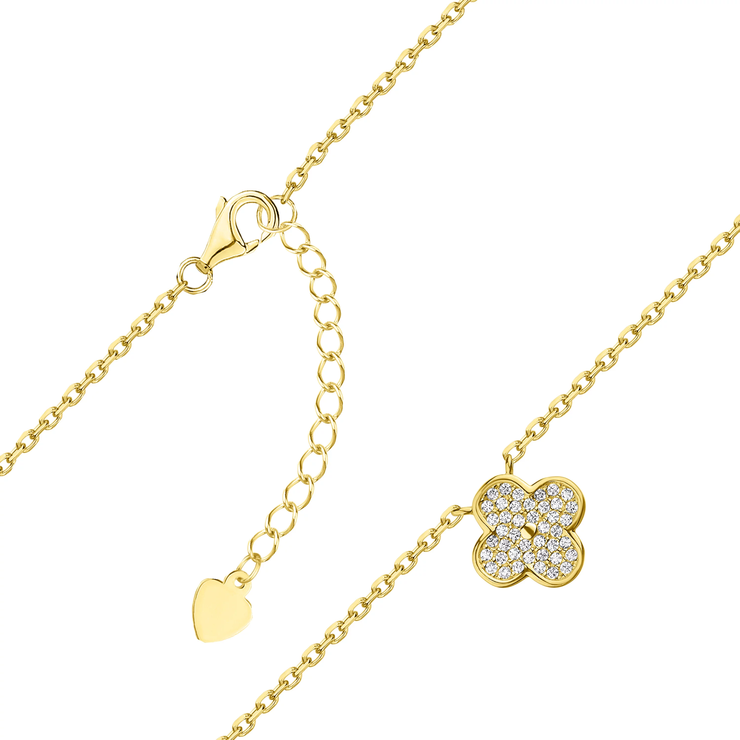 Елегантне кольє зі срібла з підвісом "Конюшина" з фіанітами та якірним плетінням - 1962877