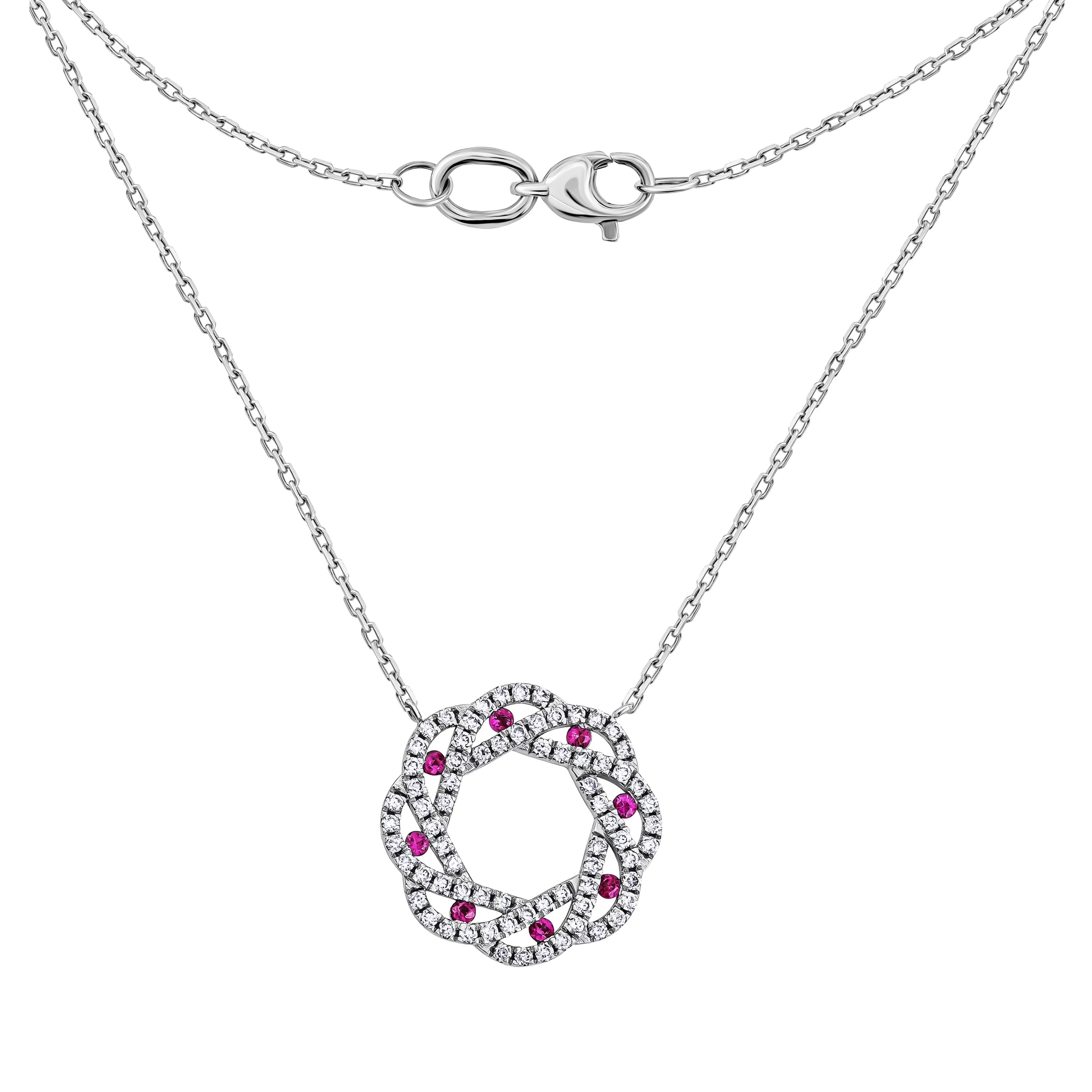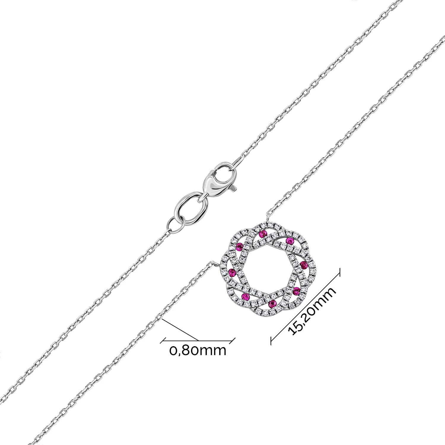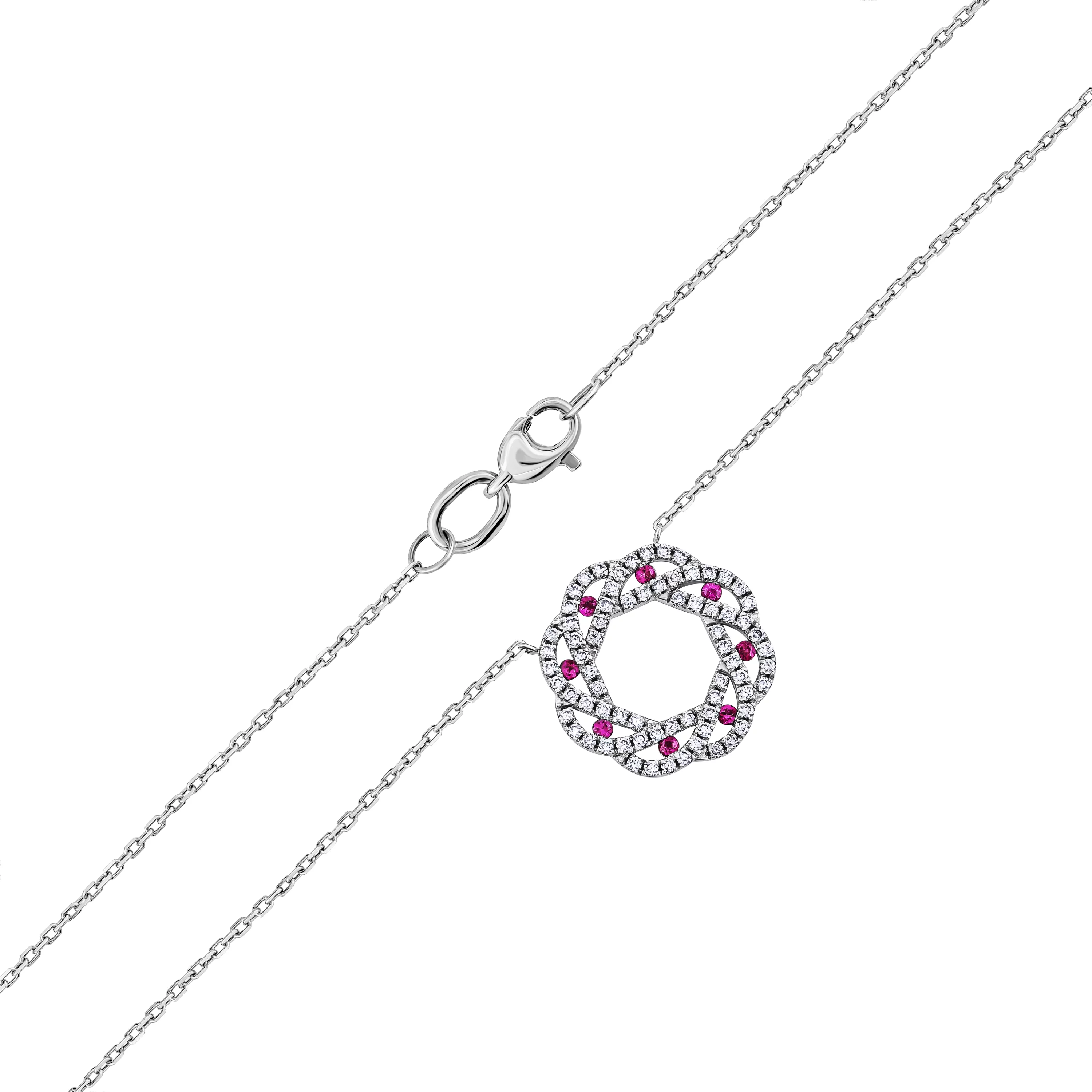 Кольє з підвісом "Коло" у білому золоті з доріжкою з діамантів з якірним плетінням - 1847843
