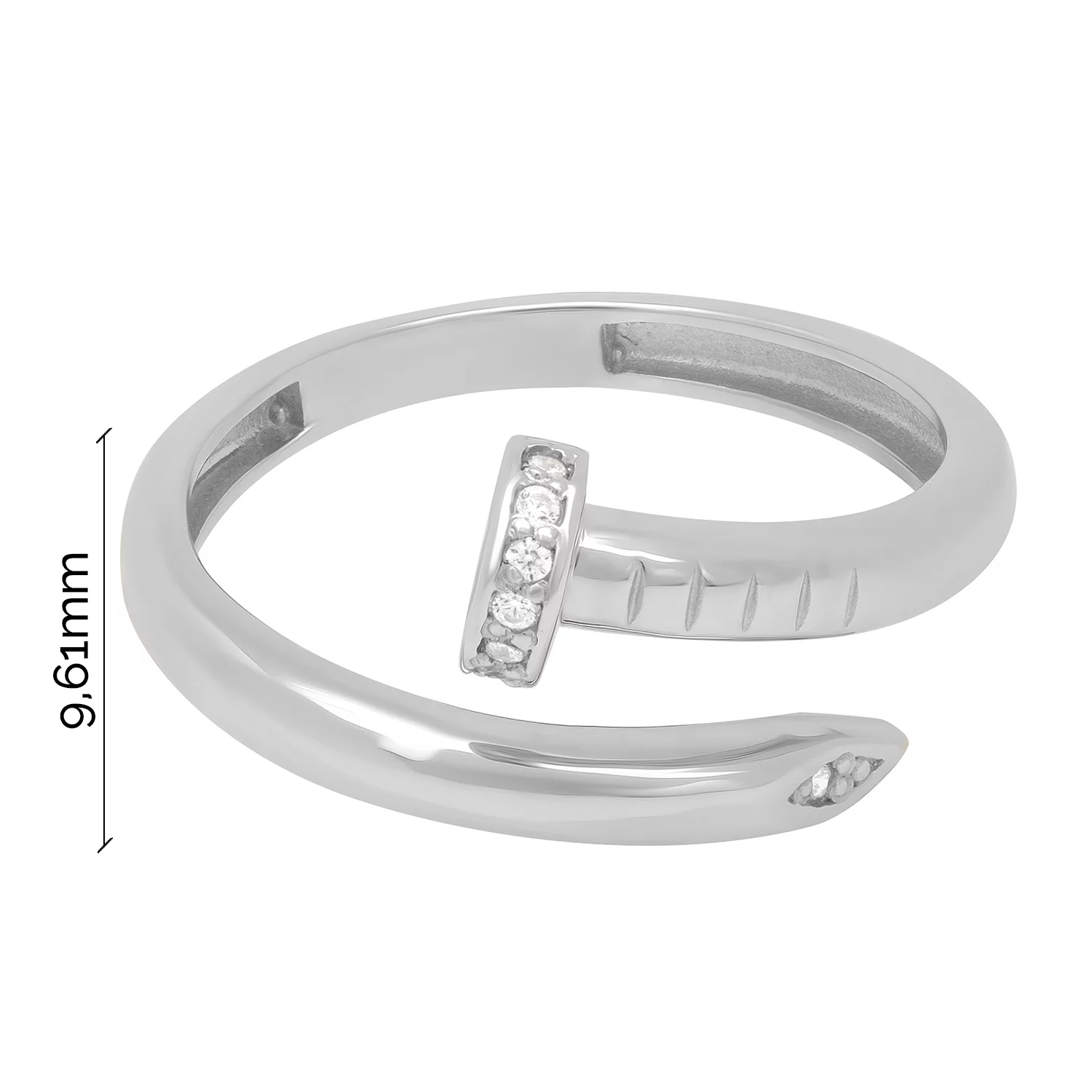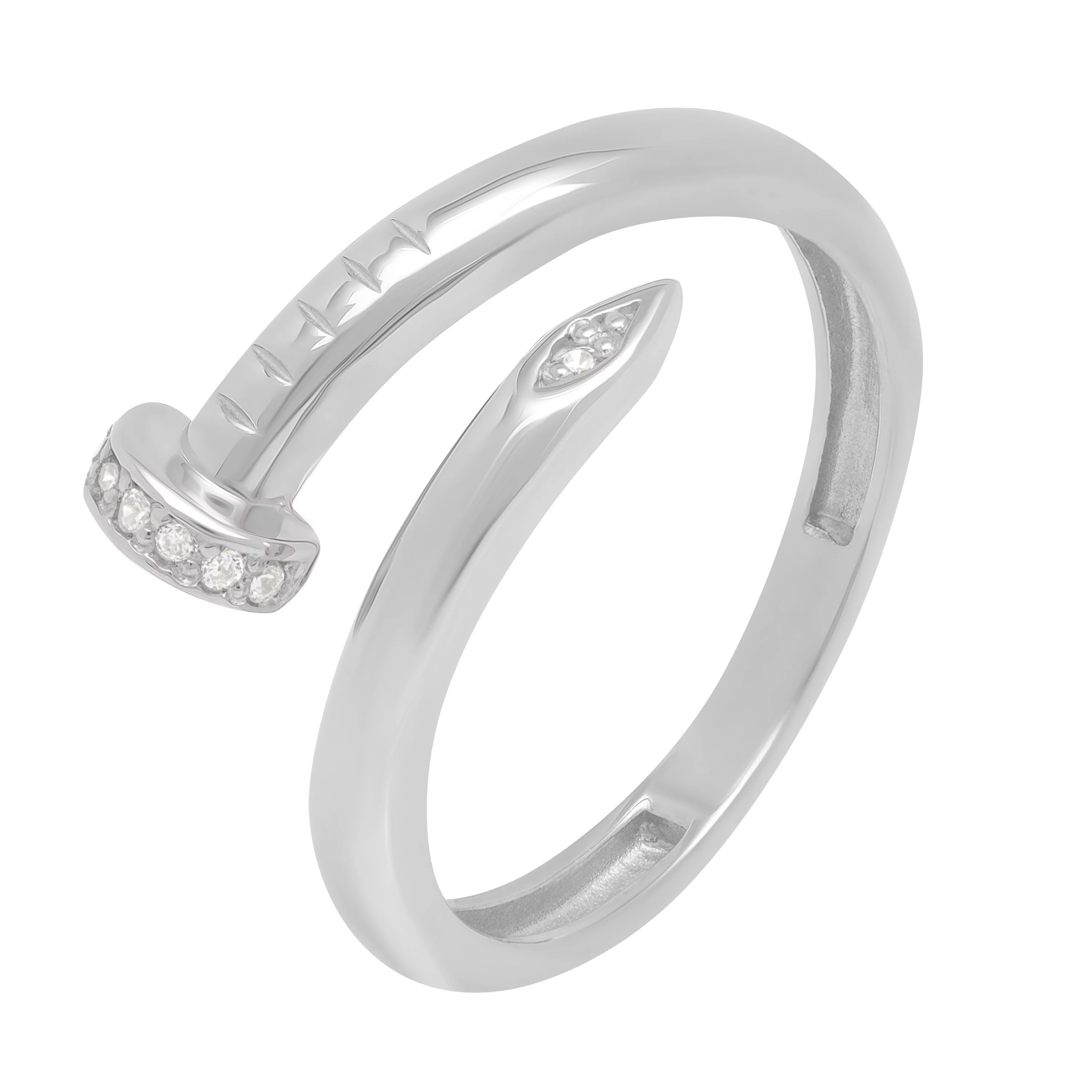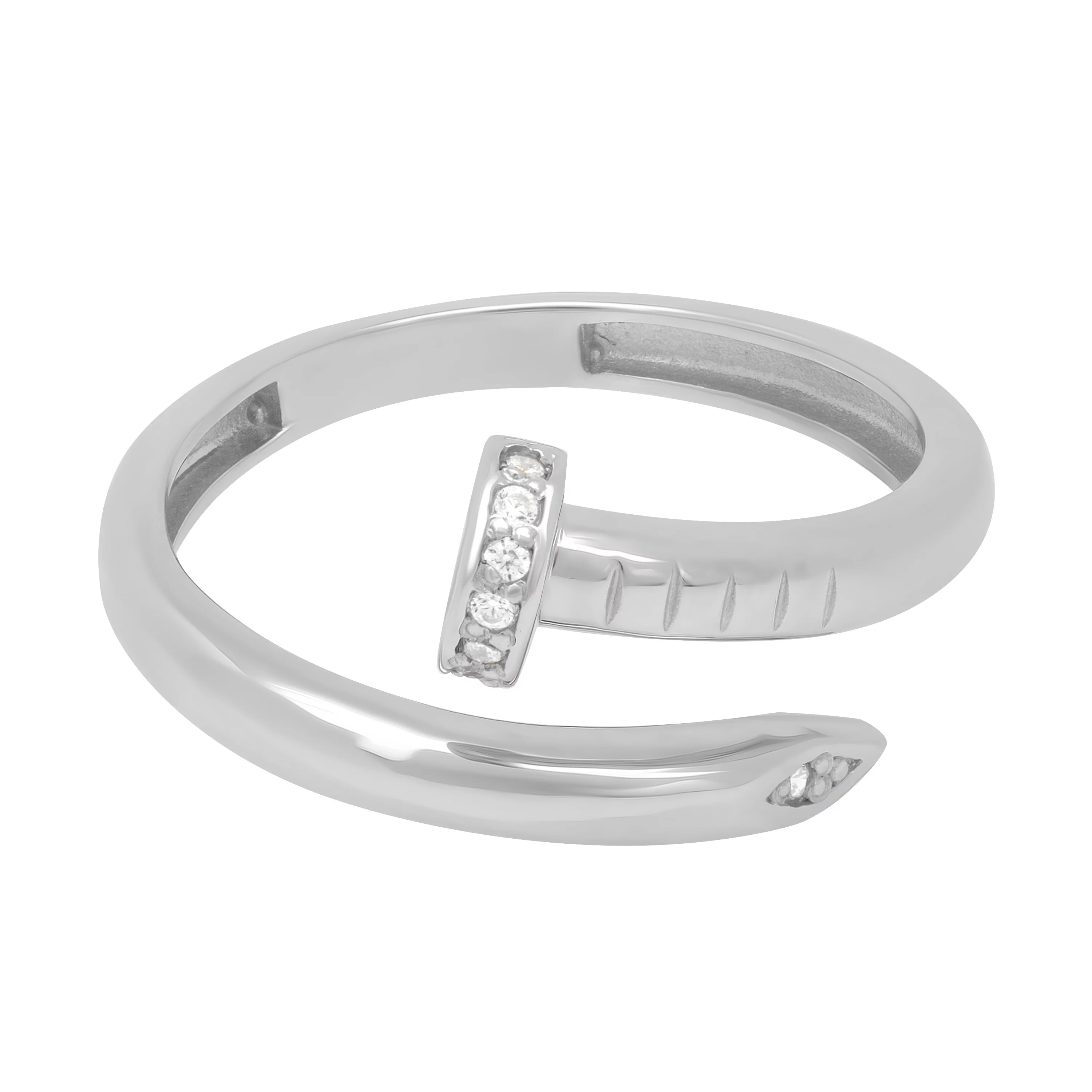 Стильна каблучка "Цвях" з білого золота з доріжкою з фіанітів - 1919907