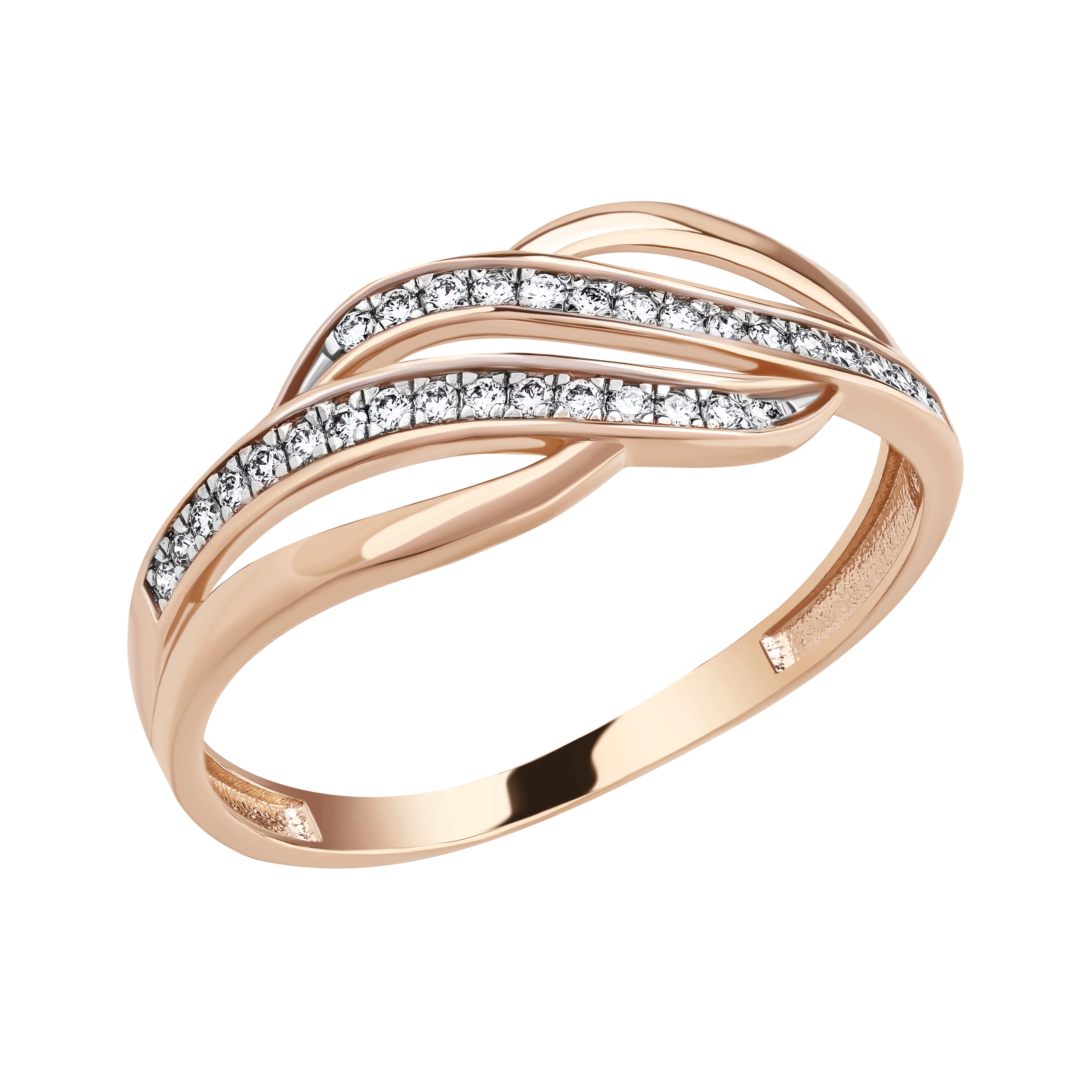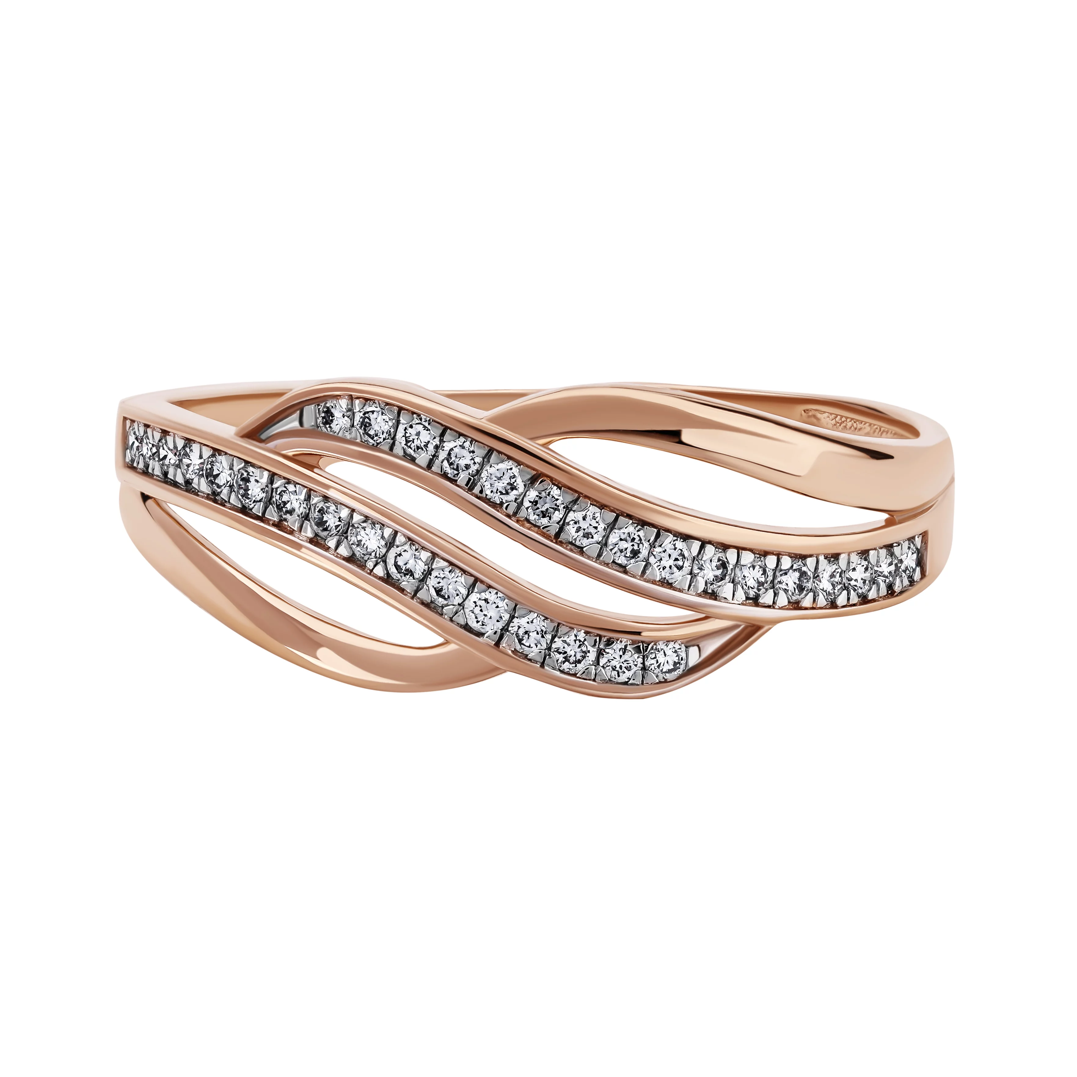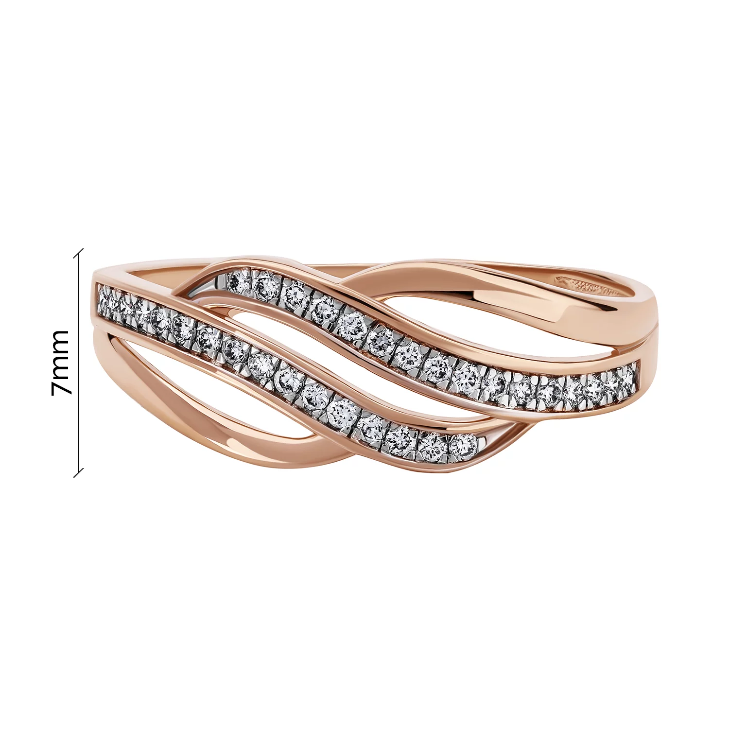 Витончена незамкнута каблучка з червоного золота з діамантами - 1859343