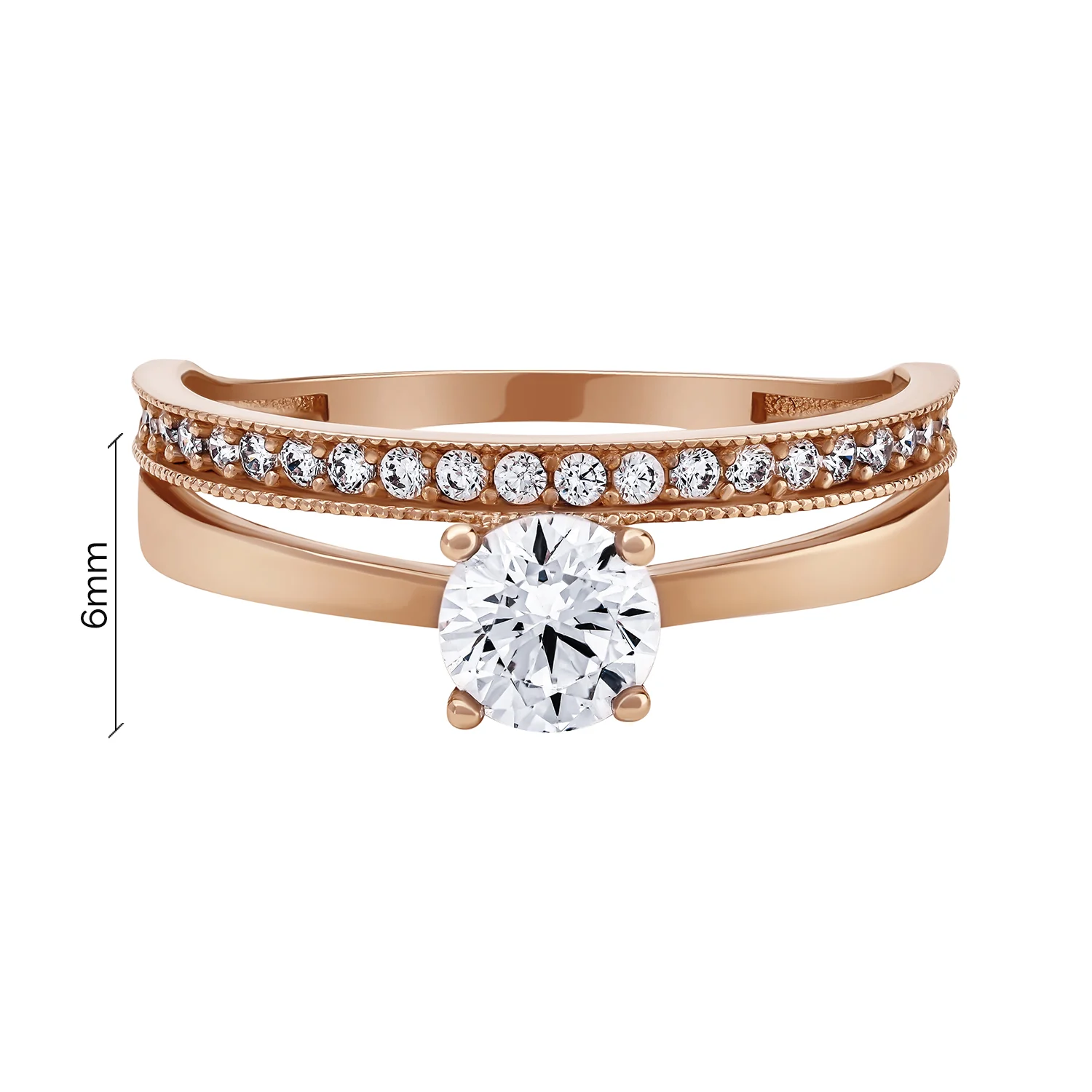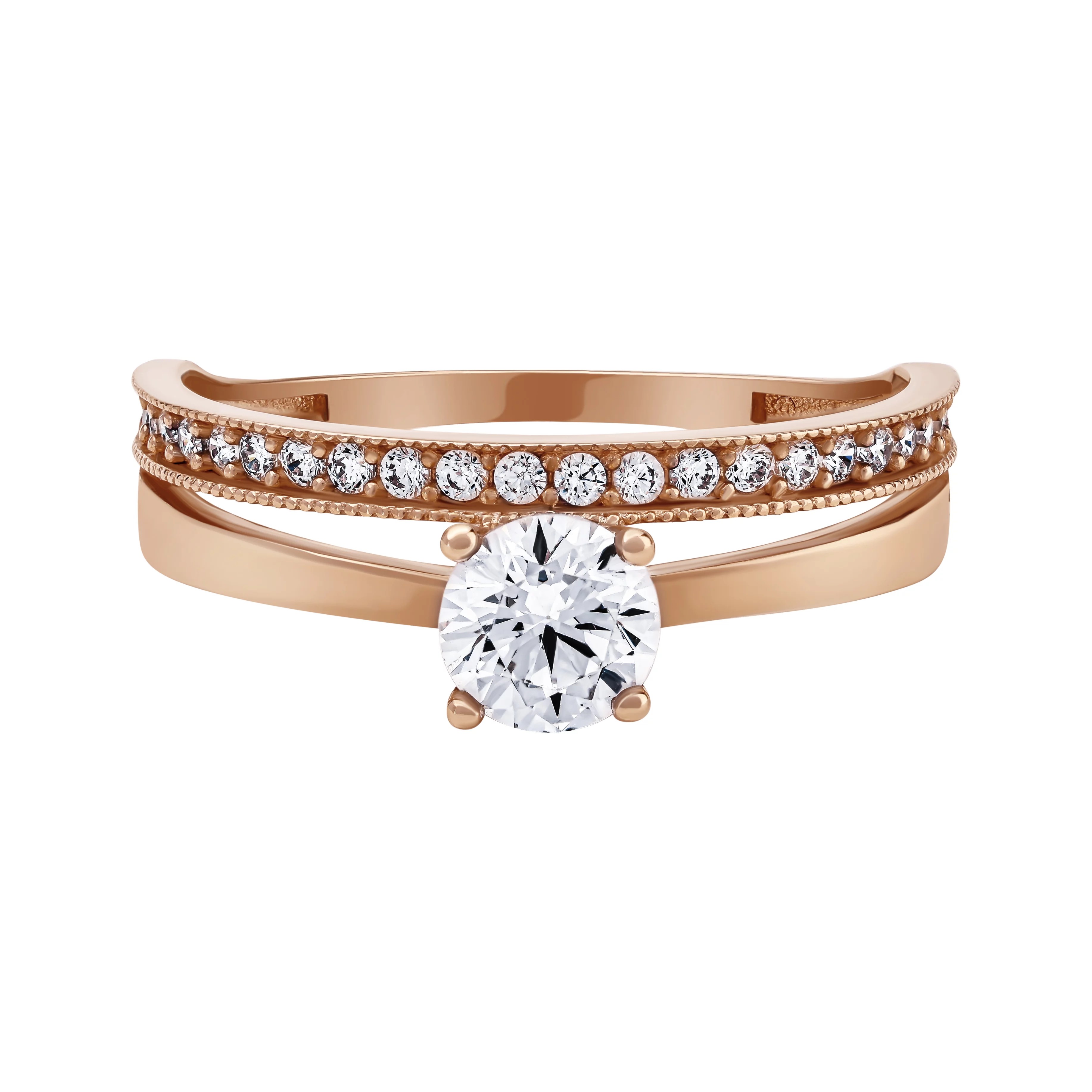 Стильна каблучка з червоного золота з доріжкою фіанітів - 1876288