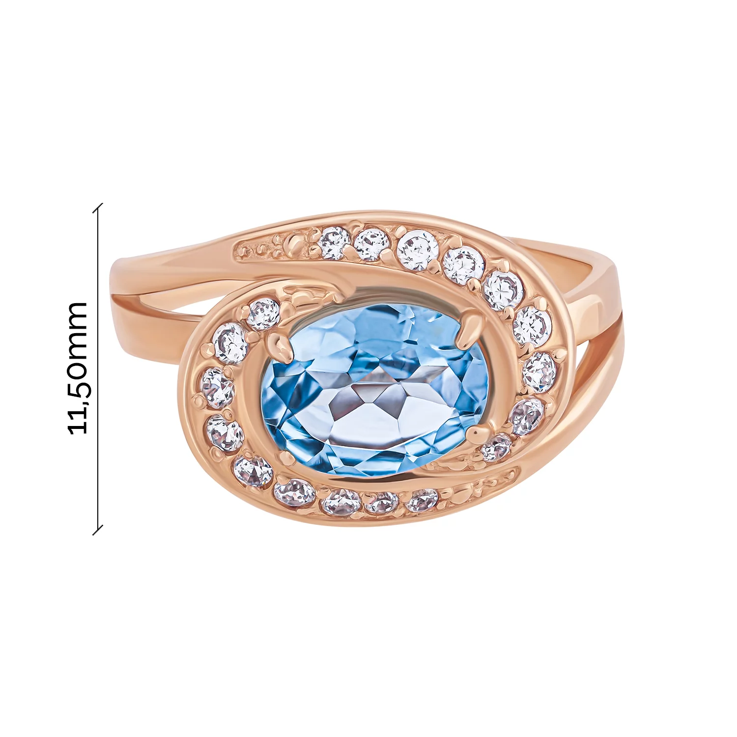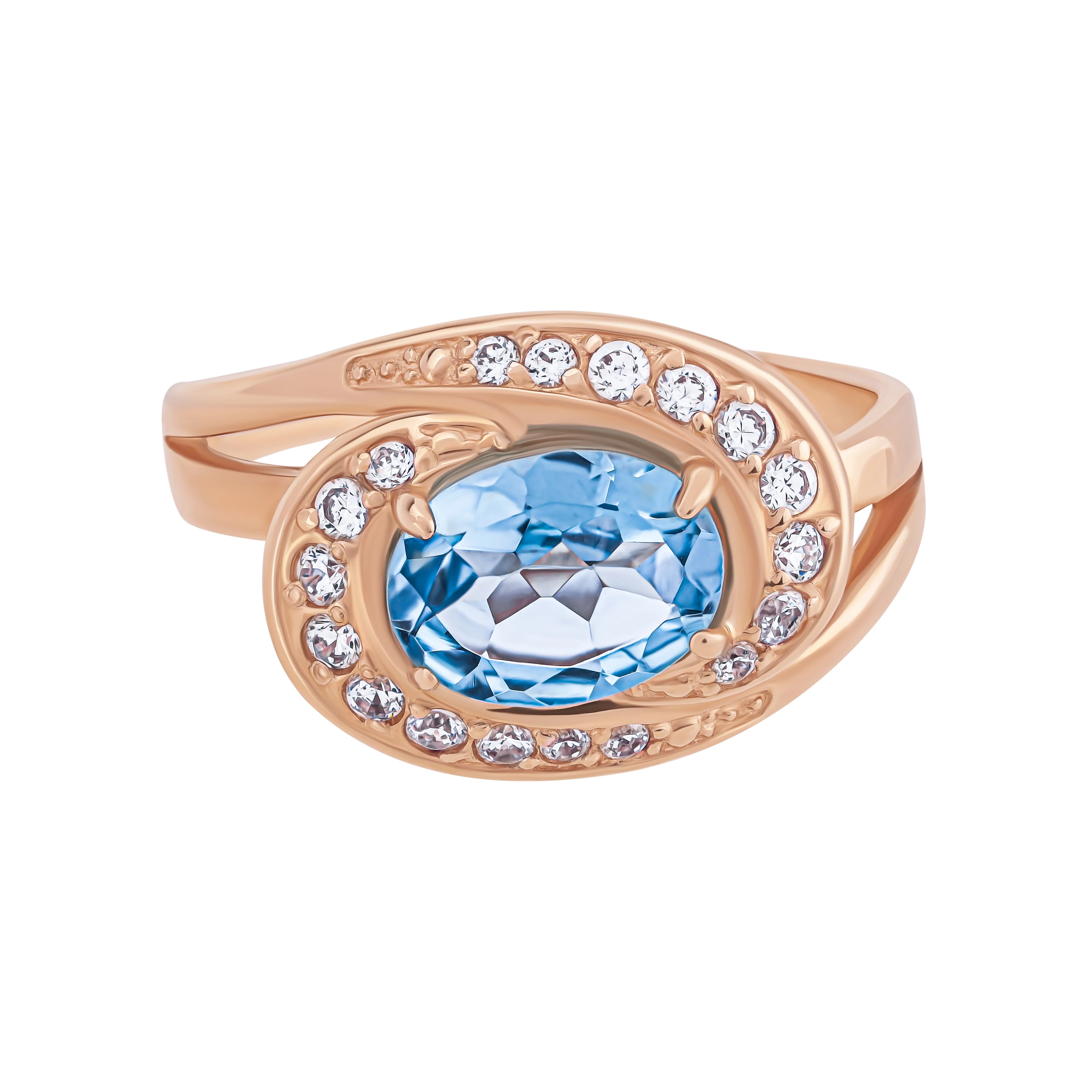 Стильна каблучка у геометричному стилі в червоному золоті з топазом та фіанітами - 1939740