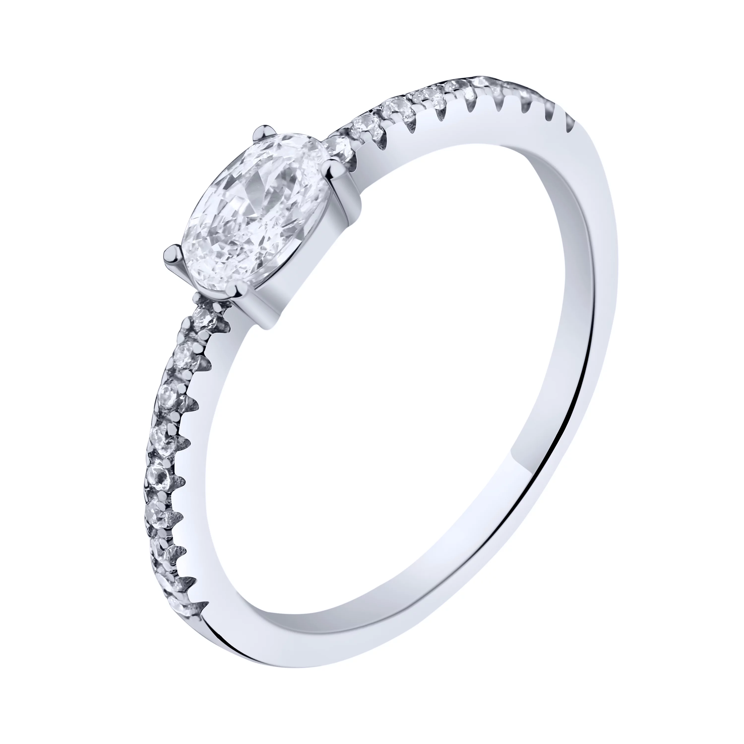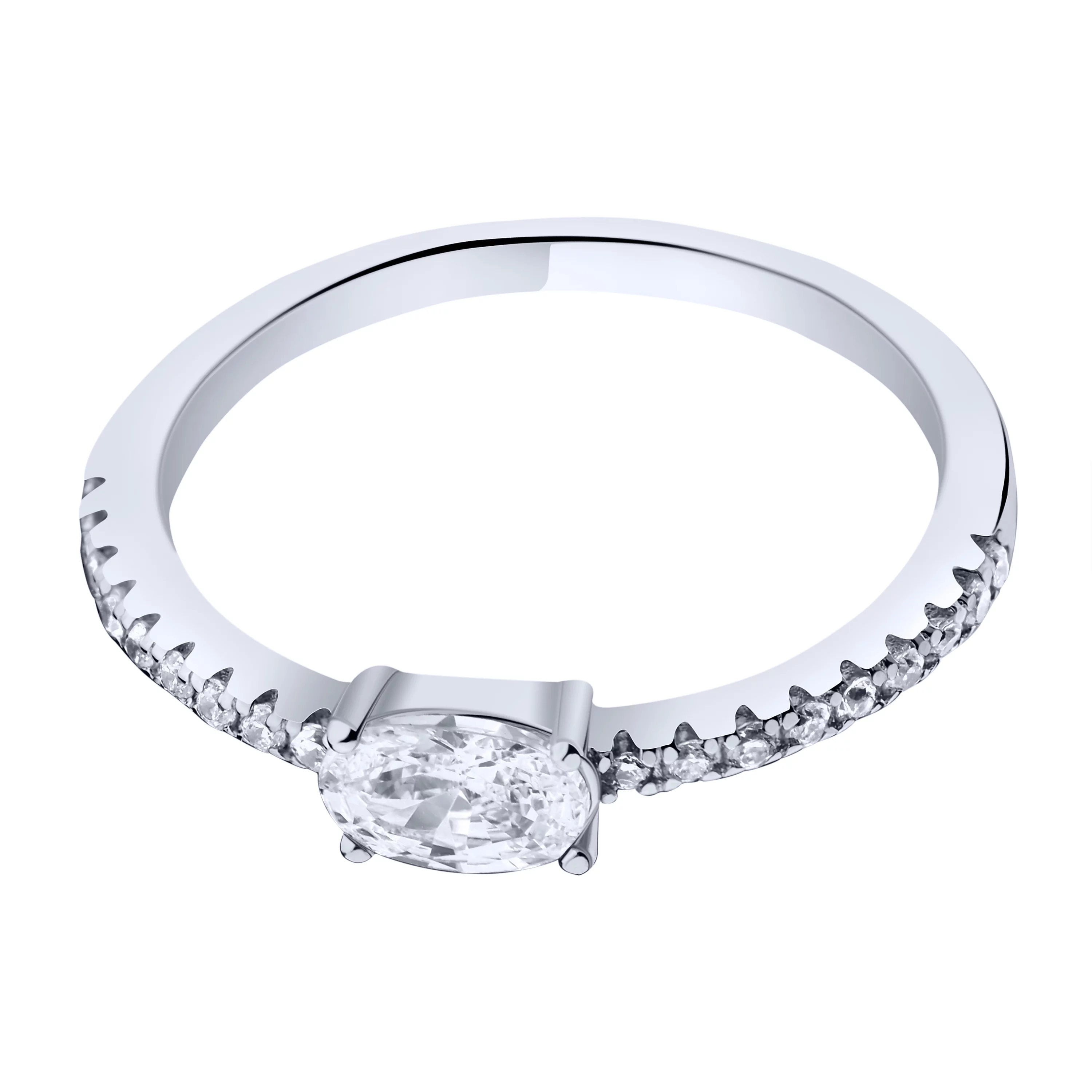 Елегантна розсувна срібна каблучка у мінімалістичному стилі з фіанітом - 1957214
