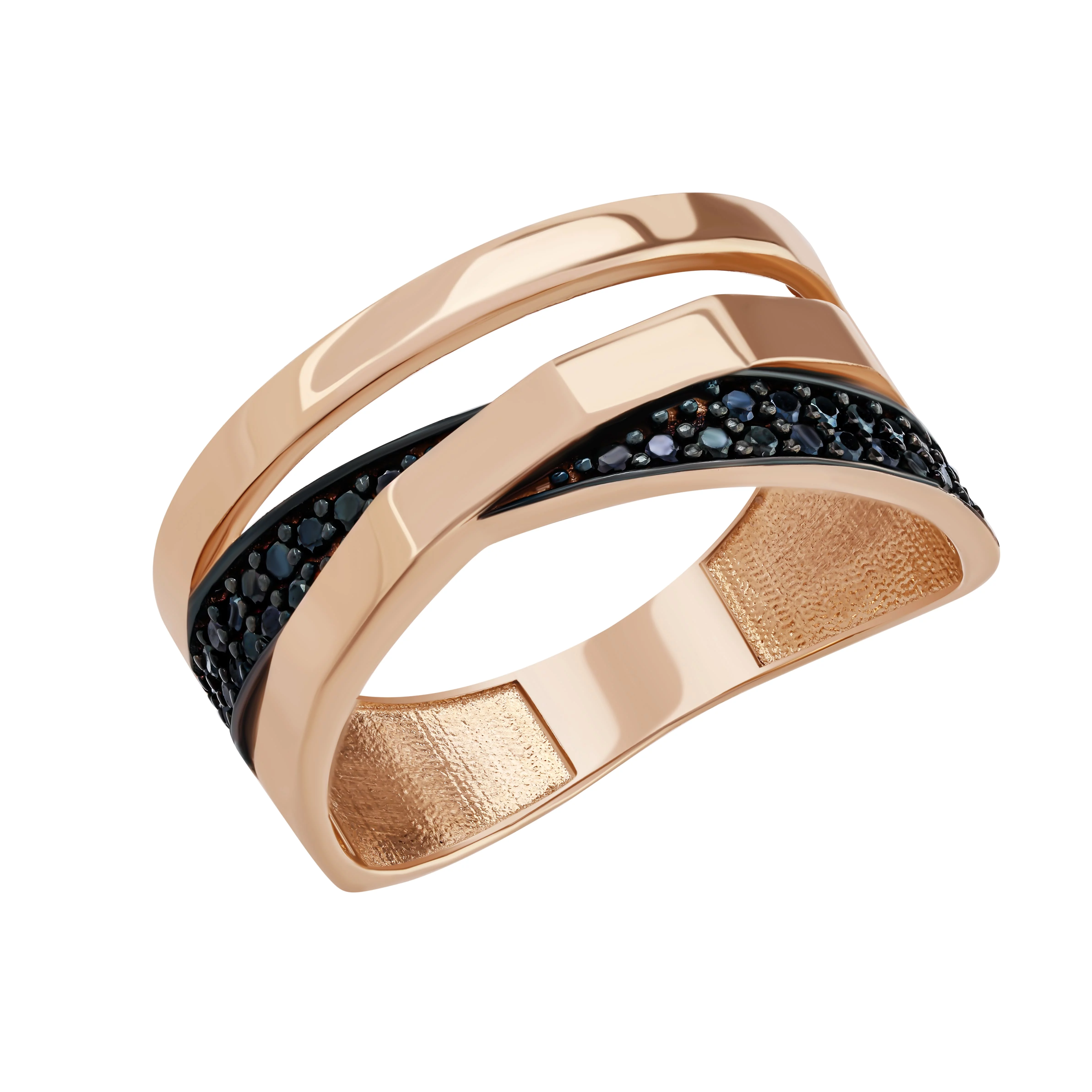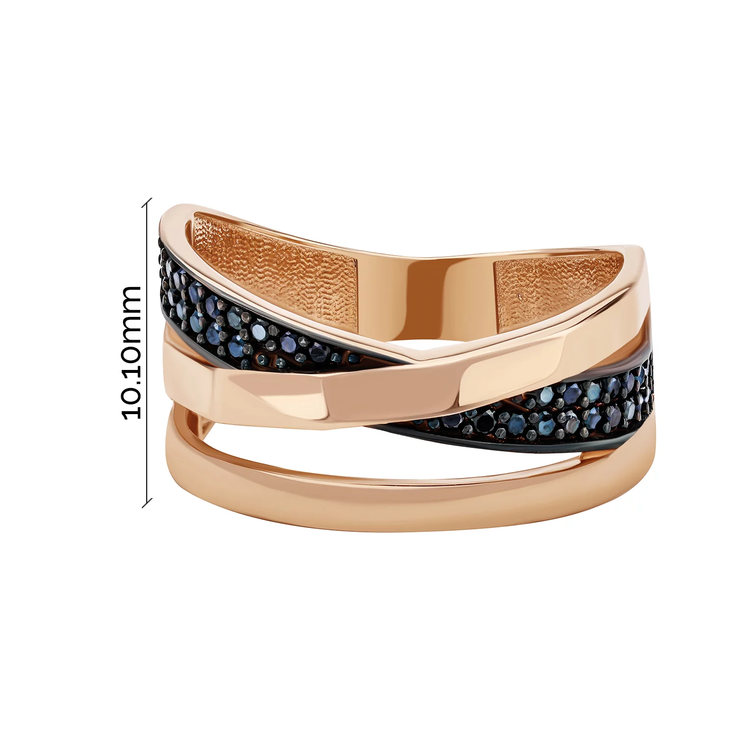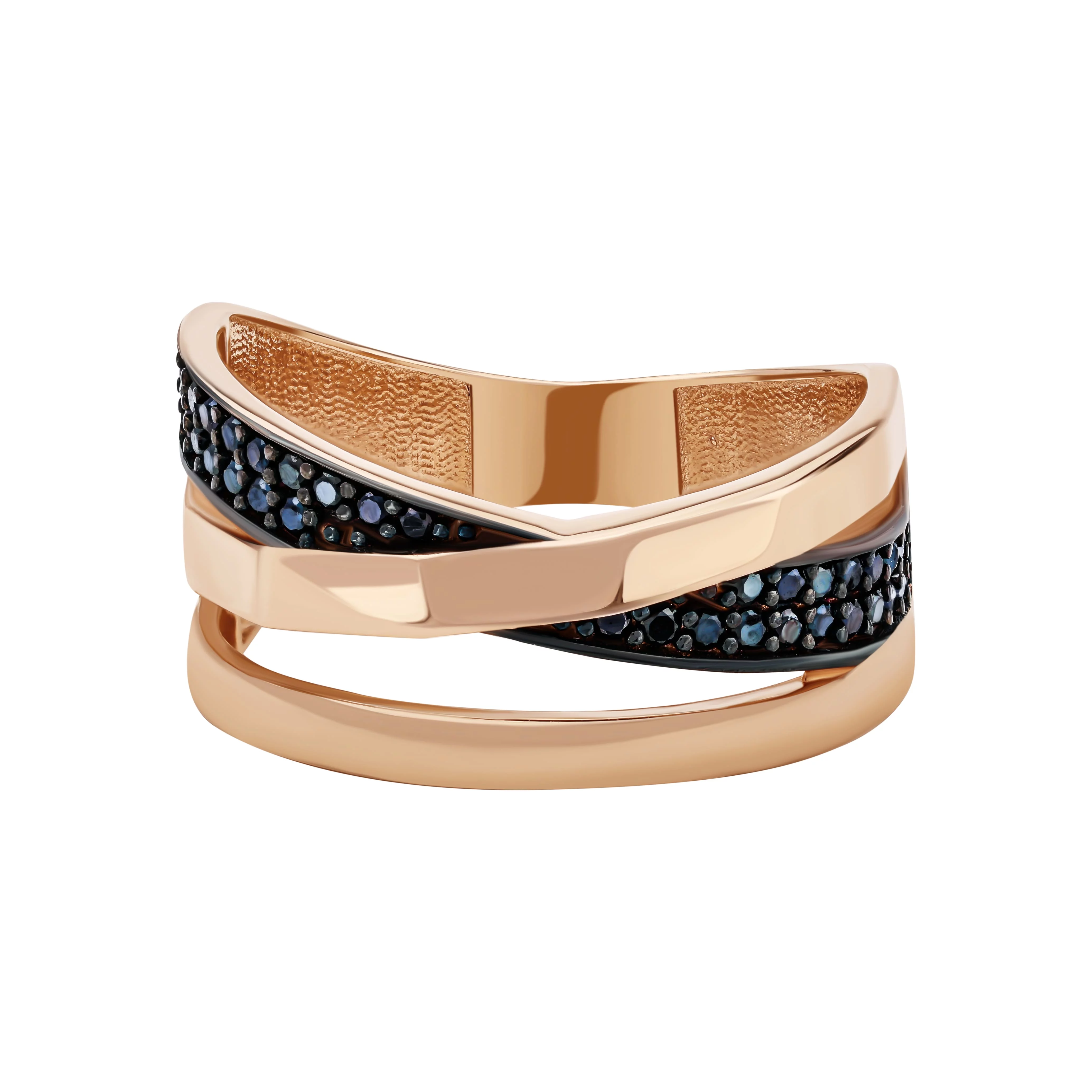 Стильна каблучка "Переплетення" з червоного золота з фіанітами - 1879193