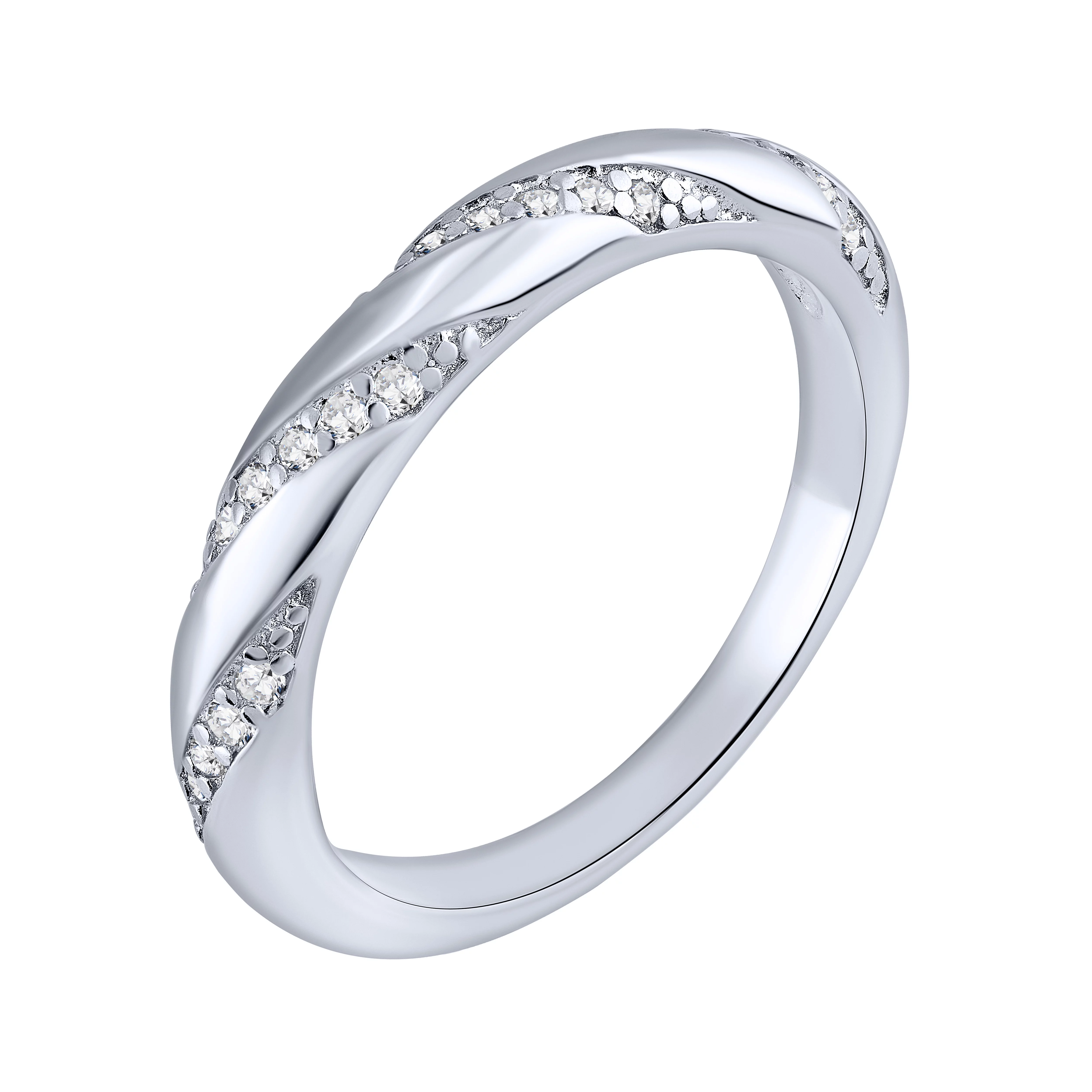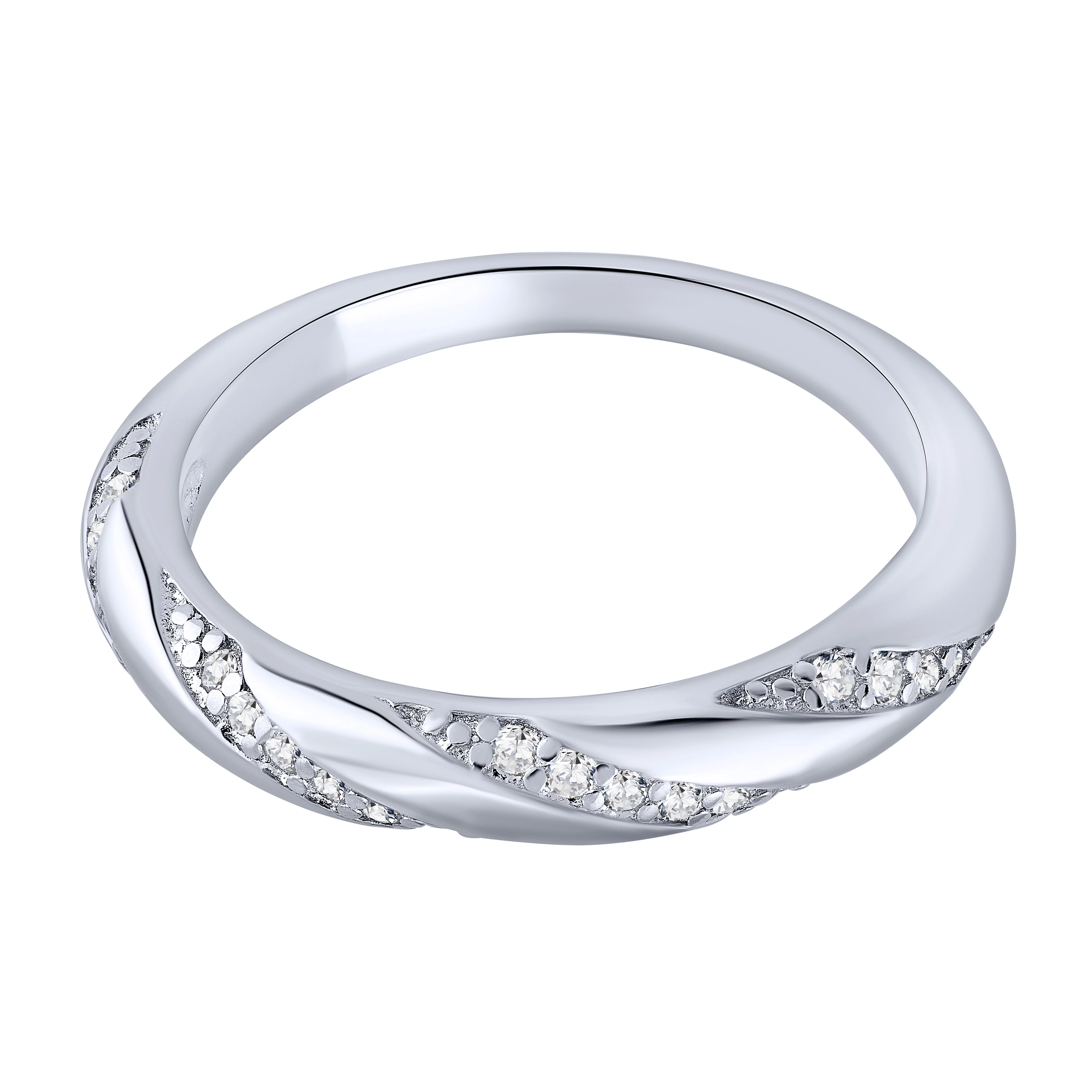 Стильна каблучка з фіанітами з срібла - 1960092