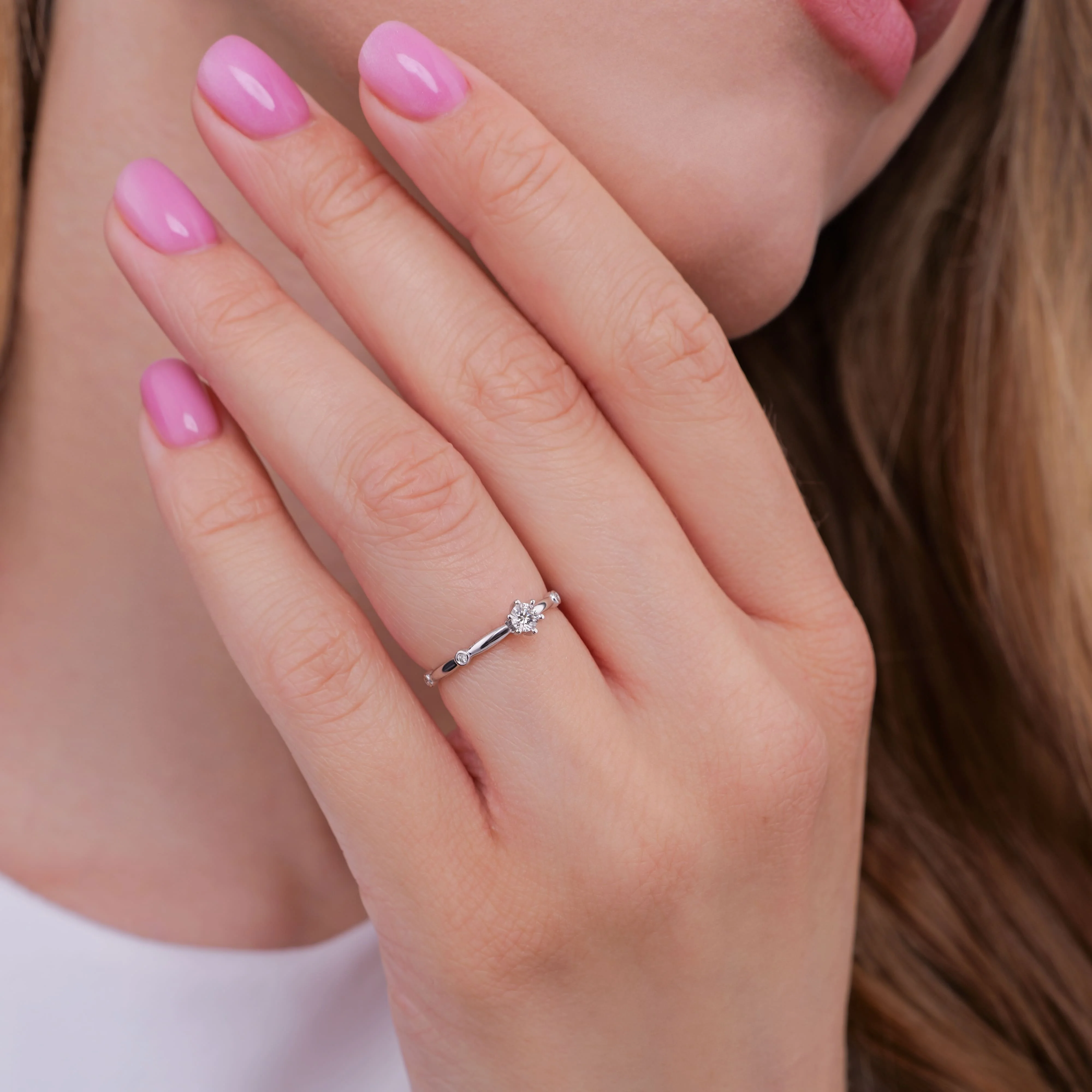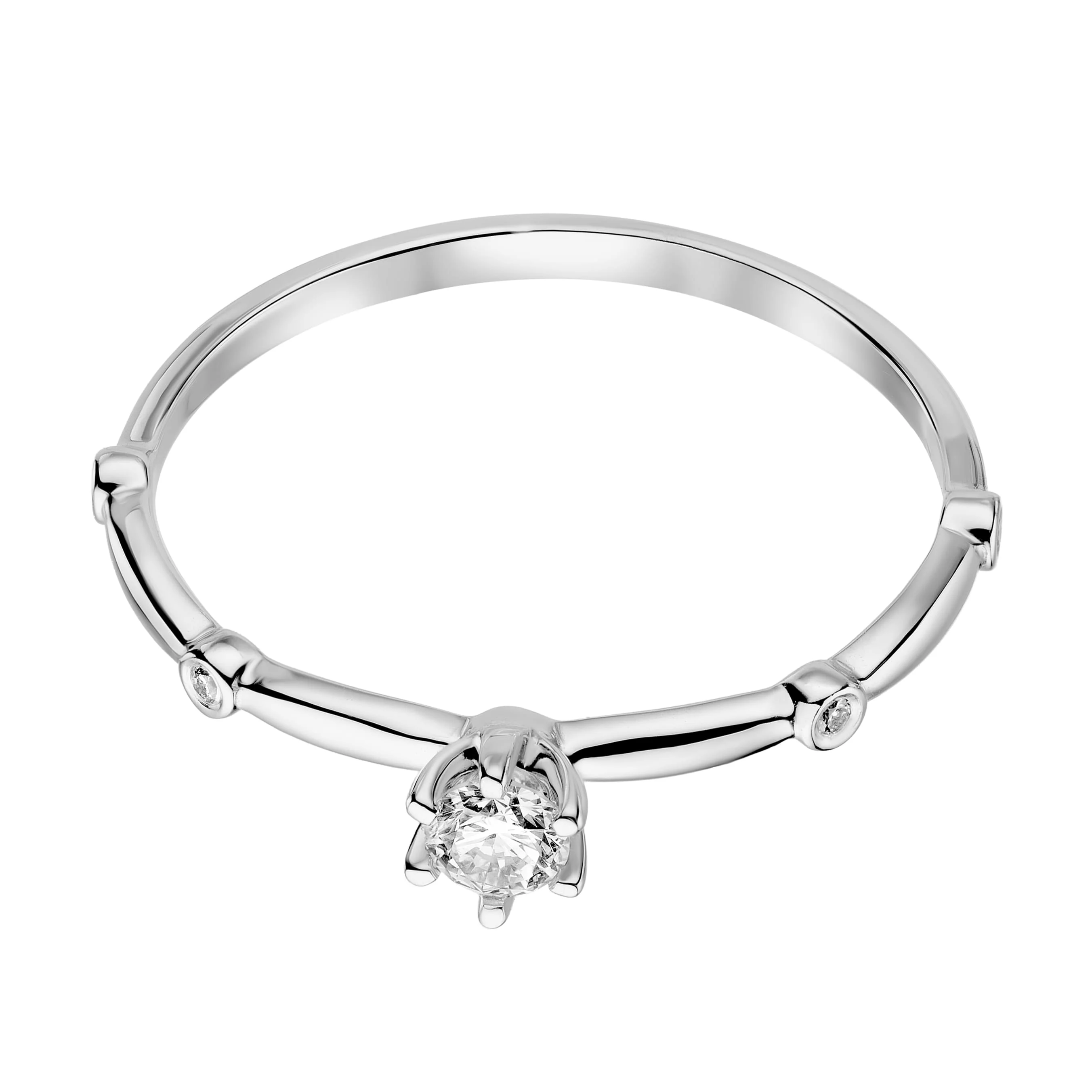 Стильна каблучка в білому золоті з діамантами - 1980040