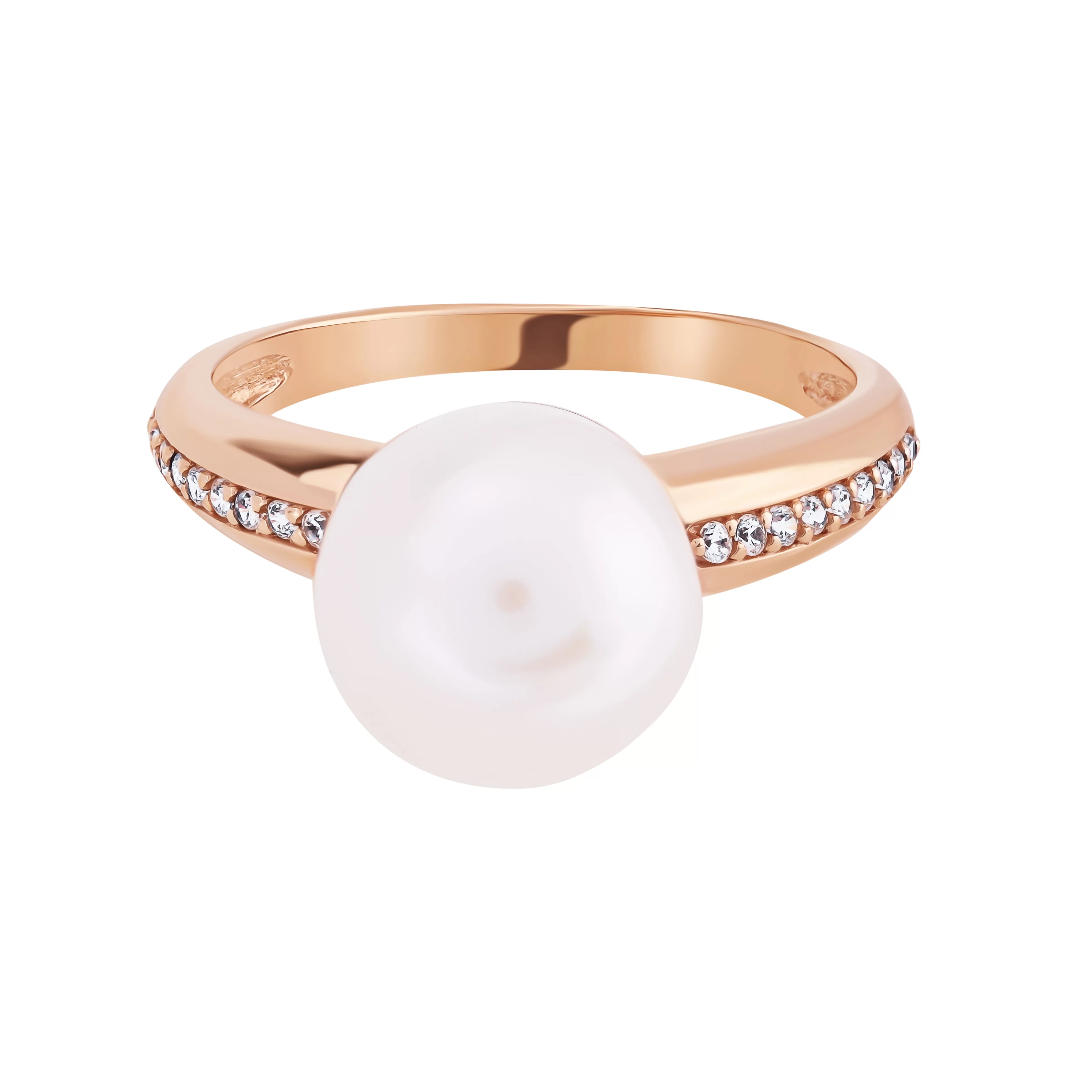 Елегантна каблучка з червоного золота з перлиною та фіанітами - 1955338