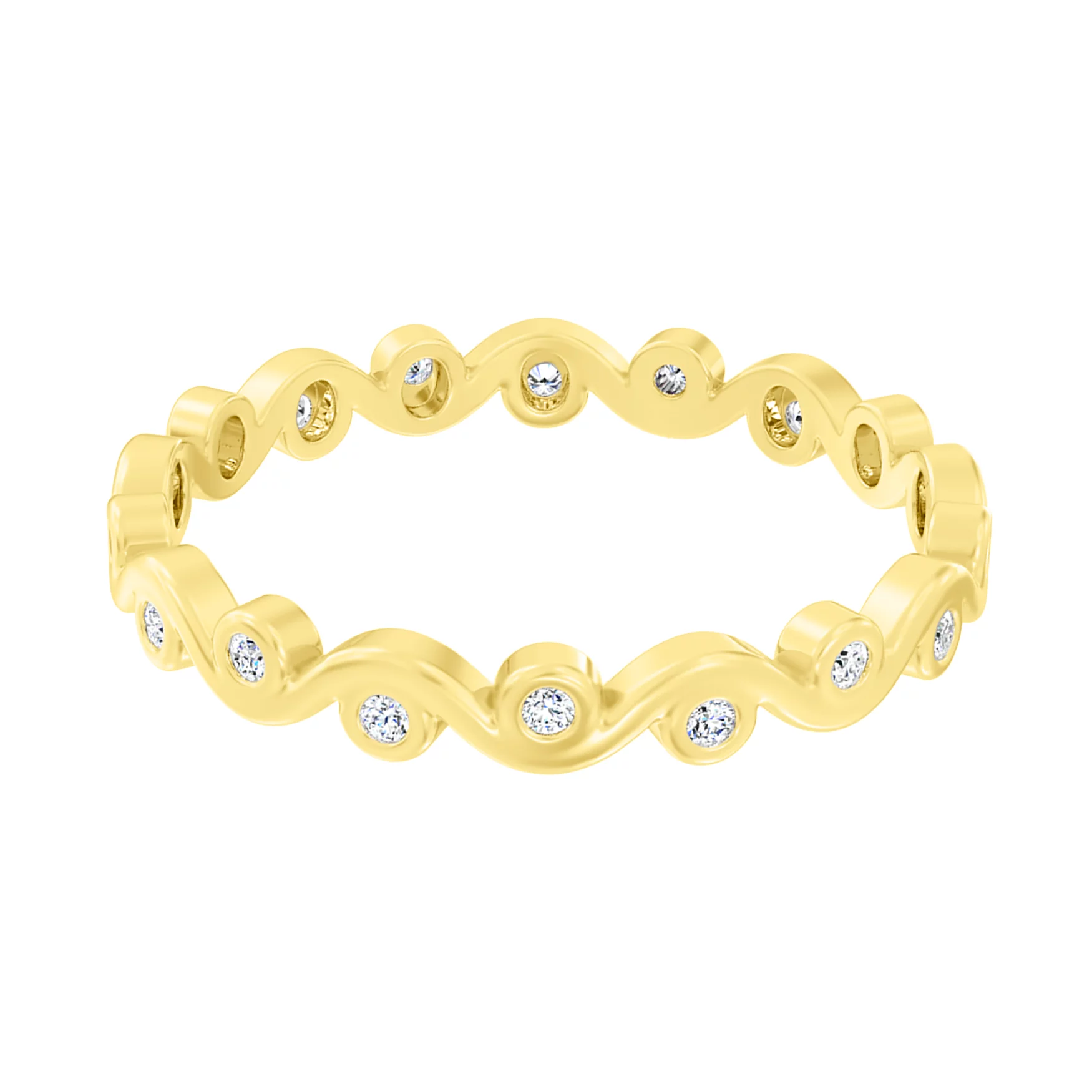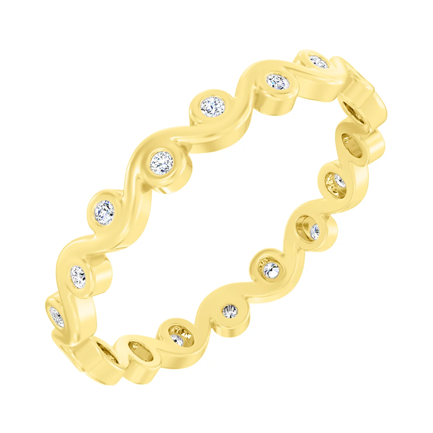 Стильна каблучка "Хвилі" з жовтого золота з фіанітами - 1873319