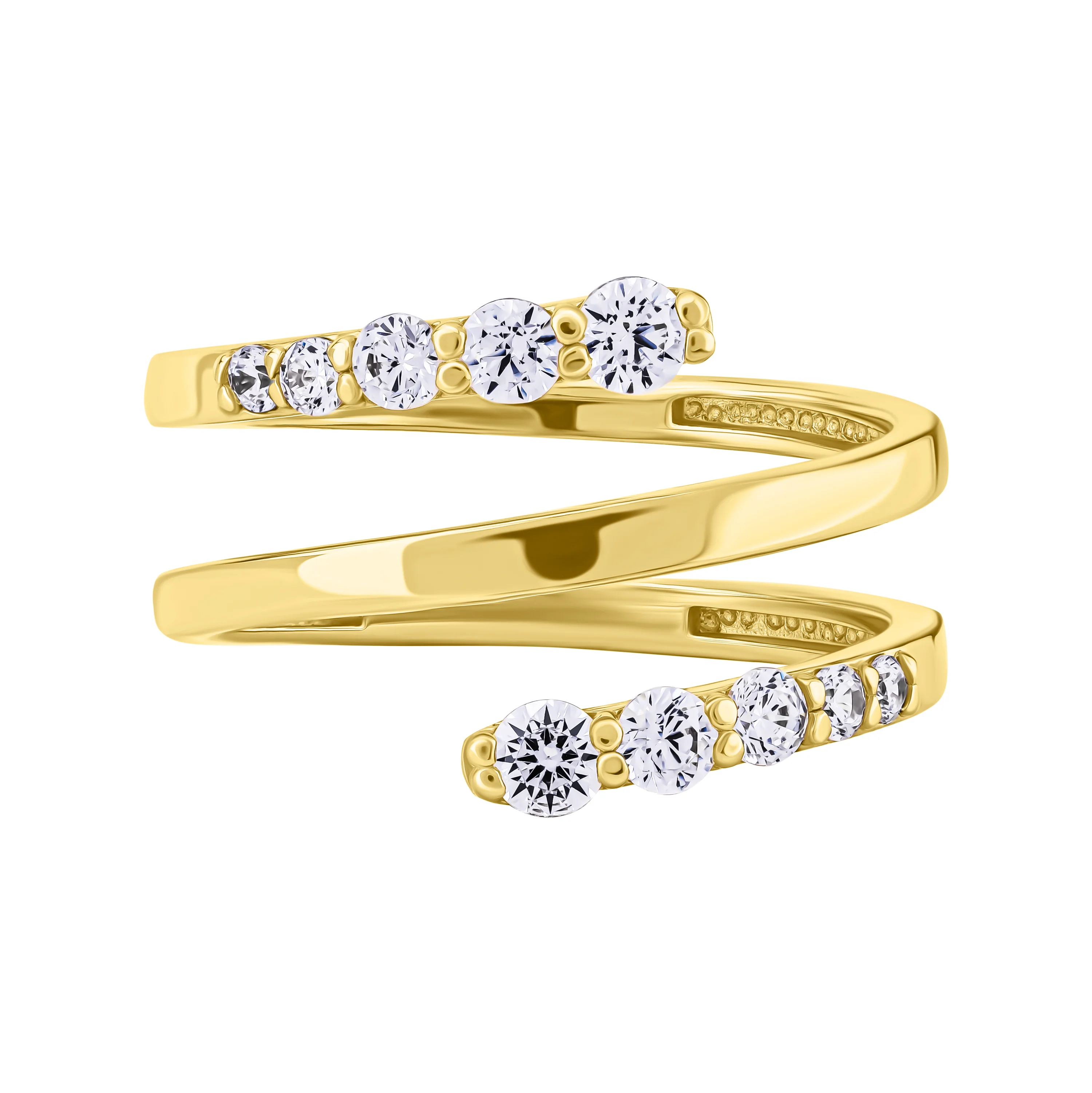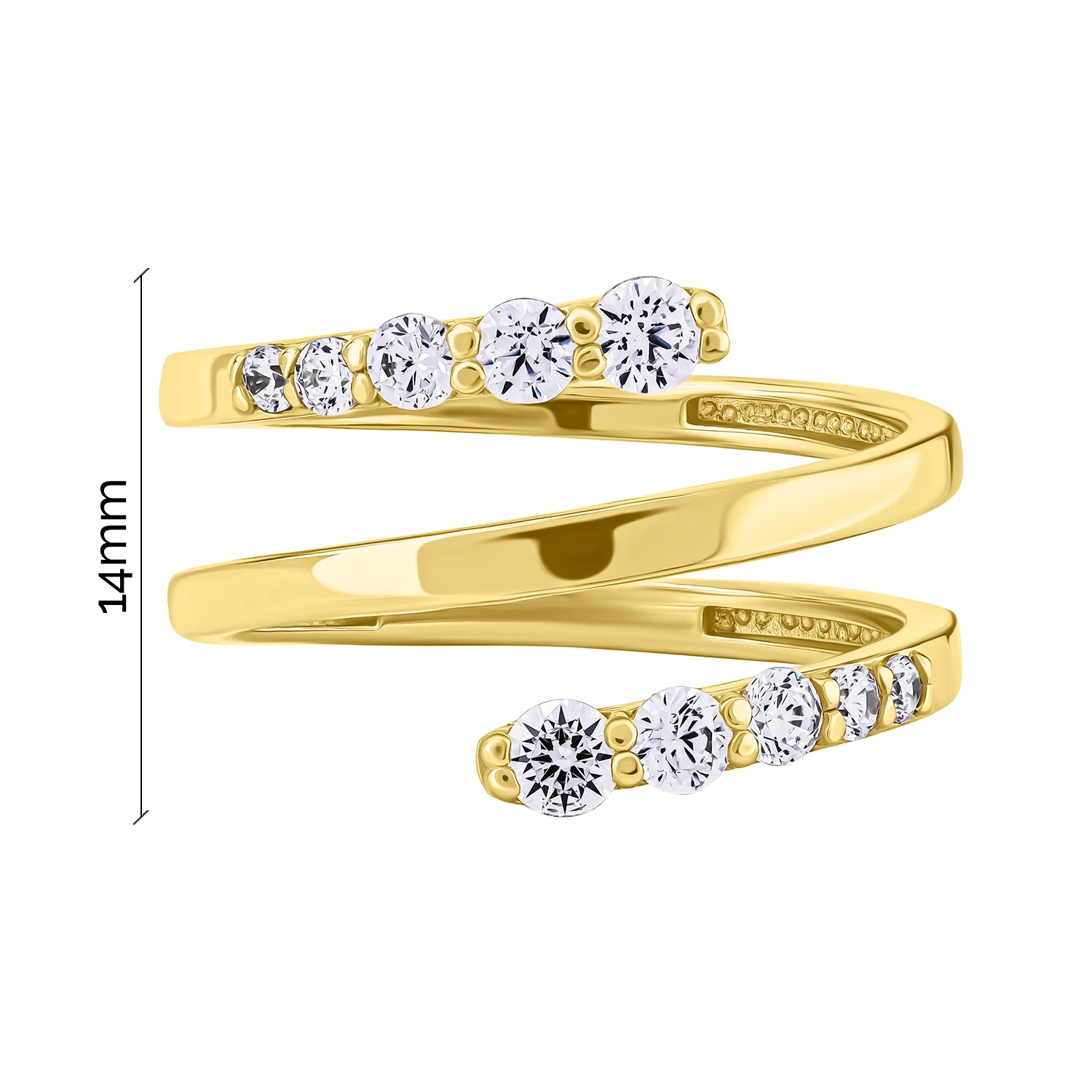 Потрійна стильна незамкнута каблучка з жовтого золота з фіанітами - 1877965