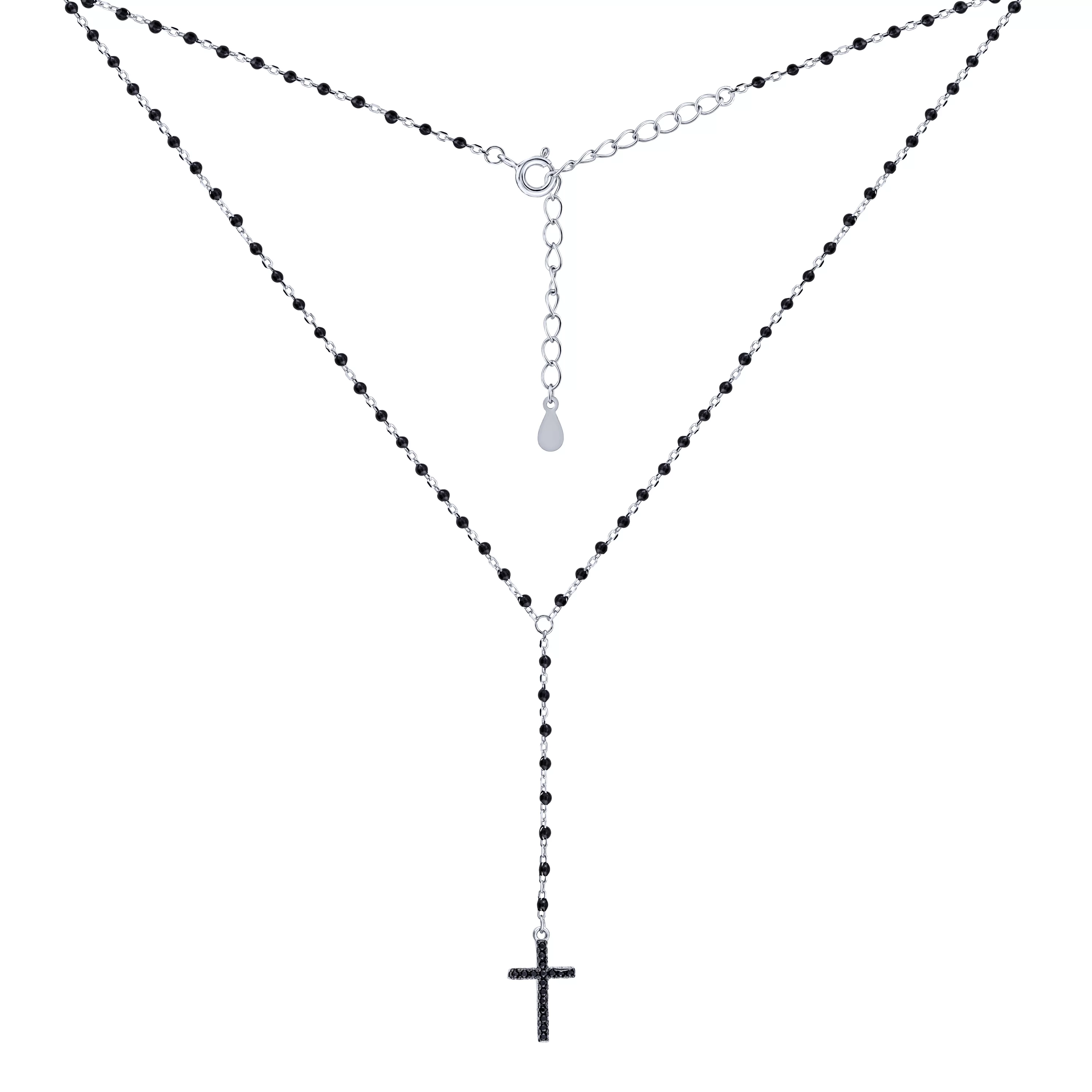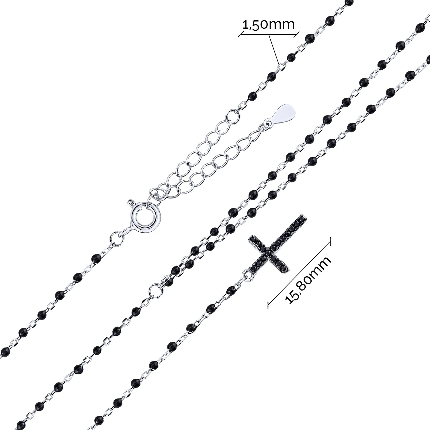 Ланцюжок з підвісом зі срібла "Хрестик" з фіанітами плетіння якір - 1820130