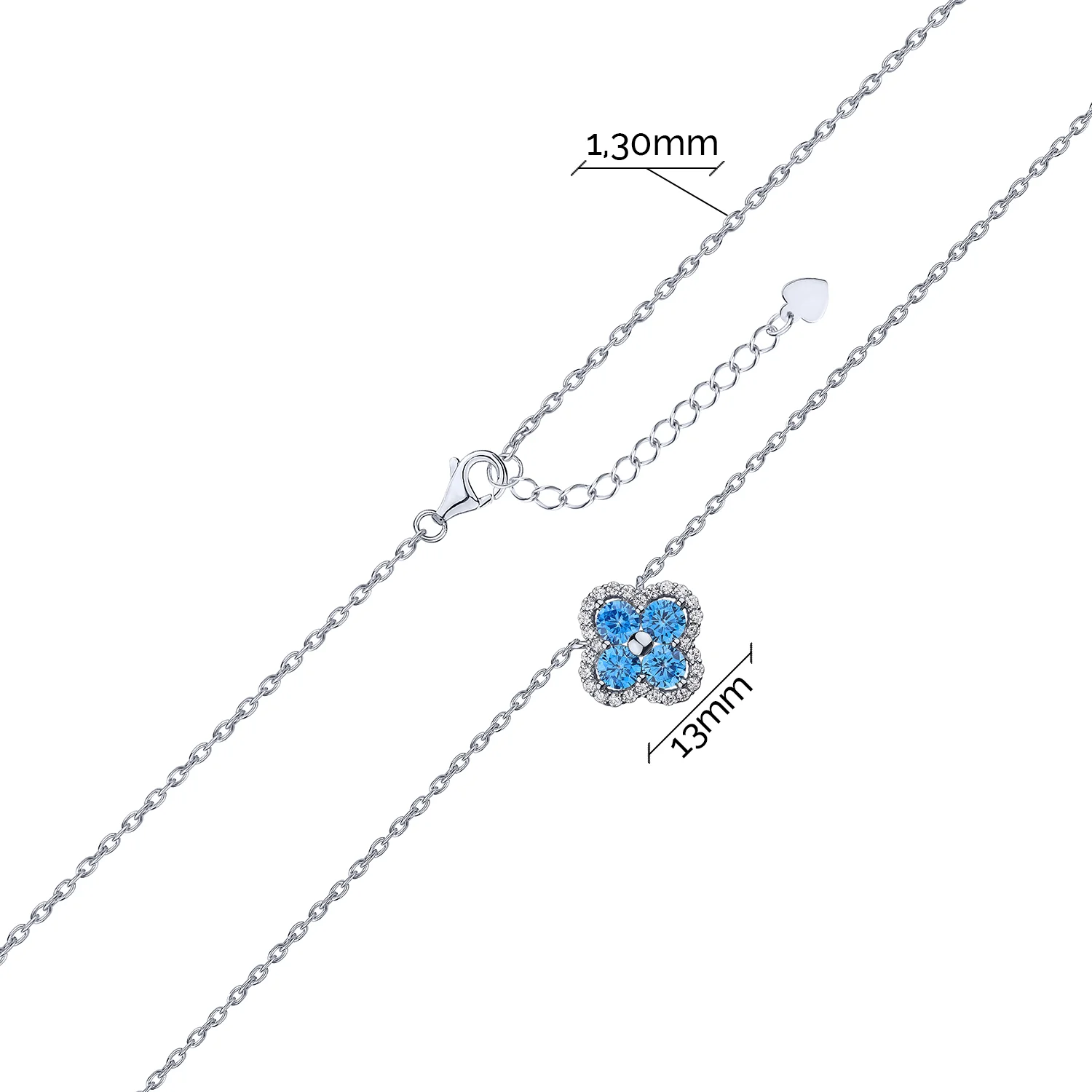 Елегантне кольє зі срібла з підвісом "Конюшина" з фіанітами та якірним плетінням - 1962877