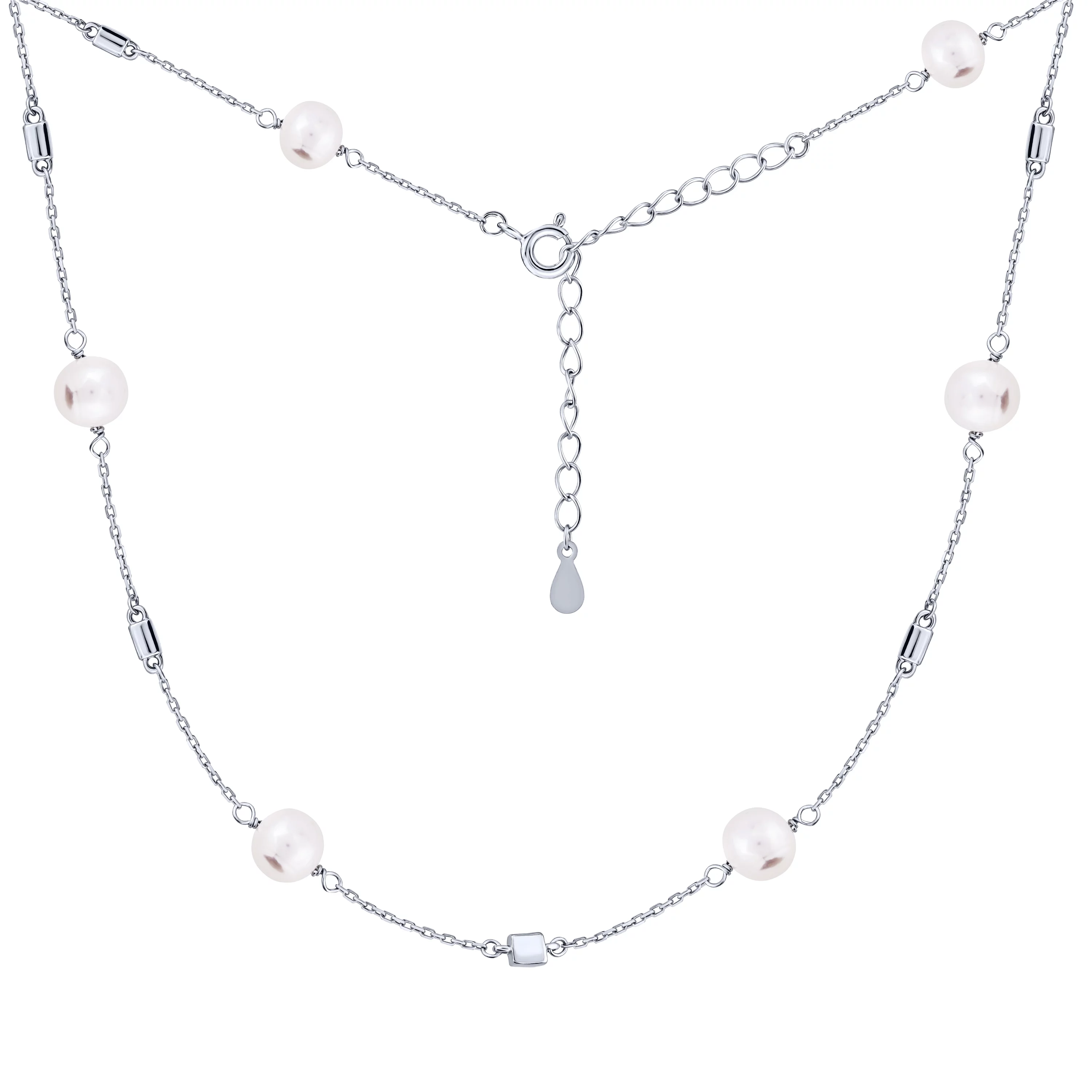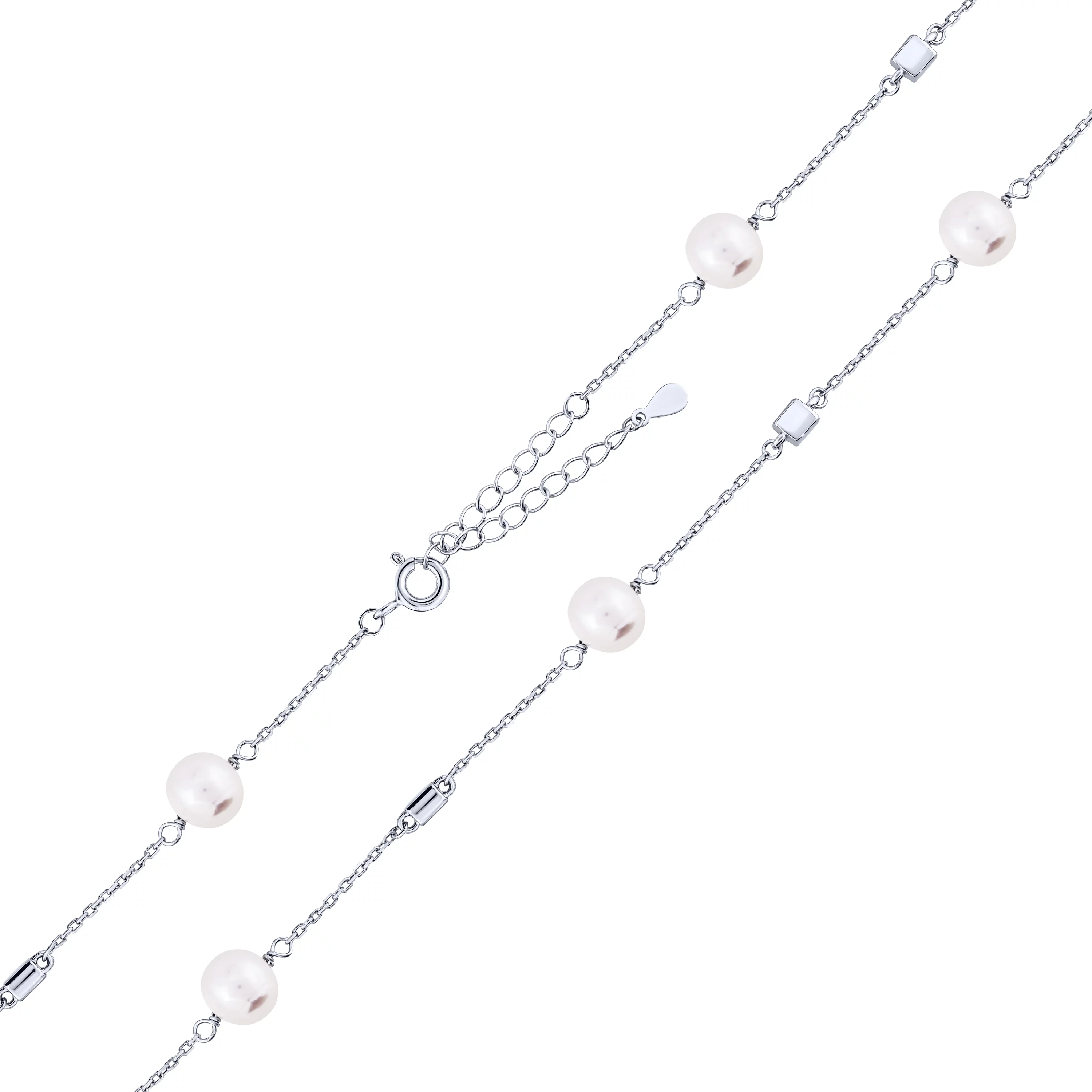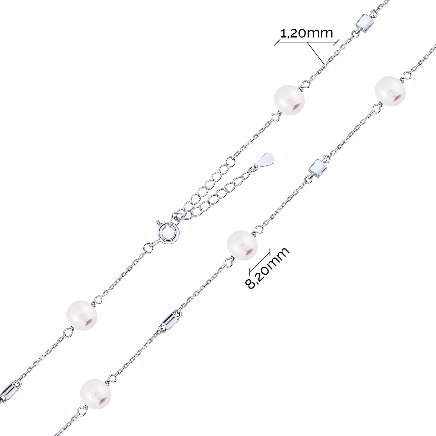 Ланцюжок у білому золоті з перлиною та діамантом плетіння якір - 1588879