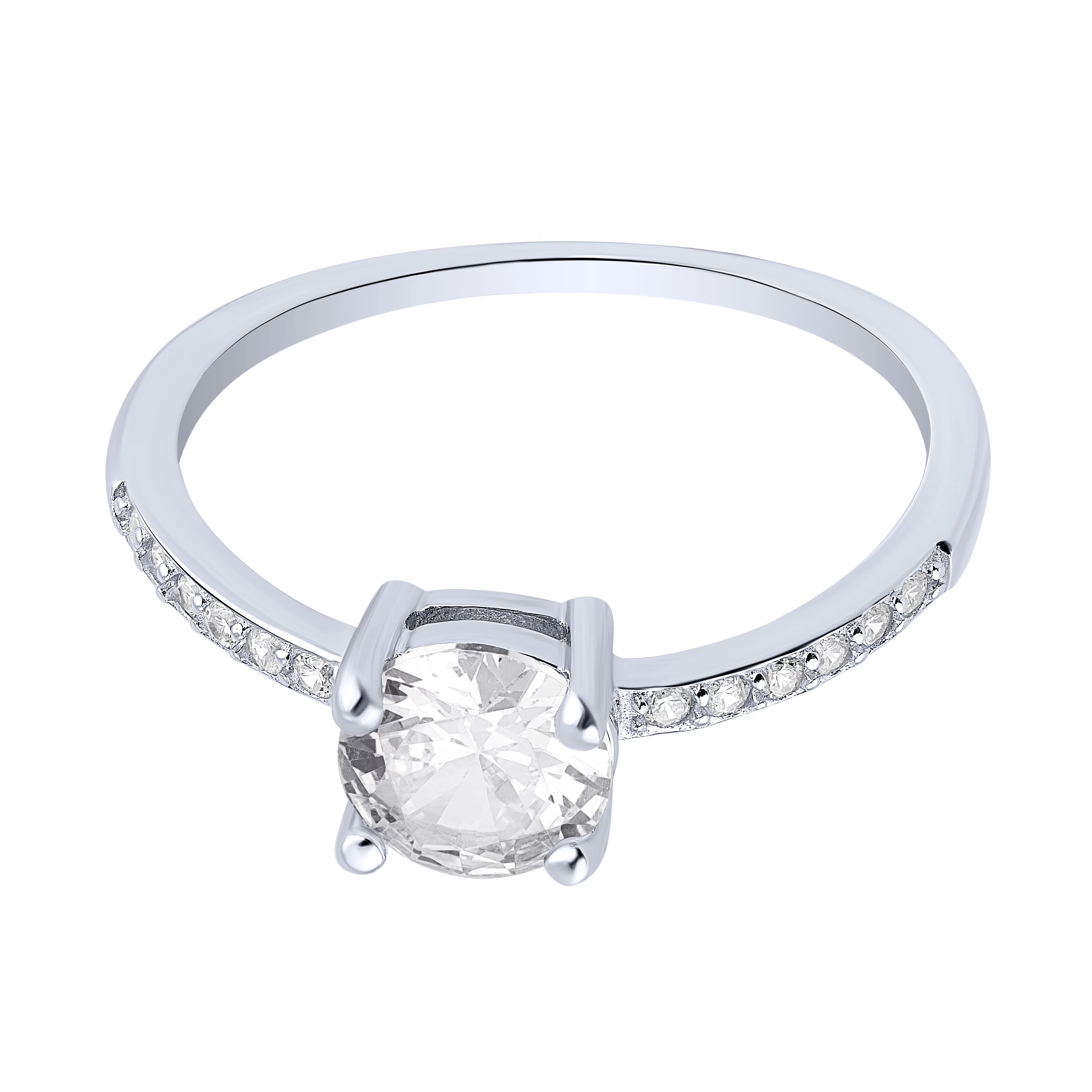 Елегантна розсувна срібна каблучка у мінімалістичному стилі з фіанітом - 1957214