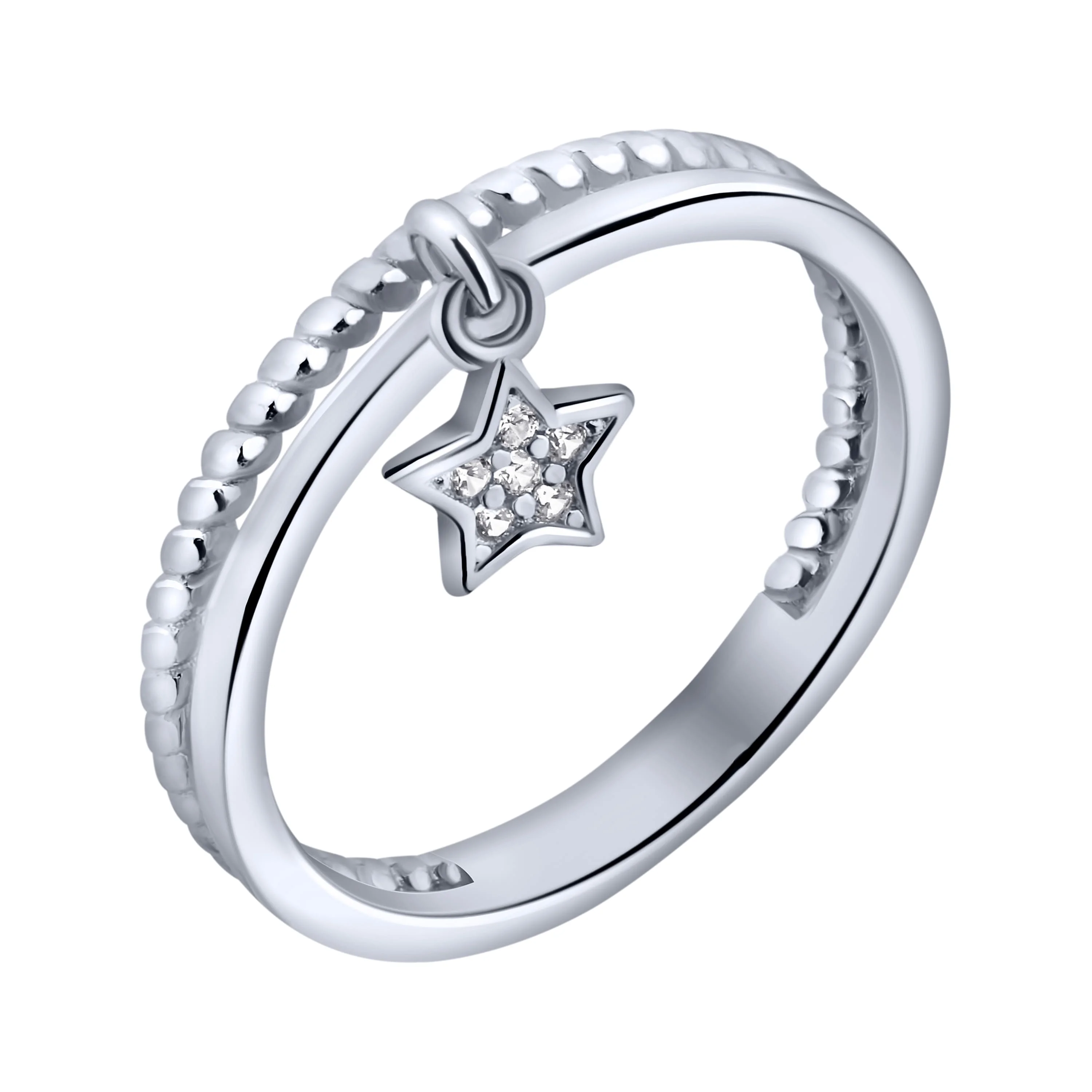 Стильна срібна каблучка з підвісом "Зірка" з фіанітами - 1975713
