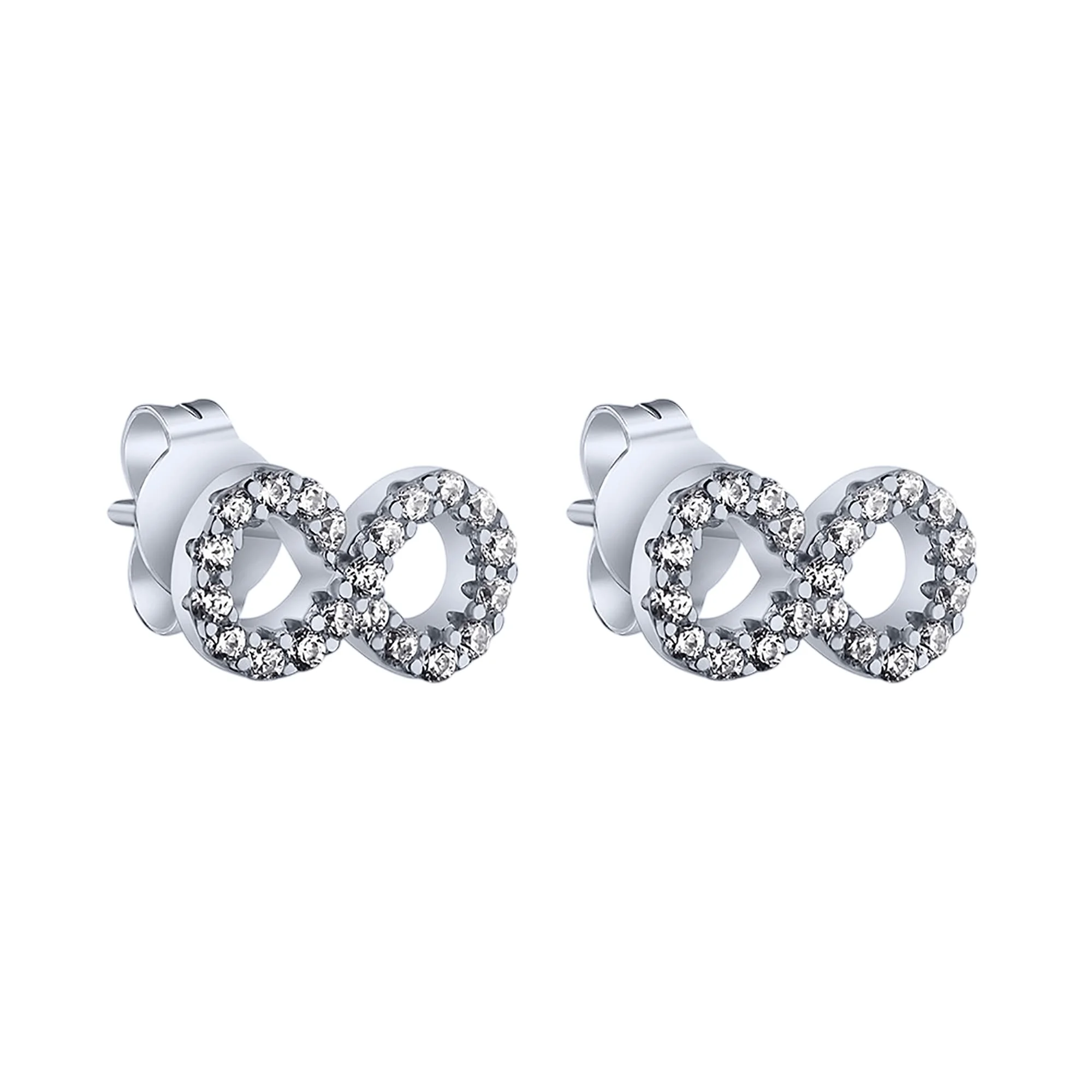 Стильні срібні сережки-гвоздики "Нескінченність" з фіанітами - 1979422